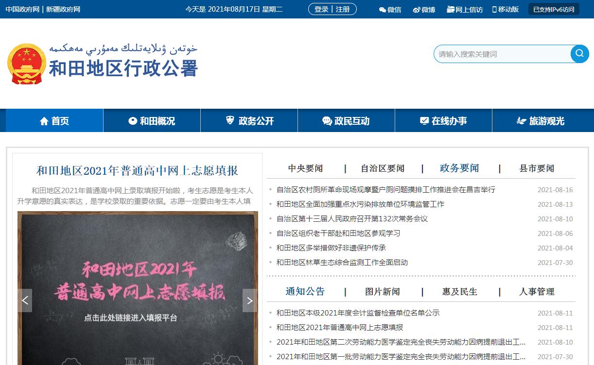 | 網(wǎng)站名稱: | 和田地區(qū)行政公署 | ||