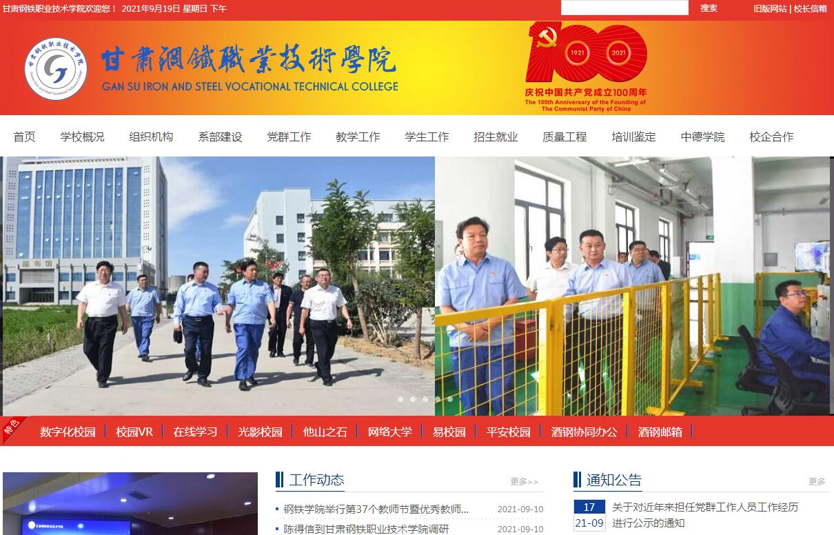 | 網(wǎng)站簡介: 甘肅鋼鐵職業(yè)技術(shù)學(xué)院官方網(wǎng)站。 |