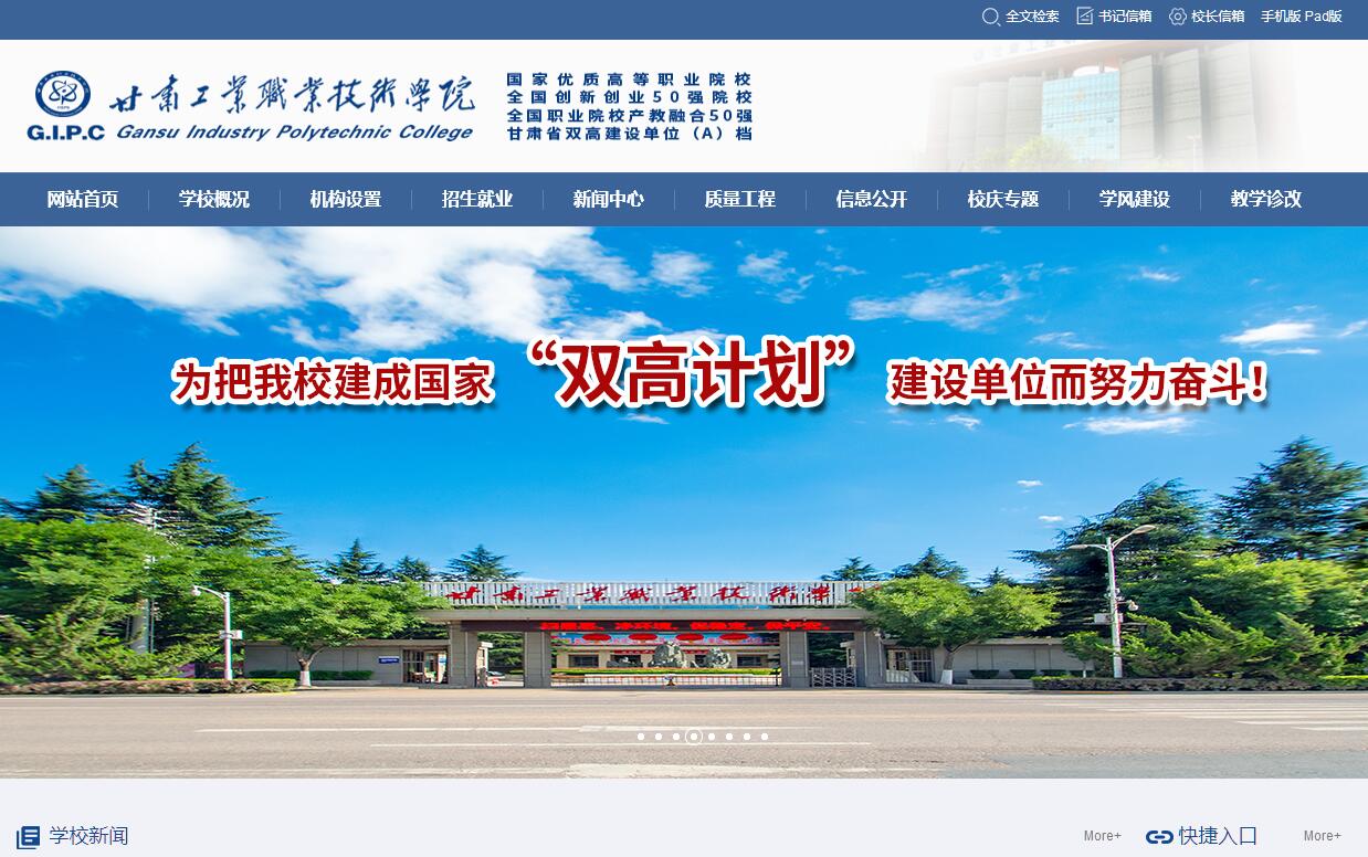 | 網(wǎng)站簡介: 甘肅工業(yè)職業(yè)技術(shù)學(xué)院官方網(wǎng)站。 |