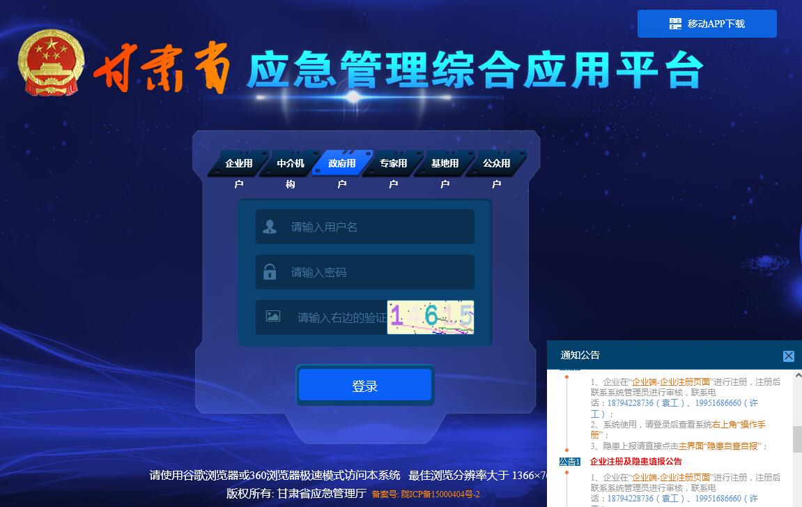| 網(wǎng)站名稱: | 甘肅省應急管理綜合應用平臺 | ||