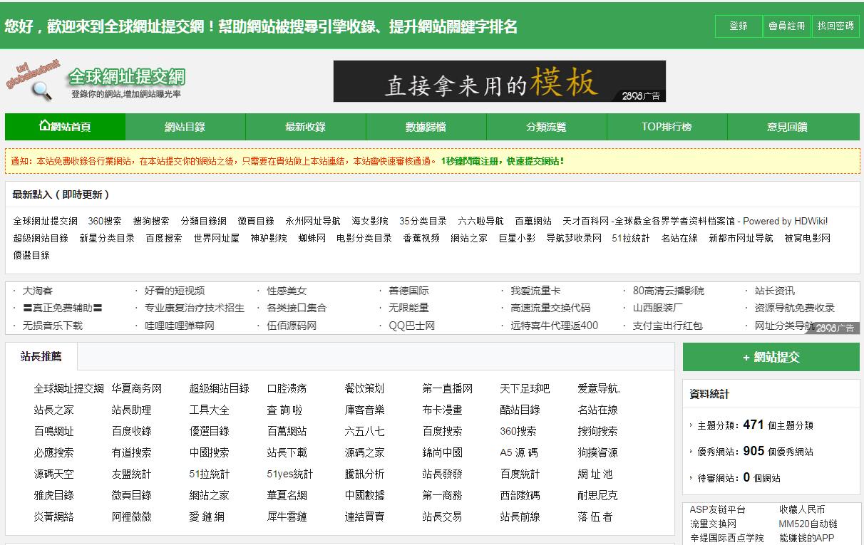 | 網(wǎng)站簡(jiǎn)介: 全球網(wǎng)址提交網(wǎng)是全免費(fèi)的網(wǎng)址提交目錄,收錄國(guó)內(nèi)外、各行業(yè)優(yōu)秀網(wǎng)站,為用戶提供全面的網(wǎng)站分類目錄網(wǎng)站、優(yōu)秀網(wǎng)站參攷、友情連結(jié)交換平臺(tái)、網(wǎng)站推廣服務(wù)國(guó)內(nèi)免費(fèi)的網(wǎng)站提交入口(www.urlglobalsubmit.com)。 |
