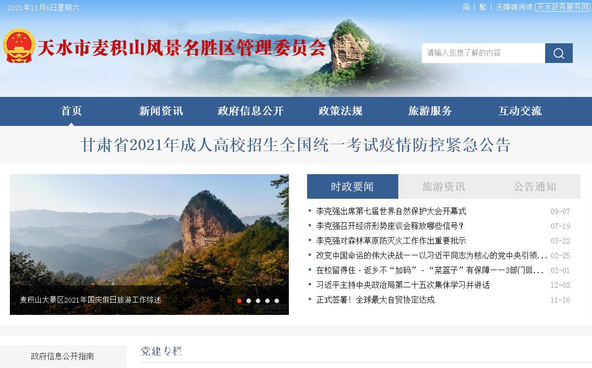 | 網(wǎng)站名稱: | 天水市麥積山風(fēng)景名勝區(qū) | ||