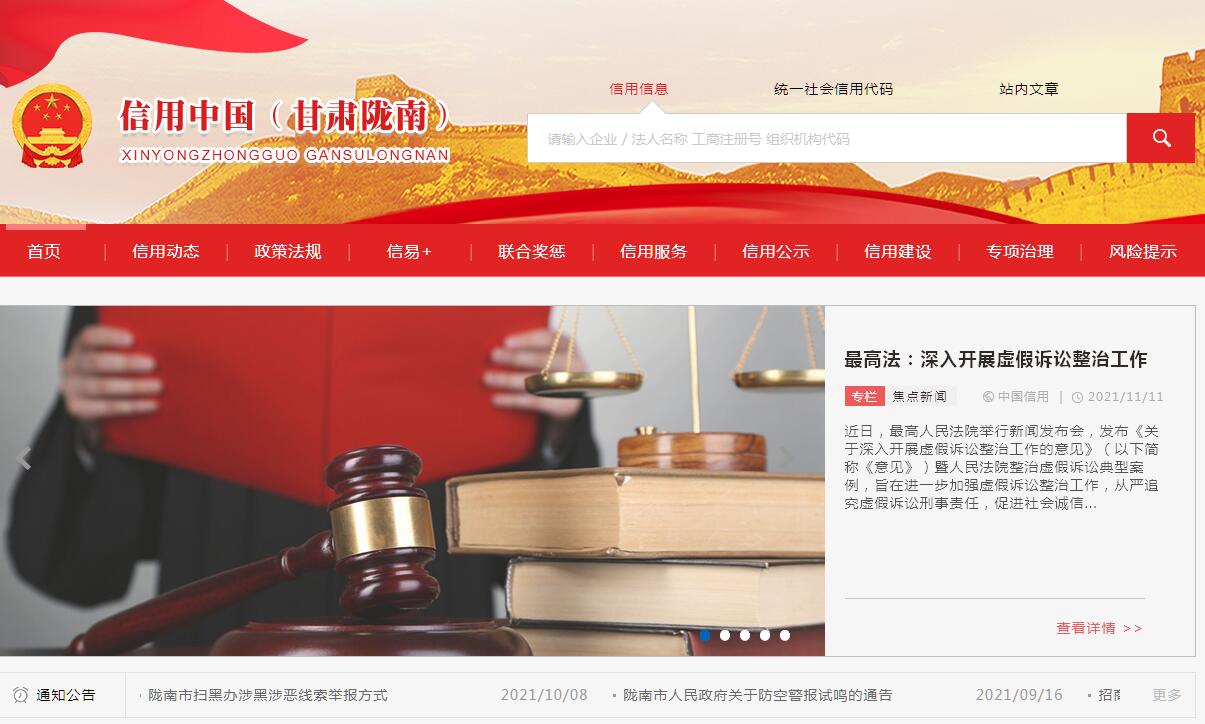 | 網(wǎng)站名稱: | 信用隴南 | ||