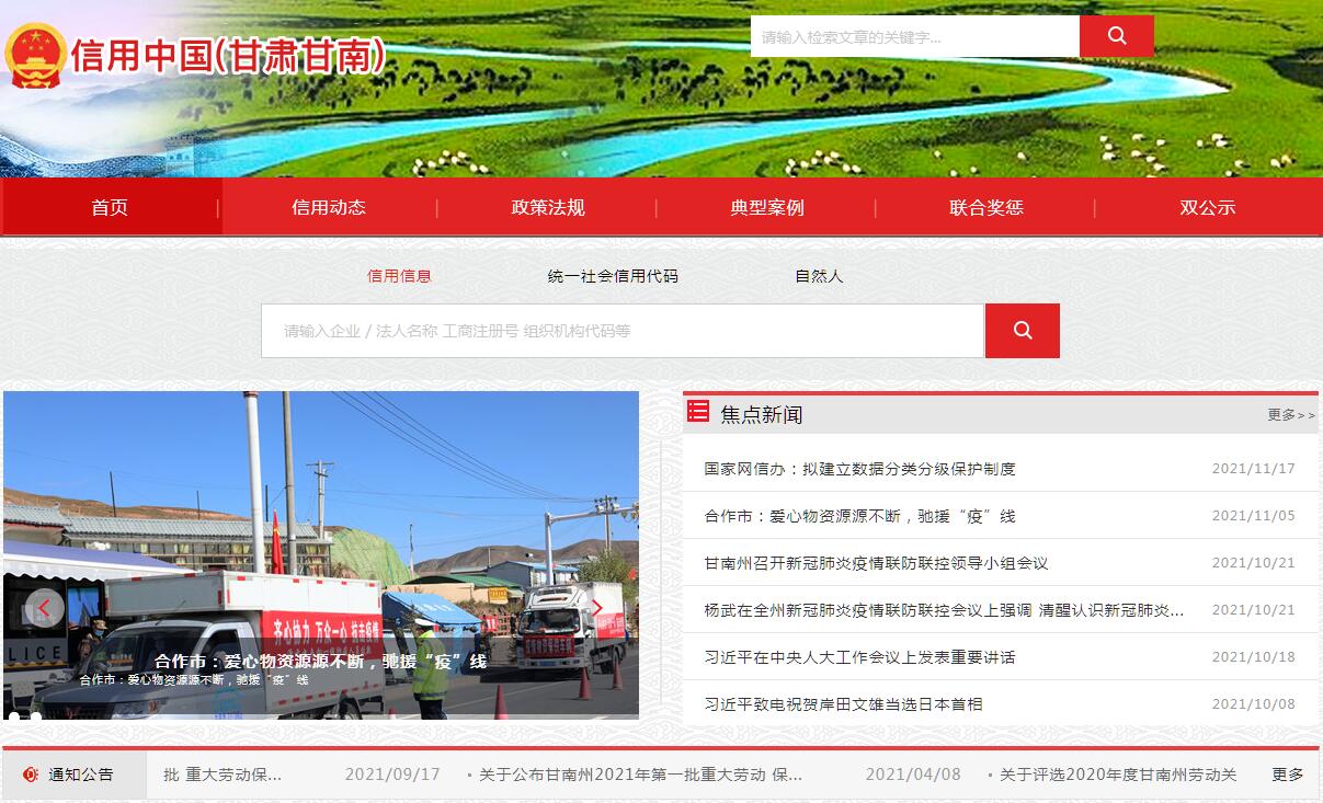 | 網(wǎng)站簡介: 信用甘南,信用中國(甘肅甘南)官方網(wǎng)站。 |