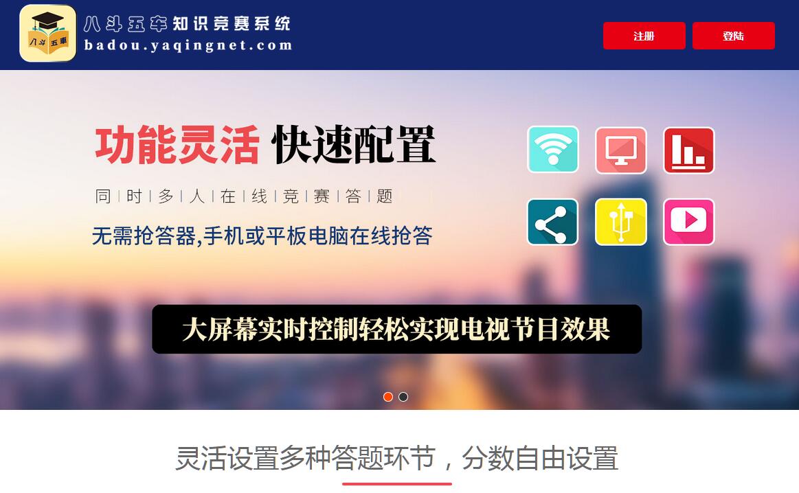 | 網(wǎng)站簡介: 八斗五車知識(shí)競賽系統(tǒng)是一款新穎的在線知識(shí)競賽系統(tǒng)軟件程序。輕松實(shí)現(xiàn)大屏幕電視效果,無需搶答器,實(shí)現(xiàn)多人在線搶答,多種題型答題類型,需要知識(shí)競賽就來八斗五車知識(shí)競賽系統(tǒng)吧! |