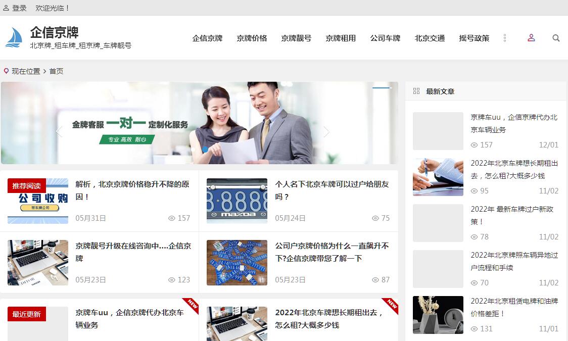 | 網(wǎng)站簡介: 企信京牌_北京牌_租京牌_北京車牌采購導(dǎo)航網(wǎng)專業(yè)提供北京租京牌,車牌靚號信息,每日更新+京牌論壇_京牌信息_京牌1年/3年/5年,幫您找到京牌,了解最新京牌價(jià)格,為您提供北京車牌報(bào)價(jià)、北京牌官網(wǎng)價(jià)格、北京車牌靚號優(yōu)惠企信京牌助您租京牌成功! |