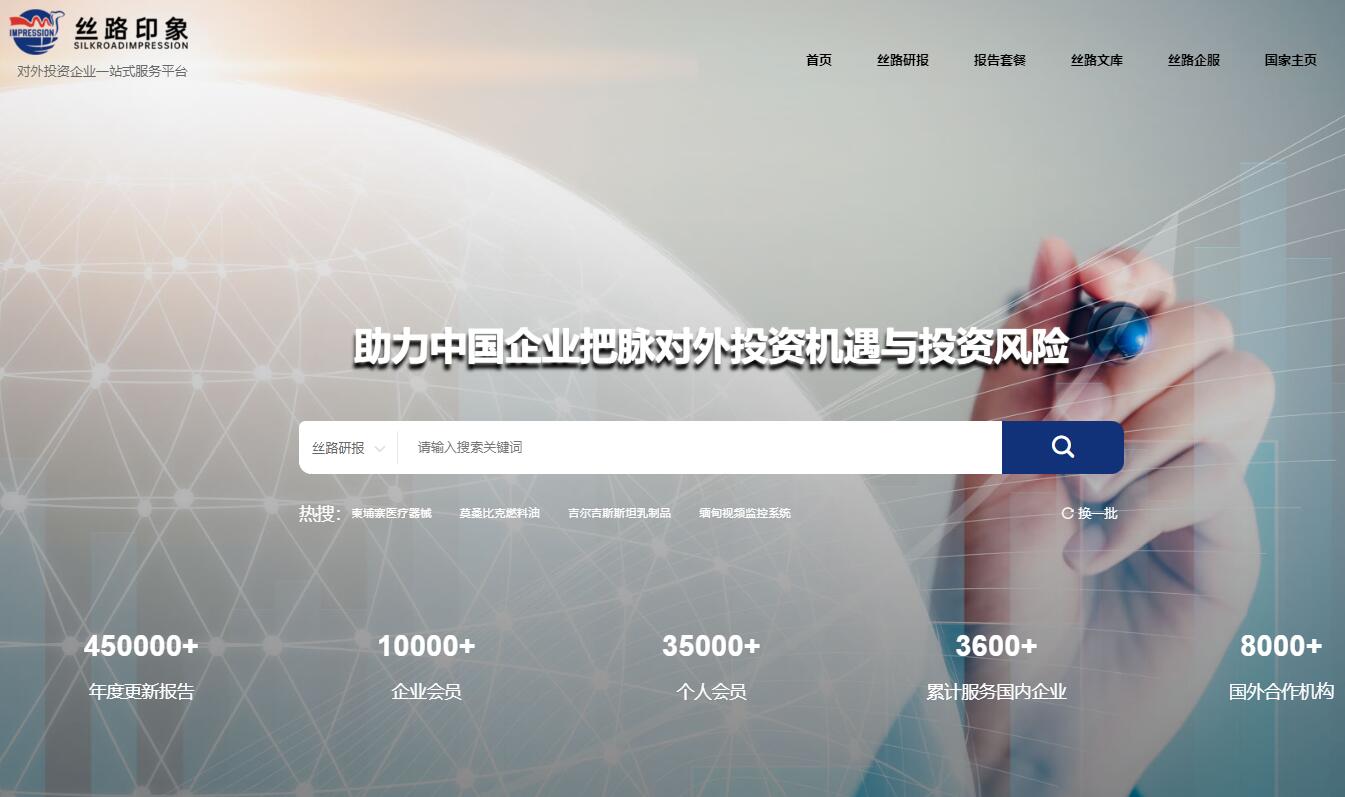| 網(wǎng)站簡介: 絲路印象是中國企業(yè)走出去對(duì)外投資的一站式服務(wù)平臺(tái),我們提供包括190余國家地區(qū)的投資及項(xiàng)目、各行業(yè)分析報(bào)告下載,整理收集全球各國投資營商環(huán)境最新資訊,海外企業(yè)注冊(cè),查詢境外企業(yè)商譽(yù)相關(guān)信息。絲路印象,助力中國企業(yè)走出去。 |