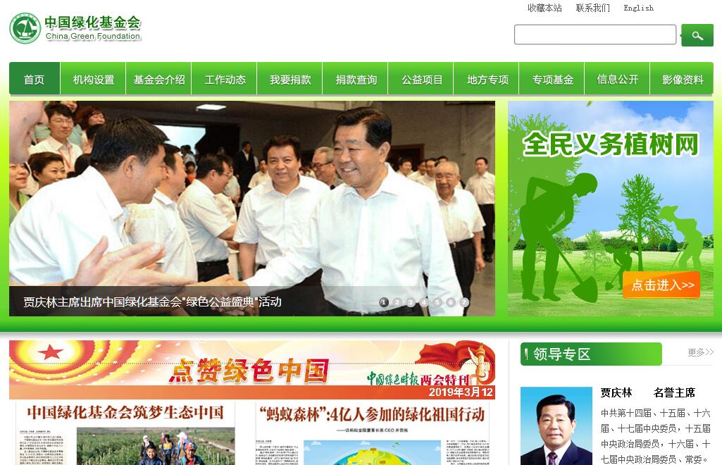 中國綠化基金會(China Green Foundation)是根據(jù)中共中央、國務(wù)院1984年3月1日《關(guān)于深入扎實地開展綠化祖國運動的指示》中,"為了滿足國內(nèi)外關(guān)心我國綠化事業(yè),愿意提供捐贈的人士的意愿,成立中國綠化基金會"的決定,由烏蘭夫等國家領(lǐng)導(dǎo)人支持,聯(lián)合社會各界共同發(fā)起,經(jīng)國務(wù)院常務(wù)會議批準(zhǔn),于1985年9月27日召開第一屆理事會宣告成立。屬于全國性公募基金會,在民政部登記注冊,業(yè)務(wù)主管單位是國家林業(yè)局。第二屆、第三屆、第四屆理事會全體會議,分別于1990年6月13日、1995年6月8日、1999年6月22日在北京舉行。烏蘭夫、萬里、李瑞環(huán)先后擔(dān)任中國綠化基金會名譽(yù)主席,雍文濤、陳慕華、王丙乾先后擔(dān)任主席。中國綠化基金會第五屆理事會于2005年6月3日召開,中共中央政治局常委、全國政協(xié)主席賈慶林擔(dān)任名譽(yù)主席,全國政協(xié)委員、國家林業(yè)局原局長王志寶擔(dān)任主席。