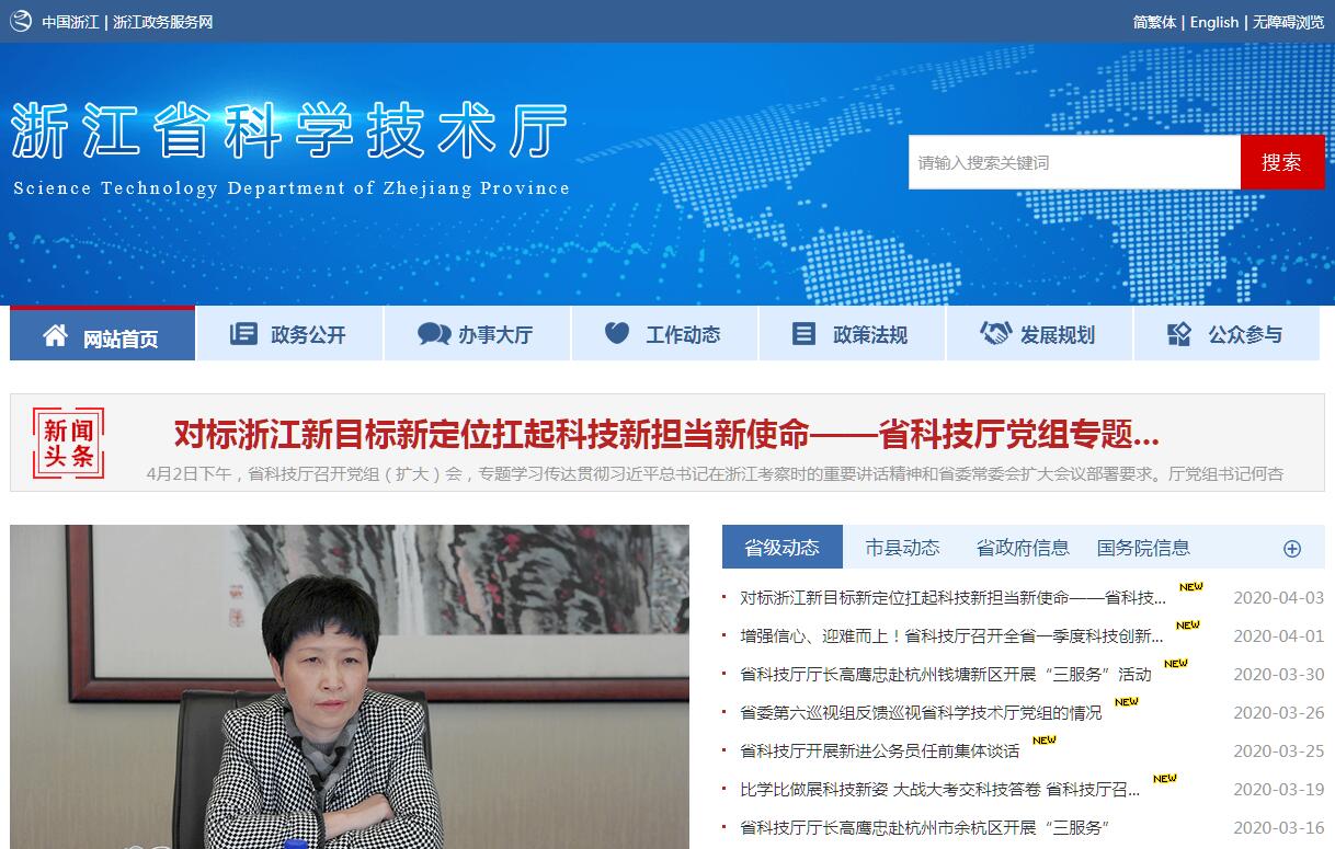 浙江省科學技術廳是浙江省主管科技工作的省政府組成部門。其主要職責是:(一)牽頭擬訂全省中長期科技發(fā)展規(guī)劃和科技工作方針、政策,起草相關地方性法規(guī)、規(guī)章草案,經審議通過后組織實施。(二)負責組織制定和實施全省科技創(chuàng)新環(huán)境營造、人才培養(yǎng)、條件建設和研發(fā)支持等方面的各類科技計劃,負責統(tǒng)籌協(xié)調全省科學技術基礎研究、應用研究、成果轉化,會同有關部門做好產業(yè)化工作,牽頭組織實施重大科技專項;指導省自然科學基金委員會工作;會同有關部門做好科技投融資體系建設工作。(三)會同有關部門擬訂全省科技體制改革和科技創(chuàng)新的政策和措施,負責全省科研院所體制改革和相關科研機構的組建和調整,指導技術市場、科技中介機構、民營科技機構和科技社團工作,擬訂全省科普規(guī)劃和政策,負責全省科技宣傳信息和軟科學研究管理工作。(四)負責組織制定全省企業(yè)科技研發(fā)機構、重點實驗室、科技孵化器、區(qū)域科技創(chuàng)新服務中心等各類科技創(chuàng)新載體和重大科技創(chuàng)新平臺的規(guī)劃,并組織實施和管理。(五)會同有關部門擬訂高新技術產業(yè)化政策和措施,審核、指導高新技術產業(yè)開發(fā)區(qū)、高新技術特色產業(yè)基地等各類科技園區(qū)建設。(六)負責擬訂和實施科技促進工業(yè)、農業(yè)、服務業(yè)發(fā)展的政策和措施。(七)加強與中科院、工程院、高校院所、國防科技系統(tǒng)等各方面的科技合作,會同有關部門擬訂和實施產學研結合的相關政策,促進聯(lián)合攻關和科技成果轉化推廣應用。(八)負責本部門預算中的科技經費預決算及經費使用的監(jiān)督管理,會同有關部門提出科技資源合理配置重大政策和措施建議,優(yōu)化科技資源配置。(九)負責擬訂全省科技成果推廣的政策和措施,做好科技成果管理和科技獎勵評審的組織工作。(十)協(xié)同有關部門做好科技人才培養(yǎng)和引進工作,提出相關政策建議。(十一)在授權范圍內,負責管理全省科技外事工作,組織擬訂國際科技合作和交流政策,制定和實施相關計劃,受委托審批或報批出國(境)科技團組;會同有關部門組織國內外先進技術引進、消化吸收和技術出口工作。(十二)牽頭擬訂全省知識產權發(fā)展規(guī)劃、方針、政策;負責組織協(xié)調全省知識產權保護工作,開展專利行政執(zhí)法工作,承擔規(guī)范專利管理基本秩序的責任,負責全省專利信息公共服務體系建設和專利代理等中介服務機構的管理工作,負責全省知識產權法律法規(guī)的宣傳、培訓工作。(十三)指導協(xié)調省政府各部門與各市、縣(市、區(qū))的科技和知識產權管理工作;會同有關部門組織實施科技強省和知識產權戰(zhàn)略,推動各地區(qū)、各行業(yè)科技進步。(十四)承辦省政府交辦的其他事項。