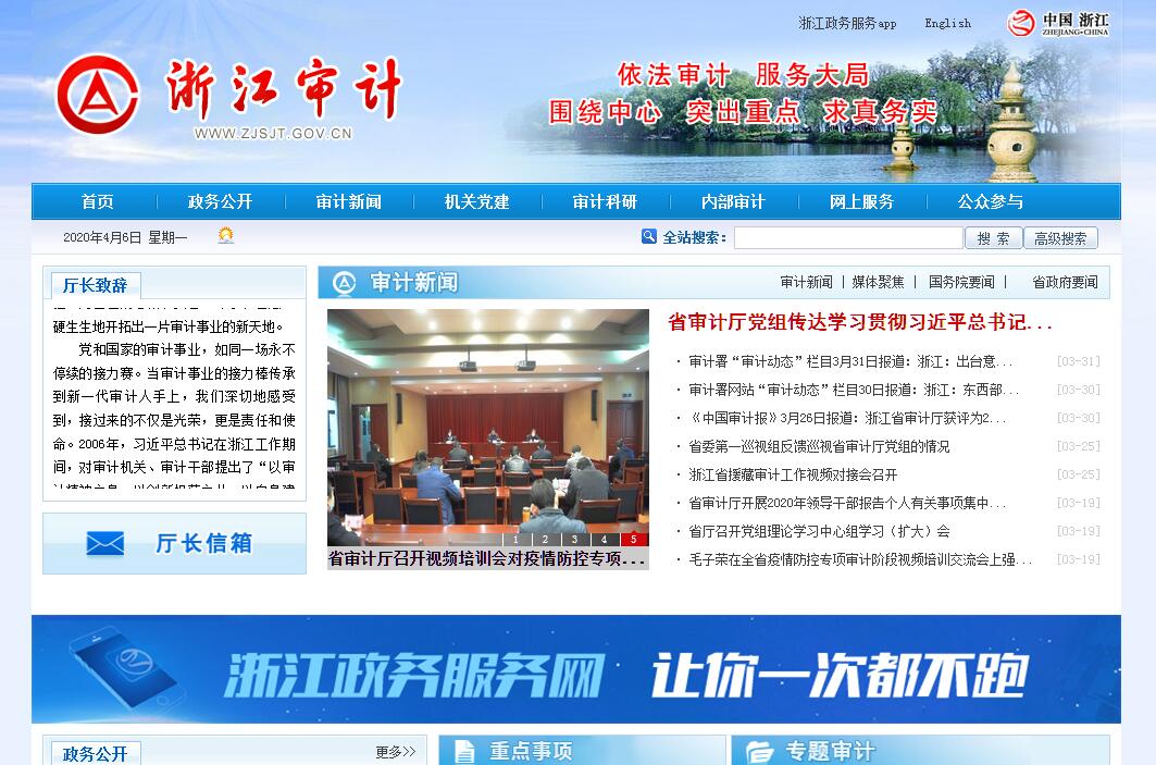浙江省審計廳為省政府組成部門,是省政府的審計機關,根據(jù)《中華人民共和國憲法》、《中華人民共和國審計法》、《中華人民共和國審計法實施條例》和有關法律、法規(guī)規(guī)定,在省長和審計署的領導下,負責本省行政區(qū)域內的審計工作,對省政府和審計署負責并報告工作。其主要職責是:(一)負責對省級財政收支和法律法規(guī)規(guī)定屬于審計監(jiān)督范圍的財務收支的真實、合法和效益進行審計監(jiān)督。對審計、專項審計調查和核查社會審計機構相關審計報告的結果承擔責任,并負有督促被審計單位整改的責任。(二)起草有關審計行政管理的地方性法規(guī)、規(guī)章草案,經(jīng)審議通過后組織實施。制定并組織實施全省審計工作發(fā)展規(guī)劃和專業(yè)領域審計工作規(guī)劃,制定并組織實施年度審計計劃。參與起草財政經(jīng)濟及其相關的地方性法規(guī)、規(guī)章草案。對直接審計、調查和核查的事項依法進行審計評價,做出審計決定或提出審計建議。(三)負責向省政府和審計署提出年度省級預算執(zhí)行和其他財政收支情況的審計結果報告。受省政府委托向省人大常委會提出省級預算執(zhí)行和其他財政收支情況的審計工作報告、審計發(fā)現(xiàn)問題的糾正和處理結果報告。向省政府報告對其他事項的審計和專項審計調查情況及結果。依法向社會公布審計結果。向省政府有關部門和設區(qū)的市人民政府通報審計情況和審計結果。(四)負責直接審計下列事項,出具審計報告,在法定職權范圍內做出審計決定或向有關主管機關提出處理處罰的建議:1.省級預算執(zhí)行情況和其他財政收支,省級各部門(含直屬單位)預算的執(zhí)行情況、決算和其他財政收支。2.設區(qū)的市人民政府預算的執(zhí)行情況、決算和其他財政收支,省級財政轉移支付資金。3.使用省級財政資金的事業(yè)單位和社會團體的財務收支。4.省級投資和以省級投資為主的建設項目的預算執(zhí)行情況和決算。5.省級國有企業(yè)和金融機構、省政府規(guī)定的省級國有資本占控股或主導地位的企業(yè)和金融機構的資產、負債和損益。6.省政府部門管理的和受省政府及其部門委托由其他單位管理的社會保障基金、社會捐贈資金及其他有關基金、資金的財務收支。7.國際組織和外國政府援助、貸款項目的財務收支。8.法律、行政法規(guī)規(guī)定應由省審計廳審計的其他事項。(五)負責按規(guī)定對省管領導干部及依法屬于省審計廳審計監(jiān)督對象的其他單位主要負責人實施經(jīng)濟責任審計。(六)負責對財經(jīng)法律、法規(guī)、規(guī)章、政策和宏觀調控措施執(zhí)行情況、省級財政收支有關的特定事項組織專項審計調查。(七)負責依法檢查審計決定執(zhí)行情況,督促糾正和處理審計發(fā)現(xiàn)的問題,依法辦理被審計單位對審計決定提請行政復議、行政訴訟或省政府裁決中的有關事項。協(xié)助配合有關部門查處相關重大案件。(八)指導和監(jiān)督內部審計工作,核查社會審計機構對依法屬于審計監(jiān)督對象的單位出具的相關審計報告。(九)負責與設區(qū)的市人民政府共同領導當?shù)貙徲嫏C關。依法領導和監(jiān)督市、縣(市、區(qū))審計機關的業(yè)務,組織市、縣(市、區(qū))審計機關實施特定項目的專項審計或審計調查,糾正或責成糾正市、縣(市、區(qū))審計機關違反國家規(guī)定做出的審計決定。按照干部管理權限協(xié)管設區(qū)的市審計機關負責人。(十)承擔審計署授權的審計事項。(十一)承辦省政府交辦的其他事項。