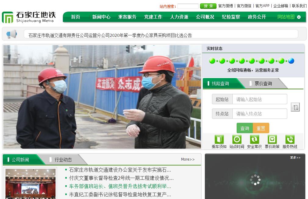 石家莊市軌道交通有限責(zé)任公司(以下簡稱公司)是石家莊市乃至河北省唯一一家從事軌道交通建設(shè)及運(yùn)營管理的公司。公司成立于2010年4月14日,公司主要承擔(dān)石家莊市軌道交通項(xiàng)目建設(shè)和地鐵運(yùn)營管理工作。石家莊市軌道交通線網(wǎng)方案主要體現(xiàn)6條線組成的“大放射、小方格”布局,其中,骨干線3條,輔助線3條,線網(wǎng)總長241.7公里。首期建設(shè)軌道交通1、2、3號線一期工程,按照國務(wù)院批準(zhǔn)的《石家莊市城市軌道交通建設(shè)規(guī)劃(2012-2020年)》要求,建設(shè)線路總長59.6公里,車站52座(均為地下站),總投資421.9億元。公司立足“建設(shè)安全、優(yōu)質(zhì)、科技、環(huán)保、人文、經(jīng)濟(jì)型地鐵”,積極探索現(xiàn)代企業(yè)發(fā)展之路,建立了以“部分自建+投融資”為基礎(chǔ)的工程建設(shè)管理體系,取得了顯著的工作成效,公司規(guī)模迅速擴(kuò)大,已擁有一大批技術(shù)和管理人才,具備了較強(qiáng)的軌道交通建設(shè)管理能力。在未來的發(fā)展中,公司將秉承“以人為本,立業(yè)報(bào)國”的企業(yè)理念,牢記責(zé)任,誠信立事,攻堅(jiān)克難,追求卓越,努力為社會提供優(yōu)質(zhì)服務(wù),創(chuàng)造良好的經(jīng)濟(jì)效益,為石家莊市的軌道交通建設(shè)和社會繁榮做出更大貢獻(xiàn)。