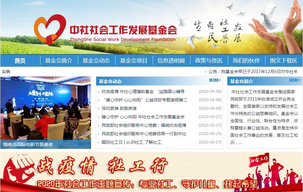 中社社會工作發(fā)展基金會是2011年經(jīng)國家民政部批準(zhǔn)成立的、全國首家以支持和發(fā)展社會工作為宗旨的公益基金會。2017年4月27日經(jīng)民政部審核,基金會被正式認(rèn)定為慈善組織?;饡浴鞍l(fā)展社工,普惠民生”為宗旨,以全國性、行業(yè)性、聯(lián)合性為特點(diǎn),依照章程從事公益活動,重點(diǎn)是支持中國社會工作事業(yè)的發(fā)展,普及社工知識,培養(yǎng)社工人才,宣傳社工理念,培育不同類型的社工基層組織,開展社工專業(yè)服務(wù)活動,為發(fā)展社會工作事業(yè)提供強(qiáng)有力的支持與保證;同時,由社會工作概念延伸而來,廣泛支持開展社會建設(shè)和社會文明與發(fā)展領(lǐng)域的公益項目;結(jié)合社會工作助人理念,廣泛支持傳統(tǒng)救助救援類公益慈善項目,服務(wù)民生、促進(jìn)社會和諧發(fā)展?;饡?chuàng)始理事長為徐瑞新,民政部原副部長。理事長為趙蓬奇,民政部原老干部局巡視員。秘書長為王紅衛(wèi),全國首批社會工作師?;饡略O(shè)綜合事務(wù)部、財務(wù)管理部、項目服務(wù)部、項目發(fā)展部、公益?zhèn)鞑ゲ?。網(wǎng)址:http//www.zsswdf.org。目前,中社社會工作發(fā)展基金會已設(shè)立40多支專項基金,覆蓋老年、兒童、青少年、婚姻、家庭、社區(qū)、社工獎勵、退役軍人創(chuàng)就業(yè)、關(guān)愛老兵、文化、體育、心理健康、康復(fù)醫(yī)療等多個領(lǐng)域,運(yùn)用社會工作的理念和方法,通過公益項目的開展,對各類人群提供公益幫扶和支持,服務(wù)社會,惠及民生?;饡闪⒘陙?,通過運(yùn)用專業(yè)的社會工作方法結(jié)合公益慈善的理念開展各類項目和活動,獲得了社會各屆的高度認(rèn)可與肯定,社會公信力越來越高。2015年,在全國社會組織等級評估中,基金會首次參評獲評3A等級;在民政部開展的基金會年度檢查中,連續(xù)獲得年檢合格;基金會連續(xù)擁有公益性捐贈稅前免稅資格及非營利組織免稅資格;基金會在第十三屆(2016)中國慈善榜榮登“2016全國非公募基金會15強(qiáng)榜單”;獲評第十四屆(2017)中國慈善榜“中國十大非公募基金會”;2017年,基金會從全國332929個社會組織中脫穎而出,榮登“中國社會組織品牌價值排行榜”第六位;黨建工作在《社會與公益》雜志推出的《社會組織黨建工作考察報告》中排名第14位。未來,伴隨著我國社會建設(shè)和社會治理進(jìn)程的不斷推進(jìn),社會工作發(fā)揮的作用將越來越大,中社社會工作發(fā)展基金會的責(zé)任也將越來越重?;饡⒉粩嗵嵘陨戆l(fā)展水平和服務(wù)能力,支持中國的社會工作事業(yè)發(fā)展,推進(jìn)社會治理創(chuàng)新,為人民幸福、社會和諧、為實(shí)現(xiàn)習(xí)近平總書記提出的中華民族偉大復(fù)興的中國夢做出更大的貢獻(xiàn)。