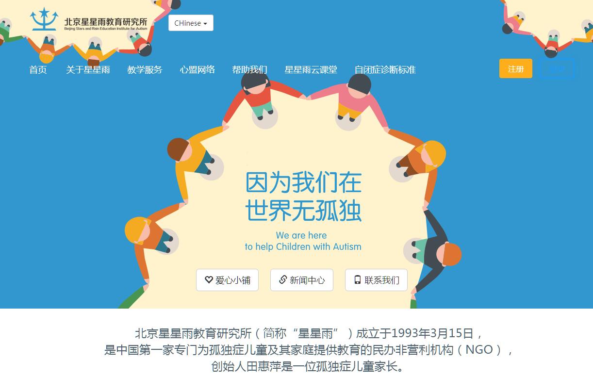 北京星星雨教育研究所(簡稱“星星雨”)成立于1993年3月15日,是中國第一家專門為孤獨(dú)癥兒童及其家庭提供教育服務(wù)的民辦非盈利機(jī)構(gòu)(NGO),于1993年12月在北京朝陽區(qū)工商局注冊。創(chuàng)始人田惠萍是一位孤獨(dú)癥兒童家長。2012年6月,在中華少年兒童慈善救助基金會(huì)(簡稱“中華兒慈會(huì)”)的支持下,成立星星雨專項(xiàng)基金。自此,“星星雨”開始擁有公募權(quán),通過各項(xiàng)活動(dòng)所籌集的善款,全部進(jìn)入中華少年兒童慈善救助基金會(huì)星星雨專項(xiàng)基金,用于貧困自閉癥兒童家庭救助,“星星雨”教師培訓(xùn),大齡自閉癥人職前培訓(xùn),善款在中華兒慈會(huì)的管理和監(jiān)督下使用。我們的遠(yuǎn)景:讓孤獨(dú)癥人擁有平等的發(fā)展機(jī)會(huì),享受正?;纳?。 我們的使命:北京星星雨教育研究所,以專業(yè)技術(shù)支持為核心,幫助孤獨(dú)癥(自閉癥)譜系障礙群體及其家庭平等融入社會(huì),促進(jìn)社會(huì)服務(wù)健康發(fā)展。