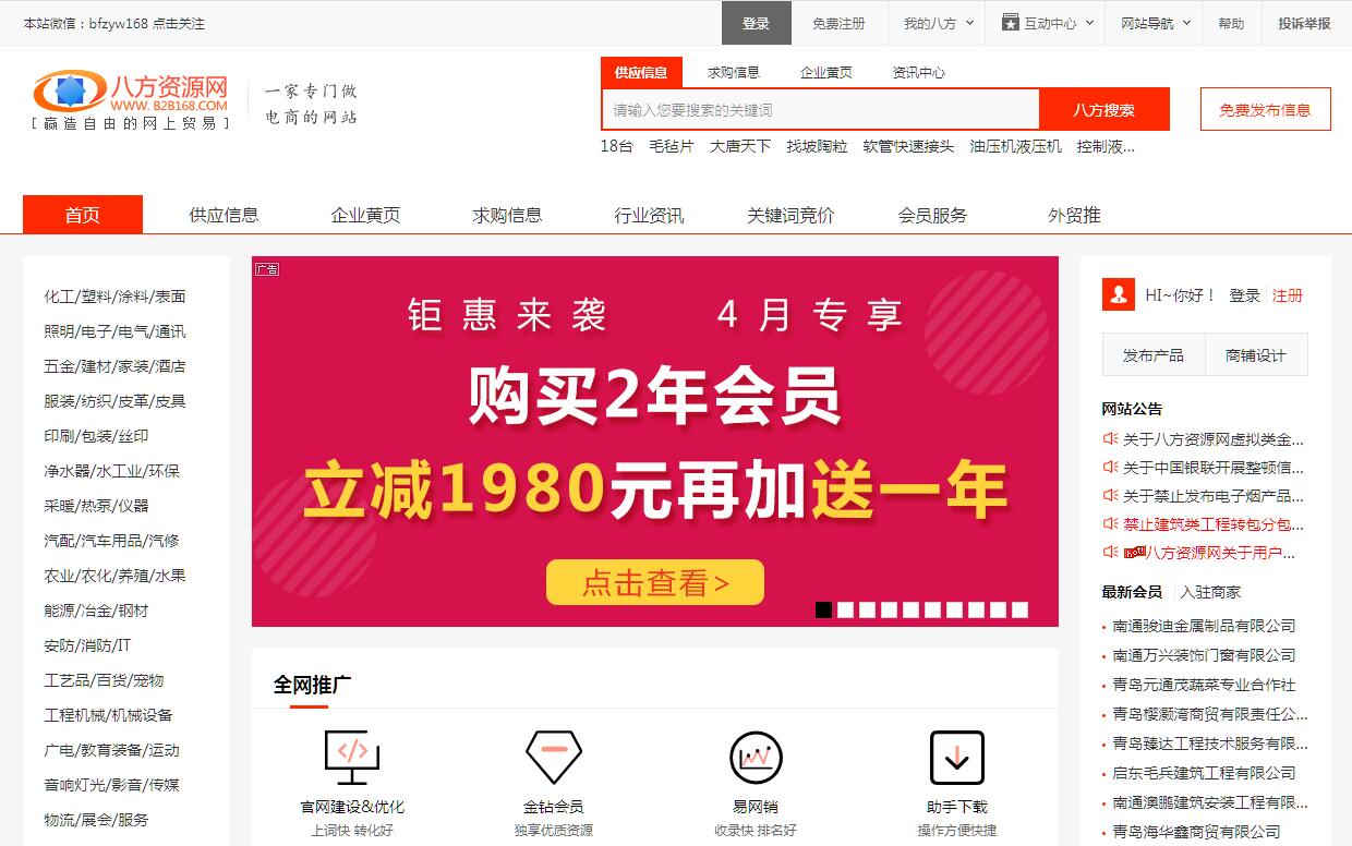 | 網(wǎng)站簡介: 八方資源網(wǎng)(深圳市八方通科技開發(fā)有限公司旗下網(wǎng)站),是一家一站式企業(yè)服務(wù)平臺,提供B2B行業(yè)海量的行業(yè)資訊、供應(yīng)信息、求購信息和公司黃頁信息等.致力于為中小企業(yè)提供域名空間、網(wǎng)站建設(shè)、商機發(fā)布、網(wǎng)絡(luò)營銷、搜索引擎優(yōu)化等一站式電子商務(wù)解決方案。至今為止平臺擁有企業(yè)注冊會員上千萬,訪問量超過千萬,覆蓋2800多個城市、300多個行業(yè),影響商務(wù)人群超過1.2億。至今八方資源網(wǎng)成為了行業(yè)領(lǐng)先平臺,客戶受歡迎平臺之一。八方資源網(wǎng)將努力突破目前中國電子商務(wù)行業(yè)普遍存在的訪問量大、成交量小、交易成本高、效率低下、用戶體驗差等瓶頸,傾力打造中小企業(yè)信賴的、效率高的、人性化的智能電子商務(wù)平臺。 |
