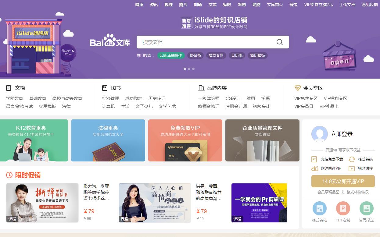 | 網(wǎng)站簡(jiǎn)介: 百度文庫(kù)——讓每個(gè)人平等地提升自我。在線互動(dòng)式文檔分享平臺(tái),在這里,您可以和千萬(wàn)網(wǎng)友分享自己手中的文檔,全文閱讀其他用戶的文檔,同時(shí),也可以利用分享文檔獲取的積分下載文檔。百度文庫(kù)是百度發(fā)布的供網(wǎng)友在線分享文檔的平臺(tái)。百度文庫(kù)的文檔由百度用戶上傳,需要經(jīng)過(guò)百度的審核才能發(fā)布,百度自身不編輯或修改用戶上傳的文檔內(nèi)容。網(wǎng)友可以在線閱讀和下載這些文檔。百度文庫(kù)的文檔包括教學(xué)資料、考試題庫(kù)、專(zhuān)業(yè)資料、公文寫(xiě)作、法律文件等多個(gè)領(lǐng)域的資料。百度用戶上傳文檔可以得到一定的積分,下載有標(biāo)價(jià)的文檔則需要消耗積分。當(dāng)前平臺(tái)支持主流的doc(.docx)、.ppt(.pptx)、.xls(.xlsx)、.pot、.pps、.vsd、.rtf、.wps、.et、.dps、.pdf、.txt文件格式。百度文庫(kù)平臺(tái)于2009年11月12日推出,2010年7月8日,百度文庫(kù)手機(jī)版上線。2010年11月10日,百度文庫(kù)文檔數(shù)量突破1000萬(wàn)。2011年12月文庫(kù)優(yōu)化改版,內(nèi)容專(zhuān)注于教育、PPT、專(zhuān)業(yè)文獻(xiàn)、應(yīng)用文書(shū)四大領(lǐng)域。2013年11月正式推出文庫(kù)個(gè)人認(rèn)證項(xiàng)目。截至2014年4月文庫(kù)文檔數(shù)量已突破一億。2015年12月發(fā)布基礎(chǔ)教育戰(zhàn)略,并推出其首套《大數(shù)據(jù)透視高考》系列專(zhuān)題書(shū)。 |