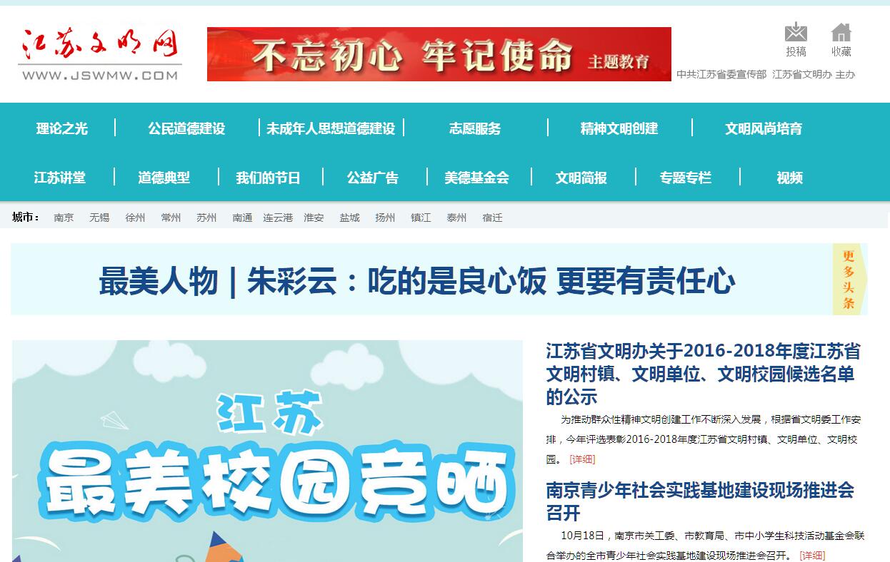 | 網站簡介: 江蘇文明網由中共江蘇省委宣傳部、江蘇省精神文明建設指導委員會辦公室主辦。 |