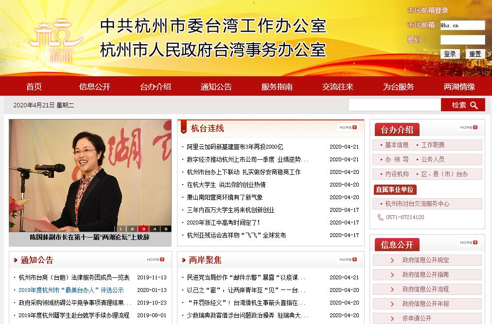 杭州市人民政府臺灣事務(wù)辦公室主要職責(zé):1、貫徹執(zhí)行黨中央、國務(wù)院對臺工作方針、政策和市委、市政府涉臺工作部署。制定并組織實施全市對臺工作計劃、規(guī)劃;組織、指導(dǎo)、管理、協(xié)調(diào)市委、市政府各部門及各區(qū)、縣(市)的對臺工作;對各地、各部門貫徹執(zhí)行中央和市委、市政府對臺方針政策情況進行督促、檢查。2、會同有關(guān)部門統(tǒng)籌協(xié)調(diào)和指導(dǎo)全市對臺經(jīng)貿(mào)工作;研究制定全市對臺經(jīng)濟工作發(fā)展規(guī)劃;組織重要的臺商投資活動,受理臺商和臺資企業(yè)的投訴、妥善處理各類經(jīng)濟糾紛。3、會同有關(guān)部門統(tǒng)籌協(xié)調(diào)和指導(dǎo)全市對臺交流工作;研究制定全市對臺交流工作發(fā)展規(guī)劃;組織杭州與臺灣的文化、教育、體育、衛(wèi)生、科技等各個領(lǐng)域的交流與合作。組織、參與重大交流活動。4、負責(zé)杭州對臺宣傳、涉臺教育和重大涉臺事件的新聞發(fā)布;管理臺灣記者在杭州的采訪事宜,指導(dǎo)杭州與臺灣的新聞交流工作。5、研究臺灣形勢和兩岸關(guān)系發(fā)展情況,以及對杭州經(jīng)濟和社會發(fā)展的影響,提出對策建議;協(xié)調(diào)有關(guān)部門研究、草擬杭州涉臺政策、法規(guī)、統(tǒng)籌協(xié)調(diào)杭州涉臺法律事務(wù)。6、負責(zé)到杭州臺胞的接待管理,指導(dǎo)、協(xié)調(diào)、參與處理涉臺重大事件和突發(fā)性事件。7、指導(dǎo)、協(xié)調(diào)杭州定居臺胞的管理工作,以及杭州與臺灣民眾交流中的有關(guān)民事工作;負責(zé)授權(quán)對臺胞捐贈款物的審批和管理,監(jiān)督、檢查捐贈款物的使用。8、指導(dǎo)杭州民主黨派、工商聯(lián)和其他群眾團體的重大涉臺活動。9、管理、指導(dǎo)杭州市臺灣同胞投資企業(yè)協(xié)會、杭州市臺胞臺屬聯(lián)誼會、杭州海峽兩岸經(jīng)濟文化交流促進會、杭州江南書畫院等有關(guān)涉臺社團的工作。10、完成中臺辦、省臺辦交給的對臺工作任務(wù);完成海協(xié)會交辦的有關(guān)事務(wù)。