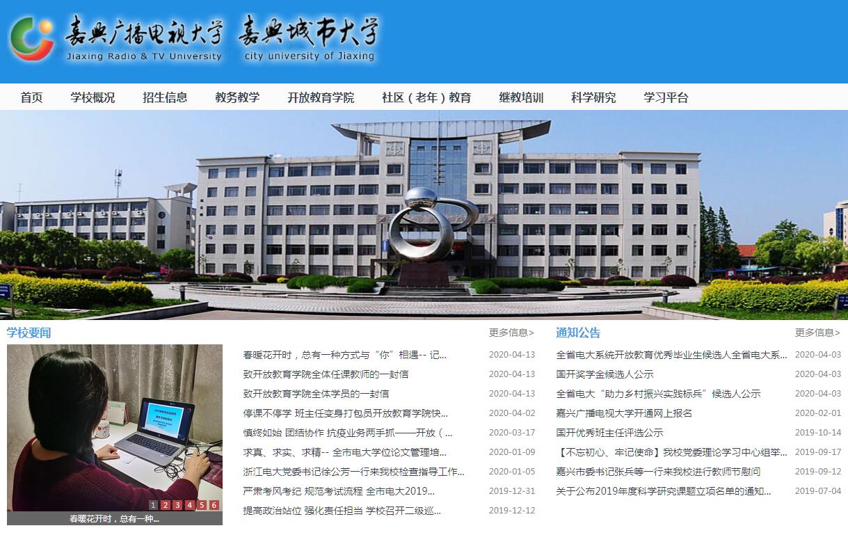 嘉興廣播電視大學(xué)創(chuàng)建于1979年。1979年1月,電大嘉興工作站成立,開始利用廣播電視進(jìn)行成人??平逃?。1983年嘉興撤地建市,1984年1月成立浙江廣播電視大學(xué)嘉興分校;1994年11月,學(xué)校更名為嘉興廣播電視大學(xué)。1999年起,學(xué)校實(shí)施教育部“人才培養(yǎng)模式改革和開放教育試點(diǎn)”項(xiàng)目,開展現(xiàn)代遠(yuǎn)程教育。2005年1月,在嘉興電大的基礎(chǔ)上組建了嘉興城市大學(xué)和嘉興市現(xiàn)代遠(yuǎn)程教育中心,實(shí)行三塊牌子一套班子。學(xué)校積極探索社區(qū)教育、全面推進(jìn)遠(yuǎn)程教育。同年12月,學(xué)校整體遷入嘉興市大新路131號,占地80畝、建筑面積3萬多平方米。目前,市本校學(xué)歷教育在校生達(dá)到6500多名,每年還有10000多名非學(xué)歷培訓(xùn)學(xué)員;全市電大學(xué)歷教育在校生達(dá)到24000多人。30多年來,學(xué)校堅持“面向地方、面向基層、面向農(nóng)村”的辦學(xué)方針,充分利用廣播、電視、文字教材、音像教材、計算機(jī)課件和網(wǎng)絡(luò)等多種媒體實(shí)施教學(xué),積極開展本科、專科、中專學(xué)歷教育和各類非學(xué)歷培訓(xùn),實(shí)行多層次、多形式辦學(xué)。截止目前,全市電大已累計培養(yǎng)本、專科畢業(yè)生5萬多名、中專畢業(yè)生1萬多名,進(jìn)行了10萬多人次的各類繼續(xù)教育培訓(xùn),培養(yǎng)了大批“留得住、用得上、干得好”的實(shí)用型人才,為提高嘉興高等教育大眾化程度和各行業(yè)人員素質(zhì),為嘉興市的經(jīng)濟(jì)社會發(fā)展做出了貢獻(xiàn)。學(xué)校先后被評為省、市、區(qū)三級“文明單位”、“衛(wèi)生先進(jìn)單位”,嘉興市“平安校園”,嘉興市級“治安先進(jìn)單位”,嘉興市教育系統(tǒng)“先進(jìn)基層黨組織” ,嘉興市屬學(xué)校優(yōu)秀校園網(wǎng)站,中央廣播電視大學(xué)“優(yōu)秀考點(diǎn)”,浙江廣播電視大學(xué)“先進(jìn)辦學(xué)單位”、“思想政治工作先進(jìn)集體” 、“招生工作先進(jìn)單位”、“優(yōu)秀教務(wù)管理集體”、“科研先進(jìn)單位”等。2010年6月,學(xué)校被中央電大評定為首批33家“全國市地級示范性電大”之一,躋身全國一流市地電大行列。憶往昔崢嶸歲月稠,看今朝杏林春意濃。在“十二五”期間,學(xué)校將繼續(xù)立足于嘉興經(jīng)濟(jì)建設(shè)和社會發(fā)展需要,堅持“穩(wěn)定規(guī)模、保證質(zhì)量、強(qiáng)化特色、打造品牌”的發(fā)展方針,充分發(fā)揮電大在構(gòu)建終身教育體系,建設(shè)學(xué)習(xí)型社會中的作用,全面提升為嘉興經(jīng)濟(jì)社會服務(wù)的能力,努力打造功能較為完備的嘉興市終身教育平臺。
