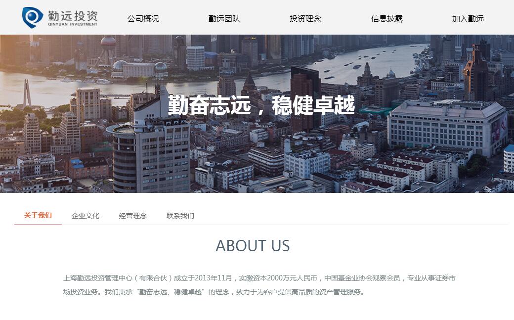 | 網站簡介: 上海勤遠投資管理中心(有限合伙)成立于2013年11月,實繳資本2000萬元人民幣,中國基金業(yè)協(xié)會觀察會員,專業(yè)從事證券市場投資業(yè)務。管理團隊成員均具備豐富的從業(yè)經驗,歷經國內外證券市場的跌宕起伏。我們秉承“勤奮志遠、穩(wěn)健卓越”的理念,打造“多策略、全方位”的一體化投資平臺,致力于為客戶提供高品質的資產管理服務。 |