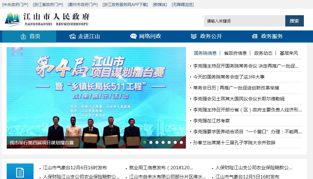 江山地處浙閩贛三省交界,是浙江省西南門戶和錢江源頭之一。唐武德四年(公元621年)建縣,1987年撤縣設(shè)市。區(qū)域面積2019平方公里,總?cè)丝?1.4萬,下轄11鎮(zhèn)5鄉(xiāng)3街道、292個行政村13個社區(qū)。近年來,江山市堅持以習(xí)近平新時代中國特色社會主義思想為指導(dǎo),堅定不移沿著“八八戰(zhàn)略”指引的路子,堅決貫徹執(zhí)行省委和衢州市委各項決策部署,堅持以加快工業(yè)轉(zhuǎn)型為主攻方向,全力建設(shè)實力支撐、美麗著稱、活力開放、人民幸福的江山大花園。2017年全年實現(xiàn)地區(qū)生產(chǎn)總值301.64億元,增長7.3%;規(guī)上工業(yè)總產(chǎn)值324.51億元,增長11.8%;財政總收入25.21億元,增長4.6%,一般公共預(yù)算收入16.67億元,同口徑增長8.6%;社會消費品零售總額126.45億元,增長11.2%;城鄉(xiāng)居民人均可支配收入分別為41545元和21932元,增長9.1%和9.9%。江山是工業(yè)新城,工業(yè)基礎(chǔ)扎實,發(fā)展勢頭強勁。江山是浙江省老工業(yè)基地、首批20個工業(yè)強市建設(shè)試點縣之一。確立了以省級經(jīng)濟開發(fā)區(qū)——江山經(jīng)濟開發(fā)區(qū)為主體,四都和峽口鄉(xiāng)鎮(zhèn)功能區(qū)為兩翼的“一體兩翼、一區(qū)多園”工業(yè)平臺開發(fā)體系,總規(guī)劃面積近80平方公里。重點培育門業(yè)和裝備制造、健康生活、消防應(yīng)急“1+3”重點產(chǎn)業(yè),新能源、新材料等新興產(chǎn)業(yè)發(fā)展迅速。木門產(chǎn)業(yè):擁有華東地區(qū)最大的國產(chǎn)原木集散交易中心,是國內(nèi)最大的人造板生產(chǎn)基地,年產(chǎn)木門1600多萬套,占國內(nèi)木門市場的1/4,被授予“中國木門之都”。裝備制造產(chǎn)業(yè):以輸配電、高低壓開關(guān)為主打產(chǎn)品,220KV容量高等級變壓器實現(xiàn)批量生產(chǎn),出口歐洲、東亞等地。健康生活產(chǎn)業(yè):蜂產(chǎn)業(yè)規(guī)模和效益連續(xù)25年居全國各縣(市)第一,獼猴桃網(wǎng)絡(luò)年銷售量占全國50%以上,白菇產(chǎn)量與出口量均居國內(nèi)縣(市)前列。消防應(yīng)急產(chǎn)業(yè):擁有覆蓋全國的銷售網(wǎng)絡(luò),常年有3萬多人在外從事產(chǎn)品營銷,分布于除港、澳、臺地區(qū)外的全部省(市、自治區(qū)),銷售額占全國消防市場60%以上。全市規(guī)模以上企業(yè)208家,億元以上企業(yè)70家,10億元企業(yè)1家,江山化工、健盛集團、江山歐派在A股上市,4家企業(yè)在“新三板”上市。江山是旅游勝地,自然景觀獨特,旅游資源豐富。江山是中國優(yōu)秀旅游城市,擁有江浙滬唯一的世界自然遺產(chǎn)——江郎山,國家5A級景區(qū)1處(江郎山?廿八都旅游區(qū),含江郎山、清漾、廿八都古鎮(zhèn)),4A級景區(qū)2處(仙霞關(guān)、浮蓋山),3A級景區(qū)10處,高等級景區(qū)數(shù)量居浙江省各縣(市、區(qū))前列。2017年累計接待國內(nèi)外游客1504.65萬人次,旅游經(jīng)濟收入95.36億元,分別同比增長20.9%、26.3%,被評為浙江省旅游經(jīng)濟強市。江山是全國一流休閑旅游目的地,在做大做強核心景區(qū)的同時,致力做優(yōu)做美鄉(xiāng)村休閑旅游,打造了幸福大陳、書香清漾、秀美耕讀、古韻潯里、七彩保安、醉美碗窯等一大批各具特色的文化古村落,推出世遺江郎風(fēng)采線、古鎮(zhèn)養(yǎng)生風(fēng)韻線等6條鄉(xiāng)村休閑旅游精品線路,被評為全國休閑農(nóng)業(yè)與鄉(xiāng)村旅游示范市。做特做精“旅游+體育”,先后舉辦了美國翼裝飛行大師杰布·克里斯穿越江郎山一線天、奧地利蜘蛛俠邁克·凱米特極限挑戰(zhàn)江郎山等活動,MaXi-Race100國際越野跑、全國新年登高等一批休閑體育賽事和重要節(jié)會落戶江山。江山是山水家園,生態(tài)環(huán)境優(yōu)美,宜居功能完善。境內(nèi)森林覆蓋率70.8%,有國家級森林公園1個、省級自然保護區(qū)2個。碗窯、峽口和白水坑三大水庫常年蓄水庫容達4.7億立方米,出境水、江山港地表水功能區(qū)、集中式飲用水源地水質(zhì)達標率均為100%。江山城區(qū)依山傍水,母親河——須江穿城而過,“一江兩帶”秀麗動人,城市規(guī)劃控制區(qū)面積286平方公里,建成區(qū)面積17.5平方公里,城區(qū)綠地率43.28%,城區(qū)人口16.9萬,城市化率51%,是全球綠色城市、全國雙擁模范城、全國綠化模范市、國家級生態(tài)示范區(qū)、國家衛(wèi)生城市、國家園林城市、中國十大小康示范縣市。江山幸福鄉(xiāng)村美麗綻放,從2009年開始持續(xù)實施以“富裕、滿意、文明、美麗、和諧”為內(nèi)容的中國幸福鄉(xiāng)村建設(shè),建成中國幸福鄉(xiāng)村110個,是浙江省首批美麗鄉(xiāng)村示范縣,成功承辦全省美麗鄉(xiāng)村和農(nóng)村精神文明建設(shè)現(xiàn)場會。江山區(qū)位優(yōu)勢突出,杭長高鐵、京臺(黃衢南)高速、浙贛線鐵路貫穿全境,與京、滬、杭、甬等大都市間交通便捷,建有浙西貨運量最大的鐵路貨運場;杭長高鐵目前經(jīng)停52趟列車,包括始發(fā)到北京、上海、杭州等城市,開創(chuàng)了縣級城市高鐵始發(fā)直達北京的先河。杭建衢高鐵江山段、義金衢上高速、通用機場、江山港航道等戰(zhàn)略大通道項目加快推進,逐步形成了高鐵、高速“兩縱兩橫、水陸空齊備”的立體交通格局。江山是文化名市,歷史人文薈萃,文化底蘊深厚。江山歷史綿長、人杰