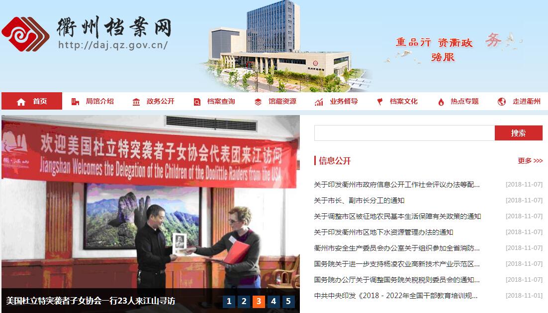 衢州市檔案局其前身是1960年1月8日建立的衢縣檔案館。1962年6月27日,衢縣檔案館并入縣委辦公室。1980年11月28日成立衢縣檔案科,屬縣委辦公室內(nèi)設(shè)科室,與衢縣檔案館兩塊牌子,一套班子,合署辦公。1981年4月衢縣撤縣建市(縣級(jí))改稱中共衢州市委辦公室檔案科和檔案館。1985年6月,衢州升為地級(jí)市后,仍襲原稱。1987年7月16日,成立衢州市檔案局,為縣級(jí)單位,列入政府序列。1995年2月衢州市志編纂委員會(huì)及其辦公室撤銷,成立衢州市地方志辦公室,并入檔案局,為市檔案局下屬事業(yè)單位(科級(jí))。1995年8月,市檔案局與檔案館合并,全稱“衢州市檔案局(館)”。內(nèi)設(shè)辦公室和業(yè)務(wù)指導(dǎo)科兩個(gè)職能科室,承擔(dān)全市的檔案行政管理和檔案館業(yè)務(wù)建設(shè)。2001年11月根據(jù)《衢州市檔案局(館)職能配置、內(nèi)設(shè)機(jī)構(gòu)和人員編制方案》的文件規(guī)定,衢州市檔案局與衢州市檔案館一個(gè)機(jī)構(gòu),兩塊牌子,履行全市檔案事業(yè)行政管理和市級(jí)檔案保管利用兩種職能,由市委辦公室管理,內(nèi)設(shè)辦公室、檔案業(yè)務(wù)指導(dǎo)處、檔案保管利用處三個(gè)處室。2011年1月20日,根據(jù)衢州市機(jī)構(gòu)編制委員會(huì)《關(guān)于調(diào)整衢州市檔案局(衢州市檔案館)、衢州市地方志辦公室機(jī)構(gòu)編制的通知》(衢市編〔2011〕10號(hào))規(guī)定,將衢州市地方志辦公室與衢州市檔案局整合。衢州市檔案局是主管衢州市檔案、地方志工作的市委、市政府直屬的正縣級(jí)財(cái)政全額補(bǔ)助事業(yè)單位,歸口衢州市委辦管理。衢州市檔案局掛衢州市檔案館、衢州市地方志辦公室牌子。其主要職責(zé):1.貫徹執(zhí)行黨和國家以及省有關(guān)檔案、地方志工作的方針政策、法律法規(guī)、規(guī)章制度、業(yè)務(wù)標(biāo)準(zhǔn)和技術(shù)規(guī)范,對(duì)全市檔案、地方志工作實(shí)行統(tǒng)籌規(guī)劃、宏觀管理、組織協(xié)調(diào);2.開展檔案、地方志法制建設(shè),起草有關(guān)檔案、地方志工作的規(guī)范性文件,依法查處違法行為;3.按照“統(tǒng)一領(lǐng)導(dǎo),分級(jí)管理”的原則,負(fù)責(zé)對(duì)全市檔案、地方志工作的監(jiān)督指導(dǎo);4.負(fù)責(zé)接收、征集、整理、保管市本級(jí)機(jī)關(guān)、企事業(yè)單位的檔案以及散存于社會(huì)的有價(jià)值的檔案資料;征集、整理地方史材料;集中統(tǒng)一管理市本級(jí)檔案、資料,確保檔案、資料的完整與安全;5.開展檔案、地方志宣傳工作;開發(fā)檔案、地方志信息資源,編纂、公布檔案史料;研究、編纂地方志。負(fù)責(zé)落實(shí)相關(guān)書刊的出版,為黨政機(jī)關(guān)、社會(huì)各界提供市情咨詢,為經(jīng)濟(jì)建設(shè)、社會(huì)發(fā)展服務(wù);6.負(fù)責(zé)檔案和地方志工作人員的專業(yè)培訓(xùn);組織、協(xié)調(diào)、指導(dǎo)檔案、地方志學(xué)術(shù)理論研究和科研工作;協(xié)作有關(guān)部門做好檔案、地方志專業(yè)技術(shù)職務(wù)評(píng)審的有關(guān)工作;負(fù)責(zé)全市檔案、地方志系統(tǒng)對(duì)外交流工作;7.運(yùn)用現(xiàn)代管理技術(shù)對(duì)館藏檔案進(jìn)行現(xiàn)代化管理;接收、保管開發(fā)電子檔案和擴(kuò)大電子檔案保護(hù)技術(shù),對(duì)全市電子文件和數(shù)字檔案進(jìn)行登記備份;8.承擔(dān)市委、市政府和上級(jí)業(yè)務(wù)部門交辦的其他工作。