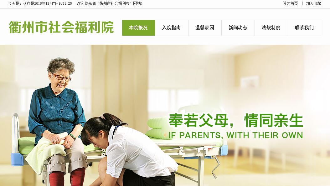 衢州市社會福利院始建于1992 年,目前與市光榮院、市養(yǎng)老服務(wù)指導(dǎo)中心合署辦公,隸屬衢州市民政局,是我市提供城鎮(zhèn)“三無”人員、社會自費(fèi)寄養(yǎng)老人和孤老烈屬等服務(wù)對象生活起居、文化娛樂、康復(fù)訓(xùn)練、醫(yī)療保健于一體的純公益性事業(yè)單位。同時,還是承擔(dān)我市社會養(yǎng)老服務(wù)工作業(yè)務(wù)指導(dǎo),組織開展養(yǎng)老服務(wù)機(jī)構(gòu)從業(yè)人員培訓(xùn)的綜合性福利機(jī)構(gòu)。市福利院座落于西區(qū)白云北大道222號,占地面積24.66畝,建筑面積5430平方米。目前休養(yǎng)區(qū)設(shè)有床位286張,在院休養(yǎng)老人280余人,床位利用率98%。配置有活動室、棋牌室、健身房、門球場等活動場地;成立有微笑歌詠隊(duì)、歡樂廣場舞和政治學(xué)習(xí)等興趣小組;設(shè)立心理疏導(dǎo)室,達(dá)到交流感情,理順情緒,化解矛盾的目的;并定期與浙江老年電視大學(xué)等聯(lián)建單位開展保健、醫(yī)療講座等娛樂活動,促進(jìn)與他人互動,使老年人晚年生活更為充實(shí)。幽雅舒適的休養(yǎng)環(huán)境,先進(jìn)齊全的配套設(shè)施,是一所真正能讓老人養(yǎng)生延年的溫馨家園。我院根據(jù)休養(yǎng)人員的身體健康狀況和生活自理能力,分設(shè)為自理區(qū)和特護(hù)區(qū)兩個休養(yǎng)區(qū)域,提供24小時全天候服務(wù),滿足服務(wù)對象不同程度的醫(yī)療、康復(fù)、生活照顧和臨終關(guān)懷等服務(wù)需求。為了更好地服務(wù)社會,全面提高全院老年人的幸福指數(shù),我院本著“奉若父母,情同親生”的服務(wù)宗旨,傾心打造“貼心民政,親情家園”品牌,在加大完善基礎(chǔ)設(shè)施的同時,還采取科學(xué)管理方式,健全崗位責(zé)任制、服務(wù)標(biāo)準(zhǔn)、工作流程等規(guī)章制度,加強(qiáng)護(hù)理人員的專業(yè)技能培訓(xùn),規(guī)范服務(wù)行為,促進(jìn)我院整體服務(wù)功能的提升,滿足日益增長的社會老年化需求。建院二十多年來,我院職工以優(yōu)質(zhì)的服務(wù),無私奉獻(xiàn)的精神對待每位服務(wù)對象,團(tuán)結(jié)務(wù)實(shí)、開拓創(chuàng)新,各項(xiàng)工作都取得了可喜的成績,得到了上級領(lǐng)導(dǎo)和社會各界人士的一致好評。先后被評為省級“二級福利院”、“養(yǎng)老服務(wù)社會化示范單位”、“最美家園”,以及市級“行風(fēng)建設(shè)滿意單位”、首屆“奧仕特杯”養(yǎng)老護(hù)理職業(yè)技能競賽組織獎、“創(chuàng)先爭優(yōu)先進(jìn)黨組織”,“園林單位”等榮譽(yù)稱號。