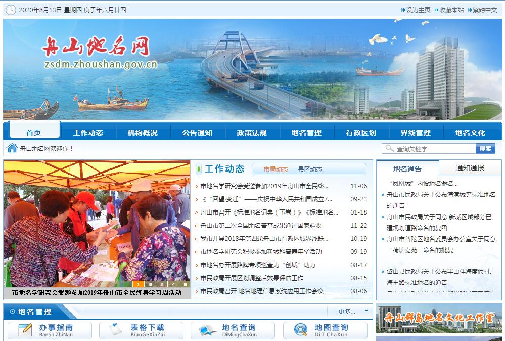 "舟山地名網(wǎng)"是舟山市民政局地名辦對外統(tǒng)一發(fā)布各類信息、提供國內(nèi)外人士在網(wǎng)上辦理有關(guān)事務(wù)的門戶網(wǎng)站,是展示舟山整體形象的窗口,也是舟山市民政局地名辦聯(lián)系群眾、服務(wù)群眾的一座橋梁。門戶網(wǎng)站是一個體系龐大的網(wǎng)站群:包涵著市政府及其50多個所屬部門的綜合信息。主網(wǎng)站設(shè)有6個一級欄目和近200個子欄目,并與50多個市政府委、辦、局子網(wǎng)站和各縣(區(qū))政府網(wǎng)站建立了有效的信息共享機制和復(fù)式鏈接。門戶網(wǎng)站建設(shè)以應(yīng)用為導(dǎo)向,以便民為目的,訪問者可在門戶網(wǎng)站上便捷地查閱信息:工作動態(tài)、機構(gòu)概況、公告通知、政策法規(guī)、地名管理、行政區(qū)劃、界線管理、地名文化等服務(wù)類信息。門戶網(wǎng)站互動功能強大。主任信箱、建議提案、網(wǎng)上投訴、等欄目,構(gòu)筑起市民與政府交流的平臺,為訪問者提供了更大的便利。歡迎登陸"舟山地名網(wǎng)"門戶網(wǎng)站!舟山市民政局地名辦主要職能:宣傳貫徹行政區(qū)劃、界線、地名管理的政策法規(guī);提出全市行政區(qū)劃總體規(guī)劃;承辦鄉(xiāng)鎮(zhèn)(街道)行政區(qū)域的設(shè)立、撤銷、命名、變更和政府駐地遷移及界線變更的審核報批工作;組織和指導(dǎo)行政區(qū)域界線勘定及日常管理工作;指導(dǎo)行政區(qū)域邊界爭議的調(diào)查和調(diào)處工作;編制、實施全市地名規(guī)劃;負責(zé)審批由市直接管理的地名命名、更名、銷名工作,承辦由同級人民政府或上級民政部門審批的地名命名和更名事項的預(yù)審工作;負責(zé)公布、推廣和監(jiān)督標準地名,開展地名信息公共服務(wù),推進全市地名標準化建設(shè);負責(zé)收集、整理地名資料,管理地名檔案;保護和傳承優(yōu)秀地名文化,組織編纂標準地名志、錄、圖、書,開展地名學(xué)術(shù)研究;負責(zé)門(樓)牌、路名牌等地名標志的設(shè)置與監(jiān)督管理;查處地名違法違規(guī)等行為;指導(dǎo)有關(guān)部門、下級人民政府及其派出機構(gòu)的地名管理工作;承擔市地名委員會辦公室日常工作。