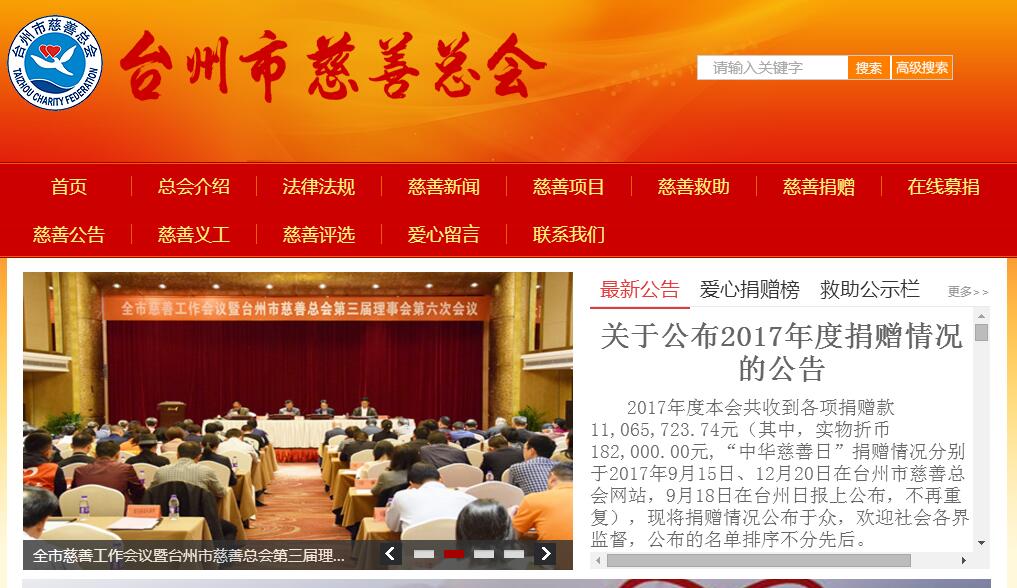臺(tái)州市地處浙江東南沿海,面積9411平方公里,海域8萬平方公里,人口570萬人,下轄椒江、黃巖、路橋、臨海、溫嶺、玉環(huán)、天臺(tái)、仙居、三門9縣(市、區(qū))。臺(tái)州歷史悠久,風(fēng)景優(yōu)美,經(jīng)濟(jì)繁榮,交通便捷,是新興的港口城市。2002年8月,臺(tái)州市慈善總會(huì)開始籌建;2003年1月25日,臺(tái)州市慈善總會(huì)正式成立,市人大常委會(huì)原主任林希才當(dāng)選為第一屆理事會(huì)會(huì)長;2008年3月25日,臺(tái)州市慈善總會(huì)第二次會(huì)員代表大會(huì)召開,市政協(xié)原副主席張錦鳴當(dāng)選第二屆理事會(huì)會(huì)長;2013年12月18日,臺(tái)州市慈善總會(huì)召開第三次會(huì)員代表大會(huì),張錦鳴繼續(xù)當(dāng)選會(huì)長。目前,市慈善總會(huì)共有理事117名,其中常務(wù)理事73名。共有會(huì)員192個(gè),其中個(gè)人會(huì)員94個(gè),團(tuán)體會(huì)員98個(gè)。2016年12月,臺(tái)州市慈善總會(huì)被評(píng)為全國5A級(jí)社會(huì)組織。2017年4月,根據(jù)《慈善法》及有關(guān)規(guī)定,經(jīng)市總會(huì)申報(bào),被臺(tái)州市民政局認(rèn)定為慈善組織,并授予公開募捐資格。本會(huì)宗旨:提倡人道主義精神,弘揚(yáng)中華民族扶貧濟(jì)困的傳統(tǒng)美德,動(dòng)員和組織社會(huì)各界力量,籌募慈善資金,開展社會(huì)救助,扶助弱勢群體,共創(chuàng)和諧社會(huì),促進(jìn)經(jīng)濟(jì)發(fā)展,實(shí)現(xiàn)小康社會(huì)。業(yè)務(wù)范圍:(一)籌募款物。籌募和管理符合本會(huì)宗旨的創(chuàng)始基金、專項(xiàng)基金以及各類慈善基金;接收個(gè)人、法人及其它組織的捐贈(zèng);接收國際及港澳臺(tái)地區(qū)民間組織和個(gè)人的捐贈(zèng);接受省、市民政部門和市內(nèi)外慈善總會(huì)委托的其他捐贈(zèng);開展合法的社會(huì)募捐活動(dòng)。(二)扶貧濟(jì)困。組織各種社會(huì)救助活動(dòng),扶助弱勢群體,包括助老、助孤、助殘、助醫(yī)、助學(xué)等。(三)緊急救助。承擔(dān)賑災(zāi)援助工作,接收、分配國內(nèi)外通過本會(huì)捐贈(zèng)的資產(chǎn),協(xié)助政府開展賑災(zāi)救濟(jì)工作。(四)社會(huì)福利。組織和支持熱心社會(huì)慈善事業(yè)的單位和個(gè)人,對(duì)社會(huì)上的弱者、病者提供扶助和服務(wù);承辦政府委托的社會(huì)福利事業(yè)。(五)加強(qiáng)對(duì)臺(tái)州市慈善總會(huì)義工分會(huì)的領(lǐng)導(dǎo)和管理,達(dá)到奉獻(xiàn)愛心,服務(wù)社會(huì),傳播文明的目的。(六)對(duì)外合作與交流。開展向省內(nèi)外及國際、港澳臺(tái)地區(qū)慈善機(jī)構(gòu)交流與協(xié)作,為在我市興辦慈善事業(yè)的各種機(jī)構(gòu)和有關(guān)人士提供幫助和服務(wù);參與省內(nèi)外的慈善援助活動(dòng)。(七)協(xié)調(diào)和指導(dǎo)各縣(市、區(qū))慈善團(tuán)體工作;加強(qiáng)與市內(nèi)外各公益機(jī)構(gòu)的聯(lián)系與協(xié)作,促進(jìn)地方慈善事業(yè)的發(fā)展。(八)反映各界人士的意見、建議和要求,為政府制定有關(guān)方針、政策和法規(guī)提供咨詢性意見;組織編撰有關(guān)慈善事業(yè)的書刊、資料、研究和介紹國內(nèi)外慈善事業(yè)的理論、方針和經(jīng)驗(yàn)。