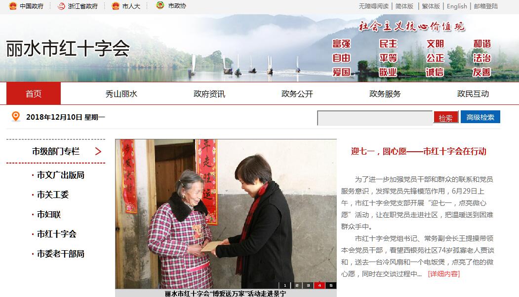 麗水市紅十字會,是中國紅十字會的地級分會,是從事人道主義工作的社會救助團體,以弘揚“人道、博愛、奉獻”的紅十字精神,保護人的生命和健康,促進人類和平進步事業(yè)為宗旨。麗水市紅十字會始建于1988年9月。2000年7月,麗水撤地設市,麗水地區(qū)紅十字會更名為麗水市紅十字會。2002年4月24日,召開麗水市紅十字會第一次會員代表大會,選舉產生麗水市紅十字會第一屆理事會理事34人。選舉莊志清為會長,孟文賢為常務副會長,鄭利劍、藍資霞為副會長,陶小芳為秘書長。2007年9月28日,麗水市紅十字會第二次會員代表大會在麗水召開,這是麗水市紅十字會發(fā)展史上的一個重要里程碑。大會聘請市委書記樓陽生,市委副書記、市長陳榮高為名譽會長,市人大副主任劉國安、市政協(xié)副主席韋鐵民為名譽副會長,選舉產生麗水市紅十字會第二屆理事會理事45名。選舉莊志清為會長,邱務土、鄭利劍、汪帆、江春松為副會長,項金平為專職副會長,任命陶小芳為秘書長。其主要職責:根據《中華人民共和國紅十字會法》和《中國紅十字會章程》,麗水市紅十字會主要履行以下職責:1、宣傳、貫徹、執(zhí)行《中華人民共和國紅十字會法》,開展備災、救災工作。2、普及應急救護和常見疾病預防知識,開展初級現(xiàn)場救護培訓,組織群眾參加意外傷害和自然災害的現(xiàn)場救護。3、依法開展募捐活動和人道主義救助工作。4、宣傳和推動無償獻血;開展造血干細胞、遺體(器官)捐獻工作,預防控制艾滋病宣傳和健康教育、關愛艾滋病病毒感染者工作。5、吸收會員、招募志愿者開展社會服務及社區(qū)紅十字服務工作。6、開展有益于青少年身心健康的紅十字青少年活動。7、參加國際人道主義救援工作,開展與國際紅十字組織和各國紅十字會的交流與合作。
