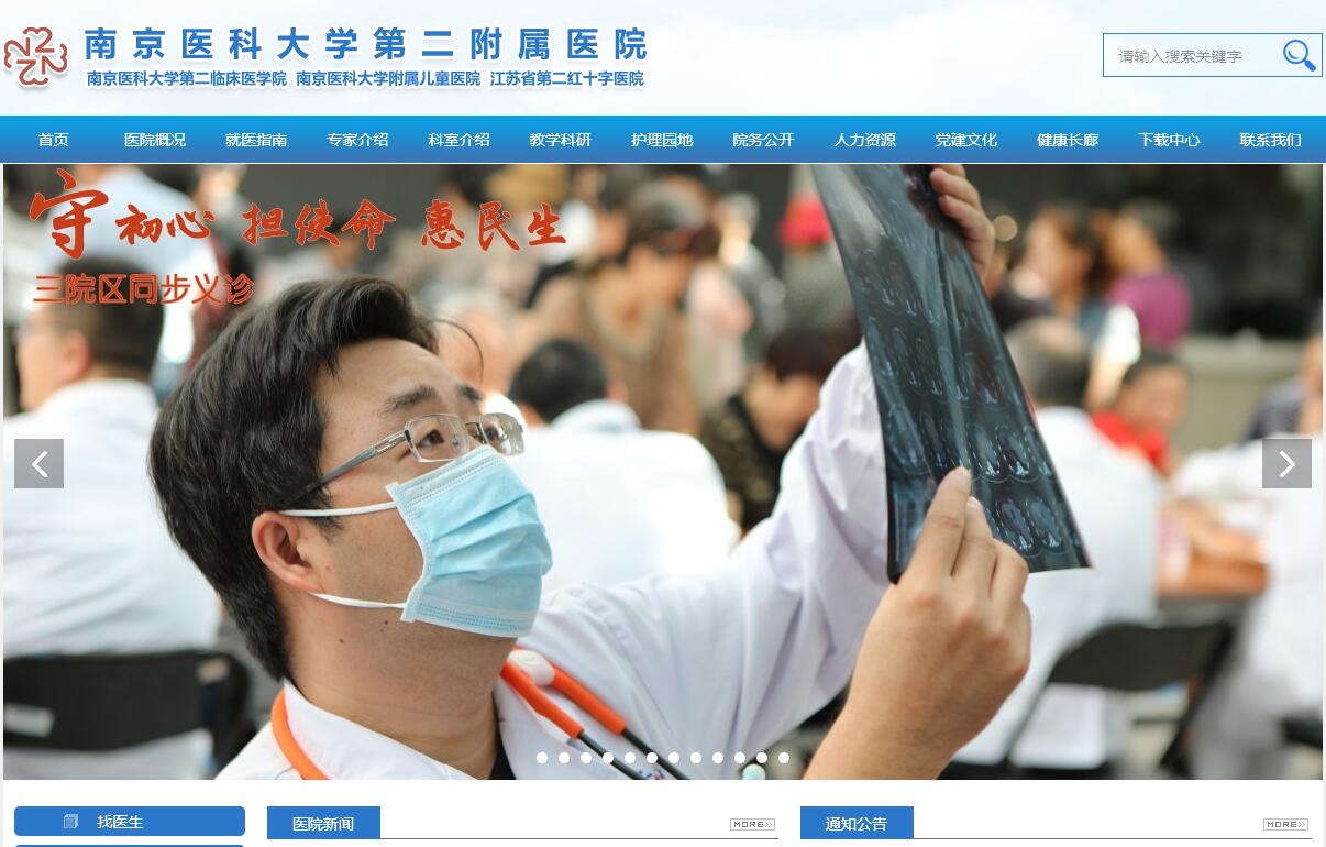 南京醫(yī)科大學(xué)第二附屬醫(yī)院,暨江蘇省第二紅十字醫(yī)院、南京醫(yī)科大學(xué)第二臨床醫(yī)學(xué)院,創(chuàng)建于1951年,至今已有68年歷史。醫(yī)院是江蘇省衛(wèi)生計生委直屬的三級甲等綜合醫(yī)院,擔(dān)負著醫(yī)療、教學(xué)、科研、公益等重要任務(wù)。醫(yī)院有兩個院區(qū)(姜家園院區(qū)和薩家灣院區(qū)),占地面積共58畝,建筑面積9萬平方米,固定資產(chǎn)8.45億元,其中專業(yè)設(shè)備5.26億元;編制床位數(shù)1600張,實際開放床位數(shù)1520張,開放病區(qū)45個,職工2300余人。醫(yī)院年門急診量約130萬人次,年出院病人數(shù)約6萬人次,手術(shù)量約2.6萬臺次?,F(xiàn)有臨床科室37個,其中省級臨床重點???5個(含建設(shè)單位),分別為消化內(nèi)科、小兒內(nèi)科、腎臟內(nèi)科、婦產(chǎn)科、老年醫(yī)學(xué)科、神經(jīng)內(nèi)科、內(nèi)分泌科、腫瘤科、泌尿外科、眼科、耳鼻咽喉科、心血管內(nèi)科、普外科(建設(shè)單位)、醫(yī)學(xué)影像科(建設(shè)單位)、呼吸內(nèi)科(建設(shè)單位)。消化醫(yī)學(xué)中心和腎臟病中心為江蘇省“十三五科教強衛(wèi)工程”醫(yī)學(xué)重點學(xué)科,并且兩個科室都進入《2018年中國醫(yī)院科技值(STEM)排行榜》百強。醫(yī)院還是國家衛(wèi)生計生委(原衛(wèi)生部)全科醫(yī)師培訓(xùn)基地、消化內(nèi)鏡診療培訓(xùn)基地、婦科四級腔鏡診療培訓(xùn)基地、臨床藥師培訓(xùn)基地、住院醫(yī)師規(guī)范化培訓(xùn)基地(24個專業(yè))。醫(yī)院現(xiàn)有醫(yī)技科室10個,能夠滿足全身各個器官的診斷,開展各種類型的化驗診斷。醫(yī)院擁有一大批高層次人次,其中高級職稱412人,享受政府特殊津貼專家7人,省突出貢獻中青年專家2人,省雙創(chuàng)團隊1個,省雙創(chuàng)人才2人,省特聘教授、醫(yī)學(xué)專家6人,“333工程”第二層次培養(yǎng)對象5人、第三層次培養(yǎng)對象38人,省“六大人才高峰”培養(yǎng)對象46人,省衛(wèi)計委“十三五科教強衛(wèi)工程”醫(yī)學(xué)創(chuàng)新團隊4個、醫(yī)學(xué)重點人才5人、青年醫(yī)學(xué)人才19人。醫(yī)院是國家藥監(jiān)總局和國家衛(wèi)生計生委批準的國家藥物臨床試驗機構(gòu)(藥物臨床試驗專業(yè)12個)。醫(yī)院有南京醫(yī)科大學(xué)校級重點實驗室3個(腎臟病學(xué)、整合腸病學(xué)、衰老與相關(guān)疾病研究)。近三年,醫(yī)院共獲得科研項目239項,其中省級以上課題57項,國家自然科學(xué)基金32項;發(fā)表SCI論文320篇;獲得中華醫(yī)學(xué)科技獎三等獎1項,江蘇省科學(xué)技術(shù)二等獎1項、三等獎1項,江蘇醫(yī)學(xué)科技獎1項,江蘇省婦幼健康引進新技術(shù)獎1項,江蘇省教育教學(xué)與研究成果獎1項,江蘇省醫(yī)學(xué)新技術(shù)引進獎9項,江蘇中醫(yī)藥科技獎1項,江蘇省腫瘤醫(yī)學(xué)科技獎一等獎1項,南京市政府科技進步二等獎1項。兒科學(xué)(16位)、腎臟病學(xué)(21位)、心血管病學(xué)(57位)、消化病學(xué)(61位)、呼吸病學(xué)(75位)、普通外科學(xué)(84位)、腫瘤學(xué)(89位)入圍2017年度《中國醫(yī)院科技影響力排行榜》專科全國百強。2018年度Nature Index發(fā)布的自然指數(shù)排行榜第45位。作為南京醫(yī)科大學(xué)直屬的附屬醫(yī)院、南京醫(yī)科大學(xué)第二臨床醫(yī)學(xué)院,醫(yī)院有4個學(xué)系、11個教研室,擁有教授18位、副教授52位、博士生導(dǎo)師22位、碩士生導(dǎo)師95位。目前在院學(xué)習(xí)的本科生和研究生(含博士)600余人,年理論課時數(shù)4000余學(xué)時。醫(yī)院始終秉承“敬佑生命、救死扶傷、甘于奉獻、大愛無疆”的醫(yī)院精神,踐行“至精至誠、至善至愛”的宗旨,堅持“以病人為中心”,深化醫(yī)改、內(nèi)抓質(zhì)量、外樹形象,不斷提升醫(yī)療服務(wù)、教育教學(xué)、科學(xué)研究、文化傳承與創(chuàng)新的能力,努力打造一所“國內(nèi)知名、省內(nèi)一流、百姓信賴”的大型綜合醫(yī)院,為“健康江蘇”“健康中國”貢獻力量。