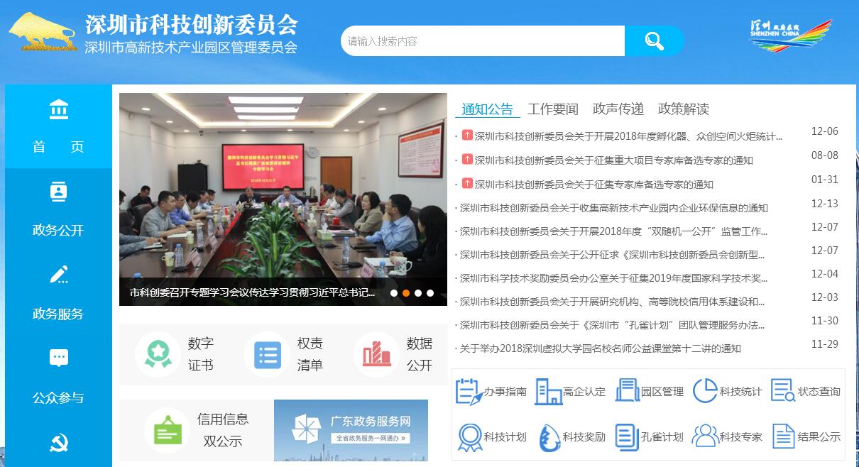 深圳市科技創(chuàng)新委員會主要職責:(一)貫徹執(zhí)行國家、省、市有關科學技術、高新技術產業(yè)園區(qū)管理工作的法律、法規(guī)、規(guī)章和方針政策,研究起草相關地方性法規(guī)、規(guī)章和政策;組織擬訂全市科技發(fā)展戰(zhàn)略、全市科技創(chuàng)新發(fā)展中長期規(guī)劃,編制高新區(qū)總體發(fā)展規(guī)劃、產業(yè)發(fā)展規(guī)劃,經批準后組織實施。(二)研究提出本市科技體制改革的政策和措施;規(guī)劃并指導建立全市科技創(chuàng)新體系,提高我市科技創(chuàng)新能力,推動完善以企業(yè)為主體的技術創(chuàng)新體系;參與推進國家創(chuàng)新型城市建設。(三)負責統(tǒng)籌協(xié)調基礎研究、前沿技術研究、重大社會公益性技術研究及關鍵技術、共性技術研究;牽頭組織經濟社會發(fā)展重要領域的重大關鍵技術、共性技術攻關;會同有關部門組織科技重大專項的實施工作。(四)按有關規(guī)定負責科技和高新園區(qū)領域內的專項資金、專項基金的申報、管理和使用;歸口申報并組織實施國家、省下達的科技計劃,制定本市科技計劃并組織實施。(五)促進高新技術企業(yè)的發(fā)展,負責高新技術企業(yè)認定工作;指導高新技術產業(yè)化及應用技術的開發(fā)與推廣,指導科技企業(yè)孵化器、科技示范推廣基地的建設和管理,促進科技成果轉化;參與推動相關戰(zhàn)略性新興產業(yè)的發(fā)展。(六)協(xié)同有關部門擬訂引進技術的消化吸收和國產化計劃;按規(guī)定參與重大技術引進項目的立項會審和重大技術改造項目的立項審定工作。(七)歸口管理科技成果、科技獎勵、技術市場等工作;指導科技服務業(yè)和科技中介機構發(fā)展,建立完善科技服務體系和科技信用體系;促進科技和金融結合。(八)研究科技人才資源的合理配置,參與擬訂科技人才隊伍建設的總體規(guī)劃、政策和措施,配合有關部門管理市優(yōu)秀科技人才。(九)負責對外科技交流與合作、宣傳推廣、信息統(tǒng)計等工作。(十)指導、協(xié)調高新技術產業(yè)園區(qū)、科技創(chuàng)新園區(qū)的管理和服務工作。(十一)承辦市政府和上級部門交辦的其他事項。