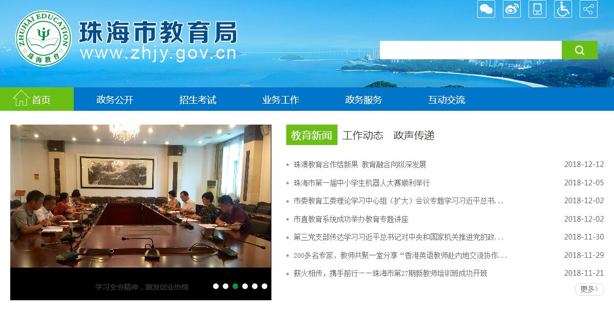 珠海市教育局主要職責:(一)貫徹執(zhí)行國家、省、市教育方面的法律、法規(guī)和政策,起草相關(guān)地方性法規(guī)、規(guī)章和政策,擬訂教育改革和發(fā)展規(guī)劃及年度計劃,經(jīng)批準后組織實施。會同有關(guān)部門規(guī)劃、指導各級各類學校布局調(diào)整,負責教育事業(yè)相關(guān)數(shù)據(jù)的統(tǒng)計、分析和發(fā)布。(二)承擔推進義務(wù)教育均衡發(fā)展和促進教育公平的責任;承擔綜合管理學前教育、義務(wù)教育、普通高中教育、職業(yè)教育、成人教育、高等教育和特殊教育職責;促進民辦教育發(fā)展;推進基礎(chǔ)教育教學改革,全面實施素質(zhì)教育。(三)負責制定各級各類教育招生考試計劃并組織實施,管理、指導各類教育招生考試工作。(四)組織實施教師資格制度,指導各級各類學校教師和教育行政干部隊伍建設(shè)工作,指導教育系統(tǒng)人事制度改革等工作;負責中小學、幼兒園教師的繼續(xù)教育和培訓工作。(五)承擔教育經(jīng)費的管理職責;會同有關(guān)部門擬訂籌措教育經(jīng)費、教育撥款、教育基建投資、教育收費的政策,指導檢查教育系統(tǒng)內(nèi)部審計工作。(六)牽頭負責監(jiān)督檢查各區(qū)和各級各類學校貫徹執(zhí)行教育法律法規(guī)和方針政策的情況,負責督政、督學工作;負責教育評估工作,對全市教育質(zhì)量和辦學水平進行檢查、監(jiān)測。(七)指導各級各類學校教育教學研究和改革、課程建設(shè)和教材建設(shè),規(guī)劃、指導教育信息化工作,指導學校教育技術(shù)裝備等設(shè)施建設(shè),組織審定地方教材、指導中小學選擇教學用書及資料,參與協(xié)調(diào)教育系統(tǒng)學?;窘ㄔO(shè)工作。(八)承擔指導監(jiān)督學校安全管理責任;指導各級各類學校的思想政治工作、德育工作、法制教育、體育衛(wèi)生與藝術(shù)教育、國防教育和宣傳工作,配合普通話推廣和文字規(guī)范工作。(九)指導各類學校后勤規(guī)范化管理工作;規(guī)劃、指導和協(xié)調(diào)教育系統(tǒng)的科研、科普工作;開展對外教育交流與合作。(十)指導學校基層黨建工作,負責市直屬學校和黨建屬地管理的高?;鶎狱h建工作,指導學校領(lǐng)導班子建設(shè)、黨的基層組織建設(shè)、黨員教育管理和統(tǒng)戰(zhàn)工作。(十一)承辦市委、市政府和上級部門交辦的其他事項。