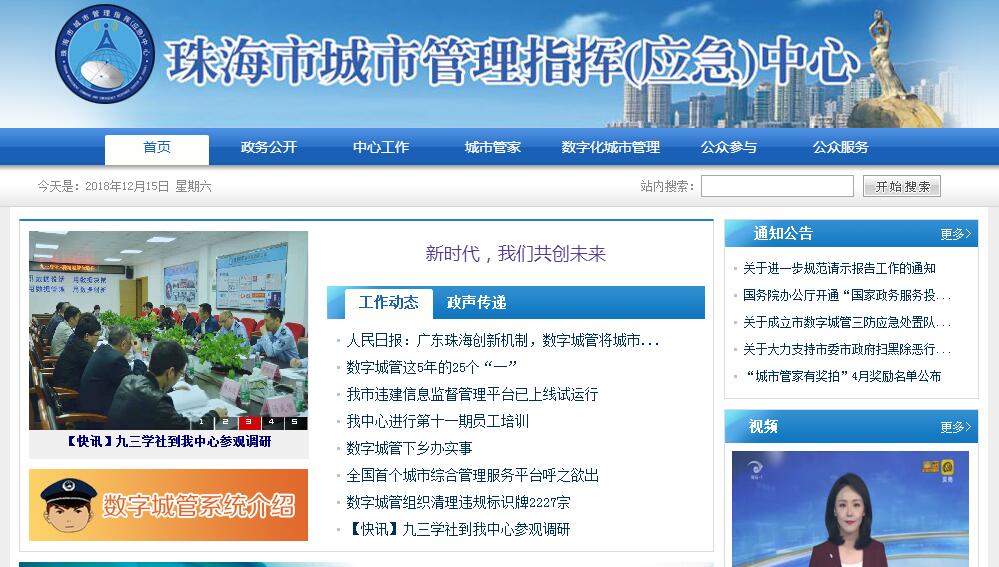 珠海數(shù)字城管于2014年1月完成重組,為副處級獨立法人單位,下設(shè)辦公室、指揮室、監(jiān)察室、建設(shè)技術(shù)室、財務(wù)裝備室、政策法規(guī)室和巡查支隊,現(xiàn)有192人,對六個區(qū)級指揮中心實行雙重管理。本中心隸屬于珠海市城市管理委員會,市政府將其定位為珠海城市管理的指揮員、監(jiān)督員和裁判員,具體負責(zé)珠海數(shù)字城管的建設(shè)、運行和管理,負責(zé)全市城市治理的指揮協(xié)調(diào)、應(yīng)急處置和綜合評價。珠?!皵?shù)字城管”是珠海唯一的全市性的、綜合性的信息化平臺,主要由一個中心、三大主軸、五支隊伍構(gòu)成。一個中心是指揮中心,三大主軸是指案件巡查、任務(wù)派遣和監(jiān)督考核,五支隊伍是指案件巡查、案件受理、案件派遣、監(jiān)督檢查、綜合評價等五種崗位。珠海“數(shù)字城管”項目由市城市管理指揮中心負責(zé)建設(shè)和運行,按“大城管”框架模式規(guī)劃設(shè)計,實際總投資1.2億元,分三期建設(shè),一期開發(fā)建設(shè)了包括“全方位實時應(yīng)急指揮系統(tǒng)”在內(nèi)的12個系統(tǒng),2010年5月建成運行,范圍覆蓋珠海主城區(qū)。2014年1月,我們啟動了數(shù)字城管珠海陸地全覆蓋工程,同時建設(shè)數(shù)字城管二期和三期項目。2015年12月,數(shù)字城管二期和三期項目已全部完成,金灣區(qū)、斗門區(qū)、高新區(qū)、橫琴新區(qū)和高欄港區(qū)等七個區(qū)數(shù)字城管指揮中心先后上線運行,提前兩年實現(xiàn)全市陸地全覆蓋。