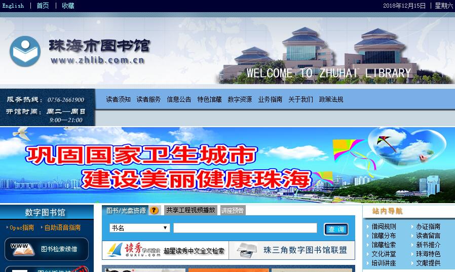 珠海市圖書館位于新香洲迎賓北路,占地面積30000平方米,建筑面積16000平方米。整體建筑集古典與現(xiàn)代于一體,環(huán)境優(yōu)美,造型獨特,富有地方特色,是一座與珠海歷史文化相呼應(yīng)、內(nèi)部功能現(xiàn)代化的公益性大型標(biāo)志性文化設(shè)施。圖書館設(shè)計藏書量200萬冊(件),讀者席位1500個,網(wǎng)絡(luò)信息點位800個。館內(nèi)設(shè)有中文圖書借閱廳、中文報刊閱覽室、外文書刊閱覽室、新報新刊閱覽室、珠海地方文獻(xiàn)閱覽室、港澳臺文獻(xiàn)閱覽室、古籍閱覽室、參考文獻(xiàn)閱覽室、展覽藝術(shù)長廊、專家研究室、信息咨詢室、自學(xué)室等傳統(tǒng)服務(wù)區(qū),同時設(shè)有多功能報告廳、電子閱覽廳、音像視聽室、培訓(xùn)室、演示廳等自動化服務(wù)區(qū),是一座集信息化、智能化、多功能于一體的現(xiàn)代化圖書館。寬敞明亮的大堂,安靜舒適的閱讀室,豐富繁多的圖書種類,功能齊全的設(shè)施,為方便讀者和完善圖書館服務(wù)功能,還設(shè)立了購書中心、商務(wù)中心、書吧、餐廳等配套服務(wù)設(shè)施,為讀者營造休閑、舒適、溫馨的良好學(xué)習(xí)環(huán)境。珠海市圖書館是我市“三個文明”建設(shè)的重要窗口,它以嶄新的姿態(tài),以多角度、全方位的方式為廣大讀者提供高質(zhì)量、高水平的信息資源服務(wù),成為全市的知識資源集散中心、市民終身學(xué)習(xí)教育和文化休閑的理想場所。