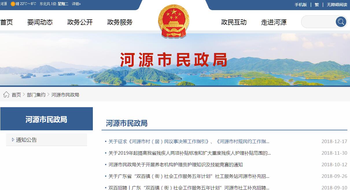河源市民政局要職責(zé):(一)貫徹執(zhí)行國(guó)家、省有關(guān)民政工作的方針政策和法律法規(guī),起草有關(guān)文件草案,并組織實(shí)施和監(jiān)督檢查。擬訂民政事業(yè)和民政系統(tǒng)的社會(huì)工作發(fā)展規(guī)劃,推進(jìn)民政事業(yè)發(fā)展和民政系統(tǒng)社會(huì)工作人才隊(duì)伍建設(shè)和相關(guān)志愿者隊(duì)伍建設(shè)。(二)負(fù)責(zé)退役士兵、復(fù)員干部的接收安置工作和軍隊(duì)移交地方管理的離退休干部、退休士官和軍隊(duì)無軍籍退休退職職工的接收安置、服務(wù)管理工作;負(fù)責(zé)撫恤優(yōu)待、評(píng)殘?jiān)u烈、殘疾軍人安置、烈士褒揚(yáng)和犧牲病故部隊(duì)干部的家屬安置工作;組織和協(xié)調(diào)擁軍優(yōu)屬工作。(三)負(fù)責(zé)組織、協(xié)調(diào)城鄉(xiāng)救災(zāi)工作,組織自然災(zāi)害救助應(yīng)急體系建設(shè),負(fù)責(zé)組織核查并統(tǒng)一發(fā)布災(zāi)情,管理、分配和監(jiān)督市級(jí)救災(zāi)款物。(四)負(fù)責(zé)城鄉(xiāng)居民最低生活保障、醫(yī)療救助、臨時(shí)救助、流浪乞討及生活無著人員救助工作,健全城鄉(xiāng)社會(huì)救助體系;指導(dǎo)農(nóng)村五保戶供養(yǎng)、敬老院建設(shè)工作。(五)負(fù)責(zé)全市鎮(zhèn)(鄉(xiāng))以上行政區(qū)域的設(shè)立、撤銷、調(diào)整、更名、界線變更以及政府駐地遷移的審核報(bào)批工作,負(fù)責(zé)市際行政區(qū)域界線的勘定和管理,負(fù)責(zé)邊界爭(zhēng)議的調(diào)處事務(wù),組織編制地名規(guī)劃,負(fù)責(zé)地名命名、更名、銷名審核工作,規(guī)范地名標(biāo)志設(shè)置和管理工作。(六)提出加強(qiáng)和改進(jìn)城鄉(xiāng)基層政權(quán)建設(shè)的建議,推動(dòng)基層民主政治建設(shè),指導(dǎo)城鄉(xiāng)基層群眾自治組織建設(shè)、城鄉(xiāng)社區(qū)建設(shè)和城鄉(xiāng)社區(qū)服務(wù)體系建設(shè)。(七)負(fù)責(zé)社會(huì)福利機(jī)構(gòu)的監(jiān)督管理,促進(jìn)慈善事業(yè)發(fā)展,指導(dǎo)社會(huì)捐助工作,指導(dǎo)老年人、孤兒和殘疾人等特殊群體權(quán)益保障工作。(八)負(fù)責(zé)推進(jìn)婚俗和殯葬改革,負(fù)責(zé)收養(yǎng)登記管理工作,指導(dǎo)婚姻、殯葬、收養(yǎng)、救助服務(wù)機(jī)構(gòu)管理工作。(九)負(fù)責(zé)依法對(duì)社會(huì)團(tuán)體、基金會(huì)、民辦非企業(yè)單位進(jìn)行登記管理和監(jiān)察的責(zé)任,查處非法社會(huì)組織和社會(huì)組織的非法活動(dòng)。(十)負(fù)責(zé)市老齡委員會(huì)日常工作。(十一)負(fù)責(zé)管理福利彩票銷售工作,負(fù)責(zé)管理、使用、發(fā)放福利資金和民政事業(yè)費(fèi)。(十二)承辦市人民政府和上級(jí)民政部門交辦的其他事項(xiàng)。