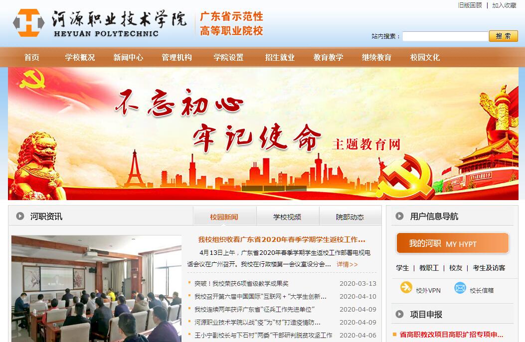 河源職業(yè)技術(shù)學(xué)院是一所由河源市人民政府舉辦的全日制普通高等學(xué)校,位于廣東省河源市江東新區(qū)。學(xué)校背靠梧桐山,面向東江河,緊依東環(huán)路,風(fēng)光旖旎,交通便利。學(xué)校占地面積1500畝,總建筑面積27.7萬平方米,校園內(nèi)教學(xué)大樓、老隆師范紀(jì)念樓、學(xué)生公寓、師生飯?zhí)?、圖書館、實(shí)訓(xùn)中心、學(xué)術(shù)交流中心、體育館等基礎(chǔ)設(shè)施一應(yīng)俱全;薈萃湖、賢能廣場、蕭殷廣場、銘德榕、桃李園、雙馨園、書香園等人文景點(diǎn)蘊(yùn)寓豐富的文化內(nèi)涵。得天獨(dú)厚的地理位置和優(yōu)美的校園環(huán)境,使學(xué)校成為莘莘學(xué)子求學(xué)修身、磨煉技能的理想場所。學(xué)校2001年由原廣東老隆師范學(xué)校升格成立,2004年整體搬遷至河源市區(qū)辦學(xué),2007年底通過教育部高職高專人才培養(yǎng)工作水平評估,2010年成為全省15所中高職對口自主招生的職業(yè)院校之一,2011年成為全省三二分段招生試點(diǎn)院校之一,2012年被確定為廣東省示范性高等職業(yè)院校培育建設(shè)立項(xiàng)單位,2013年正式成為第二批廣東省示范性高等職業(yè)院校立項(xiàng)建設(shè)單位。學(xué)校有全日制大專在校生12070人,教職工731人,其中專任教師546人,其中副高以上職稱160人,博士、碩士共361人,雙師素質(zhì)教師477人。學(xué)校下設(shè)機(jī)電工程學(xué)院、電子與信息工程學(xué)院、工商管理學(xué)院、藝術(shù)與設(shè)計(jì)學(xué)院、人文學(xué)院、繼續(xù)教育學(xué)院、思想政治理論教學(xué)部等7個(gè)教學(xué)院部;設(shè)有應(yīng)用電子技術(shù)、模具設(shè)計(jì)與制造、旅游管理、服裝設(shè)計(jì)、文秘、英語教育、音樂表演等48個(gè)專業(yè);建有35個(gè)校內(nèi)實(shí)習(xí)基地,校外實(shí)習(xí)基地488個(gè);現(xiàn)有教學(xué)儀器設(shè)備總值1.2億元,圖書館紙質(zhì)藏書108.94萬冊。學(xué)校堅(jiān)持黨的領(lǐng)導(dǎo)不動(dòng)搖,堅(jiān)持“省內(nèi)一流、國內(nèi)領(lǐng)先”目標(biāo)不動(dòng)搖,堅(jiān)持教育教學(xué)改革不動(dòng)搖,堅(jiān)持“規(guī)則意識、責(zé)任良知”不動(dòng)搖,積極探索政、行、企、校“四方聯(lián)動(dòng)”辦學(xué)體制機(jī)制,創(chuàng)新產(chǎn)教融合、校企合作人才培養(yǎng)模式,推進(jìn)“教學(xué)做一體化”教學(xué)改革,將學(xué)校教學(xué)過程與企業(yè)生產(chǎn)過程緊密結(jié)合,突出教學(xué)的“行動(dòng)導(dǎo)向、項(xiàng)目載體、能力本位、做學(xué)一體”,切實(shí)提高學(xué)生的專業(yè)知識、技能水平和崗位適應(yīng)能力。同時(shí),學(xué)校強(qiáng)調(diào)人文素質(zhì)教育,積極構(gòu)建融“教書育人、管理育人、服務(wù)育人、環(huán)境育人”于一體的“文化育人”體系,突出大學(xué)生人文精神與科學(xué)精神的同步發(fā)展,努力提高大學(xué)生的綜合素質(zhì)。經(jīng)過長期努力,學(xué)校的教育教學(xué)改革取得優(yōu)異成績,擁有中央財(cái)政支持實(shí)訓(xùn)基地2個(gè),省財(cái)政支持實(shí)訓(xùn)基地3個(gè);擁有中央財(cái)政支持“高等職業(yè)院校提升專業(yè)服務(wù)產(chǎn)業(yè)發(fā)展能力項(xiàng)目”專業(yè)2個(gè),省級示范性專業(yè)2個(gè),省級重點(diǎn)專業(yè)5個(gè),省級特色專業(yè)3個(gè),省級現(xiàn)代學(xué)徒制試點(diǎn)專業(yè)3個(gè)、國家級現(xiàn)代學(xué)徒制試點(diǎn)3個(gè)。建有1門國家級精品課程,12門省級精品課程,5門國家教指委精品課程。在2017年全國技能大賽中共有25位參賽學(xué)生獲獎(jiǎng),據(jù)“聚焦職教”微信公眾平臺公布的統(tǒng)計(jì)數(shù)據(jù)顯示,我校獲獎(jiǎng)數(shù)量位居全國第14位,居全省第2位;2018年又獲得全國職業(yè)院校技能大賽一等獎(jiǎng)1項(xiàng)、二等獎(jiǎng)4項(xiàng),獲獎(jiǎng)數(shù)量和質(zhì)量在全省同類院校中名列前茅。學(xué)??茖W(xué)研究和社會(huì)服務(wù)能力日益增強(qiáng),科研成果數(shù)量質(zhì)量穩(wěn)步提升。近五年來,獲省級工程技術(shù)研究中心5個(gè)、省級農(nóng)業(yè)科技創(chuàng)新中心1個(gè)、省級科技創(chuàng)新基地3個(gè),市級工程技術(shù)研究中心10個(gè)、市級農(nóng)業(yè)科技創(chuàng)新中心1個(gè)、市級技術(shù)應(yīng)用研究院2個(gè)、市技師工作室5個(gè);獲立項(xiàng)的市級以上縱向科研項(xiàng)目340項(xiàng)(其中省級以上項(xiàng)目93項(xiàng)),科研經(jīng)費(fèi)到款730萬元;獲廣東省科技廳科技計(jì)劃項(xiàng)目立項(xiàng)4項(xiàng),河源市重大科技專項(xiàng)3項(xiàng);獲廣東省教育教學(xué)成果獎(jiǎng)一等獎(jiǎng)1項(xiàng)、二等獎(jiǎng)3項(xiàng),出版專著、教材112部,獲國家專利授權(quán)120項(xiàng)。學(xué)校建立了科技特派員常態(tài)化工作機(jī)制,與河源市“五縣二區(qū)”產(chǎn)業(yè)園區(qū)和科技部門實(shí)施“戰(zhàn)略合作”,助力河源市支柱產(chǎn)業(yè)、戰(zhàn)略性新興產(chǎn)業(yè)的創(chuàng)新驅(qū)動(dòng)發(fā)展。近五年來,派出科技特派員145人次,服務(wù)企事業(yè)單位120多家,橫向技術(shù)服務(wù)到款額708萬元。學(xué)校近年畢業(yè)生總體就業(yè)率達(