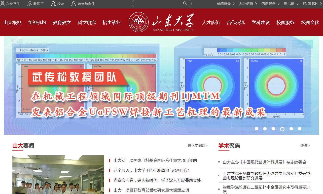 山東大學(xué)是一所歷史悠久、學(xué)科齊全、學(xué)術(shù)實(shí)力雄厚、辦學(xué)特色鮮明,在國(guó)內(nèi)外具有重要影響的教育部直屬重點(diǎn)綜合性大學(xué),是世界一流大學(xué)建設(shè)高校(A類)。山東大學(xué)是中國(guó)近代高等教育的起源性大學(xué)。其醫(yī)學(xué)學(xué)科起源于1864年,開啟近代中國(guó)高等醫(yī)學(xué)教育之先河。其主體是1901年創(chuàng)辦的山東大學(xué)堂,是繼京師大學(xué)堂之后中國(guó)創(chuàng)辦的第二所國(guó)立大學(xué),也是中國(guó)第一所按章程辦學(xué)的大學(xué)。從誕生起,學(xué)校先后歷經(jīng)了山東大學(xué)堂、國(guó)立青島大學(xué)、國(guó)立山東大學(xué)、山東大學(xué)以及由原山東大學(xué)、山東醫(yī)科大學(xué)、山東工業(yè)大學(xué)三校合并組建的新山東大學(xué)等幾個(gè)歷史發(fā)展時(shí)期。百余年間,山東大學(xué)秉承“為天下儲(chǔ)人才,為國(guó)家圖富強(qiáng)”的辦學(xué)宗旨,踐行“學(xué)無(wú)止境,氣有浩然”的校訓(xùn),踔厲奮發(fā),薪火相傳,形成了“崇實(shí)求新”的校風(fēng),為國(guó)家和社會(huì)培養(yǎng)了40余萬(wàn)各類人才,為國(guó)家和區(qū)域經(jīng)濟(jì)社會(huì)發(fā)展做出了重要貢獻(xiàn)。近年來(lái)山東大學(xué)實(shí)現(xiàn)了跨越式發(fā)展,各項(xiàng)事業(yè)均達(dá)到了前所未有的高度。學(xué)校的綜合水平和辦學(xué)質(zhì)量明顯提升,國(guó)際影響力顯著增強(qiáng),目前有15個(gè)學(xué)科的學(xué)術(shù)影響力和貢獻(xiàn)能力進(jìn)入ESI世界排名前1%,與30多個(gè)國(guó)家和地區(qū)的近170所學(xué)校簽署了校際合作協(xié)議。學(xué)校規(guī)模宏大,實(shí)力雄厚??傉嫉孛娣e8000余畝(含青島校區(qū)約3000畝), 形成了一校三地(濟(jì)南、威海、青島)八個(gè)校園(濟(jì)南中心校區(qū)、洪家樓校區(qū)、趵突泉校區(qū)、千佛山校區(qū)、軟件園校區(qū)、興隆山校區(qū)及威海校區(qū)、青島校區(qū))的辦學(xué)格局。現(xiàn)有4所附屬醫(yī)院,3所非隸屬附屬醫(yī)院,11所教學(xué)、實(shí)習(xí)醫(yī)院。擁有在職教職工7493人(不含附屬醫(yī)院)。各類全日制學(xué)生達(dá)6萬(wàn)人,其中,全日制本科生40789人,研究生18816人,留學(xué)生3791人。學(xué)校匯聚了一批杰出人才,共有教授1246人,博士生導(dǎo)師897人。其中,諾貝爾物理學(xué)獎(jiǎng)獲得者Peter Grünberg受聘為特聘教授,研究生導(dǎo)師莫言教授榮獲2012年諾貝爾文學(xué)獎(jiǎng)。學(xué)?,F(xiàn)有中國(guó)科學(xué)院和工程院院士7人,雙聘院士63人,終身教授9人,人文社科一級(jí)教授16人;“千人計(jì)劃”國(guó)家特聘教授33人、“青年千人計(jì)劃”入選者33人;“長(zhǎng)江學(xué)者獎(jiǎng)勵(lì)計(jì)劃”特聘教授30人、講座教授15人、青年項(xiàng)目入選者3人;國(guó)家杰出青年科學(xué)基金獲得者37人、優(yōu)秀青年科學(xué)基金獲得者22人;“萬(wàn)人計(jì)劃”領(lǐng)軍人才15人、教學(xué)名師5人、青年拔尖人才10人;國(guó)家百千萬(wàn)人才工程入選者29人;泰山學(xué)者攀登計(jì)劃入選者9人、泰山學(xué)者特聘教授(專家)108人、泰山學(xué)者青年專家18人。學(xué)校擁有精良的教學(xué)科研平臺(tái),有一級(jí)學(xué)科國(guó)家重點(diǎn)學(xué)科2個(gè)(涵蓋8個(gè)二級(jí)學(xué)科)、二級(jí)學(xué)科國(guó)家重點(diǎn)學(xué)科14個(gè)、二級(jí)學(xué)科國(guó)家重點(diǎn)培育學(xué)科3個(gè),省級(jí)重點(diǎn)學(xué)科70個(gè),覆蓋文、理、工、醫(yī)四大學(xué)科領(lǐng)域,實(shí)現(xiàn)了各學(xué)科的協(xié)調(diào)發(fā)展;有國(guó)家重點(diǎn)實(shí)驗(yàn)室、國(guó)家工程技術(shù)研究中心、國(guó)家工程實(shí)驗(yàn)室、國(guó)家工程技術(shù)推廣中心等國(guó)家級(jí)科研平臺(tái)7個(gè),國(guó)家“111創(chuàng)新引智計(jì)劃項(xiàng)目”6項(xiàng),國(guó)家級(jí)人才培養(yǎng)基地6個(gè),教育部人文社會(huì)科學(xué)重點(diǎn)研究基地4個(gè),教育部、衛(wèi)生部重點(diǎn)實(shí)驗(yàn)室及工程技術(shù)研究中心21個(gè),另有大批省級(jí)重點(diǎn)實(shí)驗(yàn)室和工程技術(shù)研究中心。山東大學(xué)是中國(guó)目前學(xué)科門類最齊全的大學(xué)之一,在綜合性大學(xué)中具有代表性。本科生和研究生層次教育涉及哲學(xué)、經(jīng)濟(jì)學(xué)、法學(xué)、教育學(xué)、文學(xué)、歷史學(xué)、理學(xué)、工學(xué)、農(nóng)學(xué)、醫(yī)學(xué)、管理學(xué)、藝術(shù)學(xué)等12大學(xué)科門類。擁有一級(jí)學(xué)科博士學(xué)位授權(quán)點(diǎn)44個(gè),一級(jí)學(xué)科碩士學(xué)位授權(quán)點(diǎn)55個(gè),專業(yè)學(xué)位博士點(diǎn)3個(gè),專業(yè)學(xué)位碩士點(diǎn)27個(gè),本科專業(yè)117個(gè),博士后科研流動(dòng)站41個(gè),形成了結(jié)構(gòu)完整、實(shí)力雄厚、獨(dú)具特色的人才培養(yǎng)體系。在歷史發(fā)展中,山東大學(xué)形成了自己的學(xué)科優(yōu)勢(shì)和特色。特別是經(jīng)過20世紀(jì)30年代和50年代在青島辦學(xué)時(shí)期的輝煌與發(fā)展,奠定了“文史見長(zhǎng)”的學(xué)術(shù)特色,出現(xiàn)了一批在國(guó)內(nèi)外享譽(yù)甚高