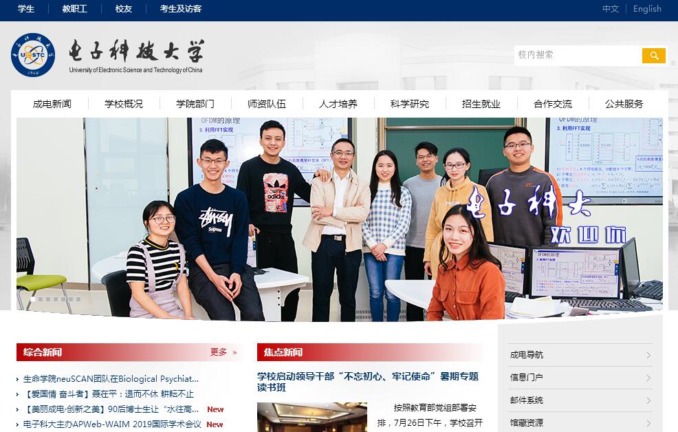 電子科技大學(xué)坐落于四川省成都市,原名成都電訊工程學(xué)院,是1956年在周恩來總理的親自部署下,由交通大學(xué)(現(xiàn)上海交通大學(xué)、西安交通大學(xué))、南京工學(xué)院(現(xiàn)東南大學(xué))、華南工學(xué)院(現(xiàn)華南理工大學(xué))的電訊工程有關(guān)專業(yè)合并創(chuàng)建而成。學(xué)校1960年被中共中央列為全國重點(diǎn)高等學(xué)校,1961年被中共中央確定為七所國防工業(yè)院校之一,1988年更名為電子科技大學(xué),1997年被確定為國家首批“211工程”建設(shè)的重點(diǎn)大學(xué),2000年由原信息產(chǎn)業(yè)部主管劃轉(zhuǎn)為教育部主管,2001年進(jìn)入國家“985工程”重點(diǎn)建設(shè)大學(xué)行列,2017年進(jìn)入國家建設(shè)“世界一流大學(xué)”A類高校行列。經(jīng)過60余年的建設(shè),學(xué)校形成了從本科到碩士研究生、博士研究生等多層次、多類型的人才培養(yǎng)格局,成為一所完整覆蓋整個(gè)電子類學(xué)科,以電子信息科學(xué)技術(shù)為核心,以工為主,理工滲透,理、工、管、文、醫(yī)協(xié)調(diào)發(fā)展的多科性研究型大學(xué)。學(xué)校設(shè)有清水河、沙河、九里堤三個(gè)校區(qū),占地面積4100余畝,擁有館藏豐富的現(xiàn)代化數(shù)字圖書館和一批設(shè)施齊備的現(xiàn)代化體育場(chǎng)館。校園四季樹木蔥蘢、湖水碧波蕩漾、建筑典雅厚重,是陶冶情操、讀書治學(xué)的佳境。學(xué)校致力于培養(yǎng)基礎(chǔ)知識(shí)厚、專業(yè)能力強(qiáng)、綜合素質(zhì)高、具有國際視野、社會(huì)責(zé)任感和健全人格的拔尖創(chuàng)新人才,培育引領(lǐng)未來學(xué)術(shù)前沿和社會(huì)經(jīng)濟(jì)發(fā)展的學(xué)術(shù)精英和行業(yè)精英。學(xué)校設(shè)有23個(gè)學(xué)院(部),66個(gè)本科專業(yè),其中14個(gè)為國家級(jí)特色專業(yè)建設(shè)點(diǎn),現(xiàn)有各類全日制在讀學(xué)生33000余人,其中博士、碩士研究生12000余人。學(xué)生就業(yè)率一直保持在96%以上,本科生國內(nèi)外深造率近2/3,其中出國(境)深造率超過1/5。成電學(xué)子遍布海內(nèi)外,以素質(zhì)全面、專業(yè)知識(shí)扎實(shí)、能力強(qiáng)、后勁足等鮮明特點(diǎn)受到了社會(huì)各界和用人單位的普遍贊譽(yù)。學(xué)校鼓勵(lì)和支持學(xué)生積極參與科技創(chuàng)新、文化藝術(shù)和社會(huì)實(shí)踐活動(dòng),構(gòu)建了“普惠性”學(xué)生科技創(chuàng)新體系。學(xué)生活躍在中國“互聯(lián)網(wǎng)+”大學(xué)生創(chuàng)新創(chuàng)業(yè)大賽、“挑戰(zhàn)杯”全國大學(xué)生課外學(xué)術(shù)科技作品競(jìng)賽、“創(chuàng)青春”全國大學(xué)生創(chuàng)業(yè)大賽、全國大學(xué)生電子設(shè)計(jì)競(jìng)賽、全國大學(xué)生藝術(shù)比賽、美國大學(xué)生數(shù)學(xué)建模競(jìng)賽、ACM-ICPC國際大學(xué)生程序設(shè)計(jì)競(jìng)賽、國際基因工程機(jī)器大賽、國際大專辯論賽等國內(nèi)、國際各類競(jìng)賽的賽場(chǎng)上,爭(zhēng)金奪銀,成績斐然,在“中國高校創(chuàng)新人才培養(yǎng)暨學(xué)科競(jìng)賽評(píng)估”中名列前茅。學(xué)校已建成一批國家和省部級(jí)精品開放課程、精品教材,擁有國家大學(xué)生文化素質(zhì)教育基地,以及國家級(jí)教學(xué)基地、實(shí)驗(yàn)教學(xué)示范中心、虛擬仿真實(shí)驗(yàn)教學(xué)中心、工程實(shí)踐教育中心等20個(gè)國家級(jí)教育教學(xué)實(shí)踐基地和示范中心,獲得一批國家級(jí)教學(xué)成果獎(jiǎng)。學(xué)?,F(xiàn)有2個(gè)國家一級(jí)重點(diǎn)學(xué)科(所包括的6個(gè)二級(jí)學(xué)科均為國家重點(diǎn)學(xué)科)、2個(gè)國家重點(diǎn)(培育)學(xué)科;一級(jí)學(xué)科博士學(xué)位授權(quán)點(diǎn)16個(gè),一級(jí)學(xué)科碩士學(xué)位授權(quán)點(diǎn)27個(gè),具有電子與信息領(lǐng)域工程博士專業(yè)學(xué)位授予權(quán)和金融、翻譯、新聞與傳播、護(hù)理、藥學(xué)、公共管理(MPA)、工商管理(MBA)、工程碩士(含11個(gè)工程領(lǐng)域)等8種碩士專業(yè)學(xué)位授予權(quán),設(shè)有博士后流動(dòng)站13個(gè)。在第四輪全國一級(jí)學(xué)科評(píng)估中,學(xué)校4個(gè)學(xué)科獲評(píng)A類;其中電子科學(xué)與技術(shù)、信息與通信工程兩個(gè)學(xué)科為A+,A+學(xué)科數(shù)并列西部高校第一。學(xué)校工程學(xué)、材料科學(xué)、物理學(xué)、計(jì)算機(jī)科學(xué)、化學(xué)、神經(jīng)科學(xué)與行為學(xué)、生物學(xué)與生物化學(xué)7個(gè)學(xué)科進(jìn)入ESI前1%,其中工程學(xué)自2016年7月以來一直處于ESI前1‰,并已進(jìn)入世界前100名。學(xué)校以“頂天、立地、樹人”為科研工作定位,堅(jiān)持“面向世界科技前沿、面向經(jīng)濟(jì)主戰(zhàn)場(chǎng)、面向國家重大需求”,努力構(gòu)建“三足鼎立”(軍事電子科研、以國家各類基金為代表的基礎(chǔ)研究、與企業(yè)合作為主體的應(yīng)用技術(shù)研究)的科研架構(gòu),“十一五”以來科技成果獲國家級(jí)獎(jiǎng)勵(lì)22項(xiàng)、部省級(jí)獎(jiǎng)勵(lì)300項(xiàng),發(fā)表SCI/SSCI論文16000余篇,授權(quán)專利4800余項(xiàng)。學(xué)校擁有國家級(jí)重點(diǎn)實(shí)
