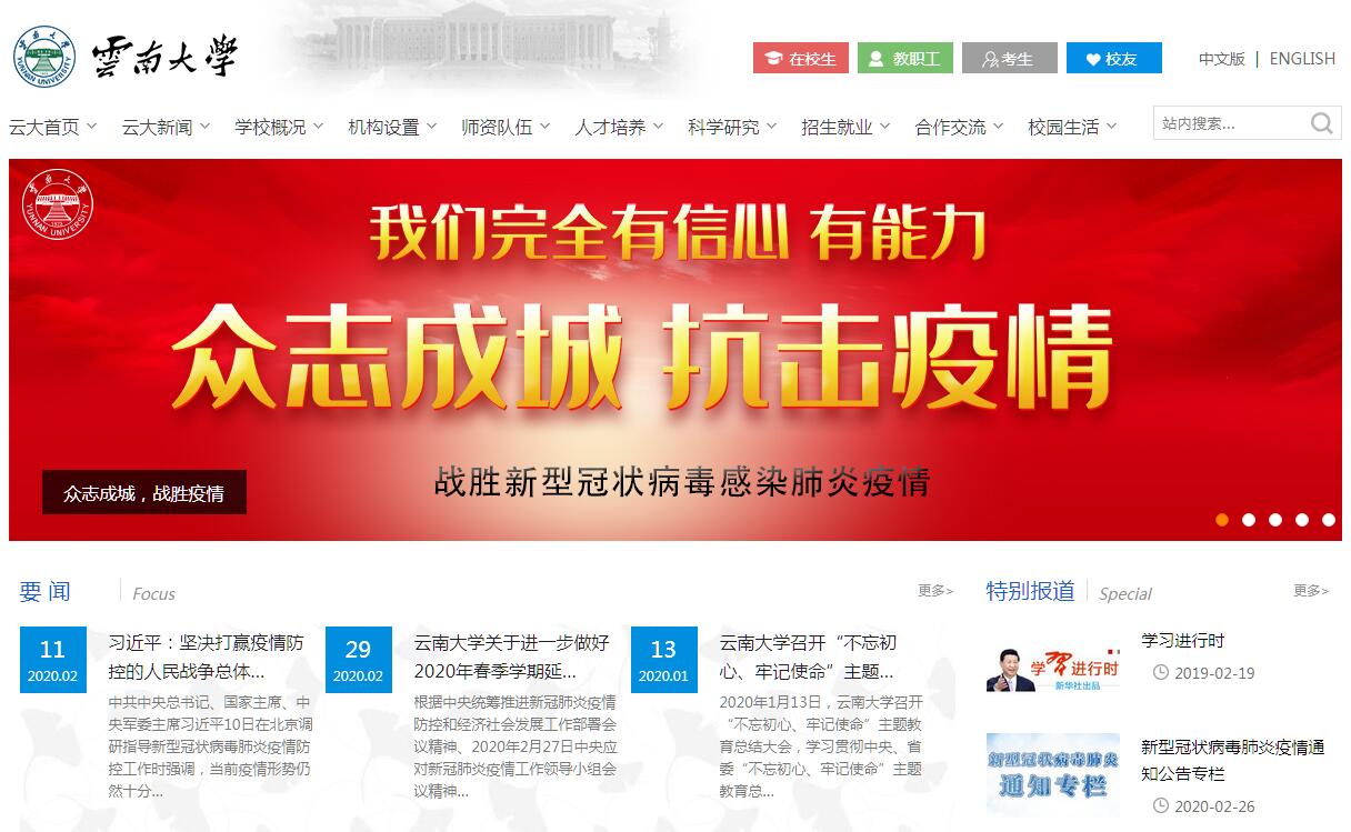 云南大學(xué)始建于1922年,時為私立東陸大學(xué),1934年更名為省立云南大學(xué),1938年改為國立云南大學(xué),是我國西部邊疆最早建立的綜合性大學(xué)之一。1937年,著名數(shù)學(xué)家、教育家熊慶來出任校長,一大批著名學(xué)者受聘到校任教,奠定了學(xué)校較高的發(fā)展基點和深厚的學(xué)術(shù)底蘊,開創(chuàng)了云大辦學(xué)歷史上的第一個輝煌時期。20世紀40年代,云南大學(xué)已發(fā)展成為一所包括文、法、理、工、農(nóng)、醫(yī)等學(xué)科在內(nèi),規(guī)模較大,在國際上有影響的中國著名大學(xué)之一。1946年,《不列顛百科全書》將云南大學(xué)列為中國15所在世界最具影響的大學(xué)之一。五十年代院系調(diào)整,部屬云南大學(xué)一些重要而有特色的系科,如航空、土木、法律、鐵道等被劃出并入當(dāng)時的北京航空學(xué)院、四川大學(xué)、西南政法學(xué)院、長沙鐵道學(xué)院等高校;工、醫(yī)、農(nóng)等先后獨立建校,并逐步發(fā)展為今天的昆明理工大學(xué)、昆明醫(yī)科大學(xué)、云南農(nóng)業(yè)大學(xué)、西南林業(yè)大學(xué)等高校。1958年,云南大學(xué)由中央高教部劃歸云南省管理。1978年,云南大學(xué)被國務(wù)院確定為全國88所重點大學(xué)之一。改革開放后,云南大學(xué)獲得了長足的進步。1996年首批列入國家“211工程”重點建設(shè)大學(xué),2001年列入西部大開發(fā)重點建設(shè)院校,2004年成為教育部和云南省人民政府重點共建高校,2006年本科教學(xué)工作水平評估共19項二級指標全部評定為A,被教育部評為本科教學(xué)優(yōu)秀學(xué)校,2012年成為國家“中西部高?;A(chǔ)能力建設(shè)工程”和“中西部高校提升綜合實力工程”實施院校,2016年成為國家“一省一?!惫こ虒嵤┰盒?,2017年成為中國首批42所“一流大學(xué)”建設(shè)高校之一,2018年躋身于中西部14所“以部為主、部省合建”高校行列。新的歷史時期,云南大學(xué)將緊緊圍繞建設(shè)世界一流大學(xué)目標,主動融入國家戰(zhàn)略,積極服務(wù)云南經(jīng)濟社會發(fā)展,遵循“開放合作、集成創(chuàng)新、協(xié)調(diào)共進、特色發(fā)展”的發(fā)展理念,按照立足云南、服務(wù)國家、輻射兩亞、走向世界的辦學(xué)思路,以“一流黨建”為引領(lǐng),以內(nèi)涵建設(shè)為重點,以體制機制改革為動力,大力實施“學(xué)術(shù)興?!睉?zhàn)略和“人才強?!睉?zhàn)略,著力推進“樹木樹人計劃”“云南大學(xué)服務(wù)云南行動計劃”,全面提升學(xué)校辦學(xué)實力和辦學(xué)水平,為區(qū)域經(jīng)濟社會發(fā)展做出貢獻。云南大學(xué)下設(shè)27個學(xué)院、14個研究機構(gòu)、1個公共課教學(xué)部及2個獨立學(xué)院,1個附屬醫(yī)院,設(shè)有研究生院。學(xué)校現(xiàn)有教職員工2965人,其中專業(yè)技術(shù)崗位2460人,具有正高職稱的445人,具有副高職稱的861人,具有博士學(xué)位1127人。學(xué)校有全日制在校本科學(xué)生16730人,碩士研究生10907人,博士研究生1024人。學(xué)校占地面積4363.64畝,分布于呈貢校區(qū)和東陸校區(qū),公用校舍建筑面積100余萬平方米;教學(xué)、科研儀器設(shè)備及信息化設(shè)備資產(chǎn)總值8.12億余元,圖書館藏書360余萬冊。學(xué)校是中國教育科研計算機網(wǎng)絡(luò)(CERNET)云南主節(jié)點單位。云南大學(xué)有本科專業(yè)86個,國家特色專業(yè)12個,擁有民族學(xué)、生態(tài)學(xué)、專門史、微生物學(xué)4個國家級重點學(xué)科,52個省級重點學(xué)科;有21個一級學(xué)科博士學(xué)位授權(quán),42個一級學(xué)科碩士學(xué)位授權(quán),22個專業(yè)碩士學(xué)位授權(quán)。在教育部第四輪學(xué)科評估中,我校有30個學(xué)科進入全國前70%,其中,A類學(xué)科2個(民族學(xué)為A+,生態(tài)學(xué)為A-),B類學(xué)科14個。微生物學(xué)、化學(xué)、植物學(xué)與動物學(xué)學(xué)科進入全球ESI前1%。學(xué)校形成了以民族學(xué)、生物學(xué)、特色資源開發(fā)與環(huán)境保護,以及邊疆問題和東南亞、南亞國際問題研究為優(yōu)勢特色,學(xué)科較為齊全,人才密集的綜合性大學(xué)。學(xué)校大力實施人才強校戰(zhàn)略,高層次人才快速增加。現(xiàn)有院士7人(含雙聘、特聘、外籍),國家“千人計劃”創(chuàng)新項目入選者3人、青年項目入選者3人、高層次外國專家項目入選者1人,教育部“長江學(xué)者”特聘教授5人、講座教授2人,國家自然科學(xué)基金杰出青年科學(xué)基金獲得者8人,國家自然科學(xué)基金優(yōu)秀青年科學(xué)基金獲得者2人,國家“萬人計劃”領(lǐng)軍人才4人、青年拔尖人才支持計劃入選者2人、教學(xué)名師3人,“973”項目首席科學(xué)家4人,人社部“百千萬人才工程”入選者8人,中宣部文化名家暨“四個一批”人才工程入選者1人,全國模范教師2人,教育部“新世紀優(yōu)秀人才培養(yǎng)計劃”、“跨世紀優(yōu)秀人才培養(yǎng)計劃”和“高等學(xué)校骨干教師資助計劃”入選者15人,教育部“高校優(yōu)秀青年教師獎”獲得者1人,國務(wù)院學(xué)位委員學(xué)科評議組成員3人,“云南省科技領(lǐng)軍人才”6人,“云嶺學(xué)者”19人,“云嶺教學(xué)名師”5人,“第十屆中國青年女科學(xué)家獎”獲得者1人,云南省高