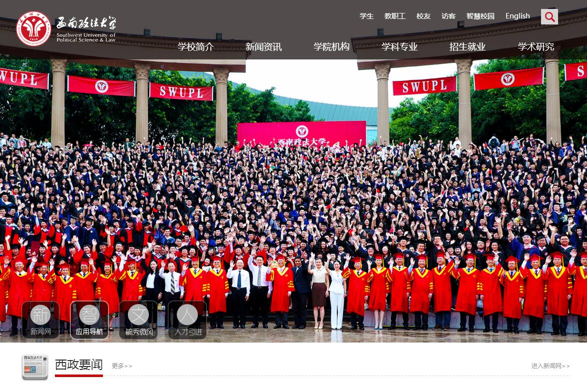 西南政法大學(xué)是新中國(guó)最早建立的高等政法學(xué)府,改革開放后國(guó)家首批重點(diǎn)大學(xué),國(guó)家首批卓越法律人才教育培養(yǎng)基地,教育部與重慶市人民政府共建高校,來(lái)華留學(xué)生中國(guó)政府獎(jiǎng)學(xué)金委托培養(yǎng)院校,中西部高?;A(chǔ)能力提升計(jì)劃二期入選高校。學(xué)校前身為1950年創(chuàng)建的由劉伯承擔(dān)任校長(zhǎng)的西南人民革命大學(xué)。1953年,以西南人民革命大學(xué)政法系為基礎(chǔ)成立西南政法學(xué)院,首任院長(zhǎng)是抗日民族英雄、原東北抗日聯(lián)軍第二路軍總指揮周保中將軍。1978年,被國(guó)務(wù)院批準(zhǔn)為全國(guó)重點(diǎn)大學(xué);1993年,被國(guó)務(wù)院學(xué)位委員會(huì)批準(zhǔn)為博士學(xué)位授權(quán)單位;1995年,經(jīng)原國(guó)家教委批準(zhǔn)更名為西南政法大學(xué)。2003年,被國(guó)務(wù)院學(xué)位委員會(huì)批準(zhǔn)為全國(guó)首批法學(xué)一級(jí)學(xué)科博士學(xué)位授權(quán)單位;2004年,經(jīng)國(guó)家人事部批準(zhǔn)設(shè)置法學(xué)博士后科研流動(dòng)站。2012年3月,經(jīng)教育部批準(zhǔn)為自主招生試點(diǎn)高校;同年8月,經(jīng)中共中央政法委員會(huì)、教育部批準(zhǔn)成為首批卓越法律人才教育培養(yǎng)基地;同年10月,成為教育部和重慶市人民政府共建高校。2016年,入選國(guó)家“中西部高?;A(chǔ)能力建設(shè)工程”院校;2017年,入選重慶市一流學(xué)科建設(shè)高校。歷經(jīng)68載勵(lì)精圖治,學(xué)校恪守“博學(xué)、篤行、厚德、重法”的西政校訓(xùn),堅(jiān)持“教學(xué)立校、人才興校、科研強(qiáng)校、依法治?!钡霓k學(xué)理念,逐步凝練出“心系天下,自強(qiáng)不息,和衷共濟(jì),嚴(yán)謹(jǐn)求實(shí)”的西政精神,已形成以法學(xué)為主,哲學(xué)、經(jīng)濟(jì)學(xué)、文學(xué)、管理學(xué)、工學(xué)等多學(xué)科協(xié)調(diào)發(fā)展,從本科到碩士、博士研究生教育以及繼續(xù)教育、留學(xué)生教育等多層次、多類型的人才培養(yǎng)格局。學(xué)?,F(xiàn)有沙坪壩校區(qū)、渝北校區(qū)和寶圣湖校區(qū),占地面積共3000余畝。其中,渝北校區(qū)為本科及研究生教育教學(xué)中心,沙坪壩校區(qū)為繼續(xù)教育和干部培訓(xùn)基地。學(xué)?,F(xiàn)設(shè)有民商法學(xué)院(知識(shí)產(chǎn)權(quán)學(xué)院)、經(jīng)濟(jì)法學(xué)院(生態(tài)法學(xué)院)、法學(xué)院、行政法學(xué)院(監(jiān)察法學(xué)院)、國(guó)際法學(xué)院、刑事偵查學(xué)院(國(guó)家安全學(xué)院)、商學(xué)院(監(jiān)察審計(jì)學(xué)院)、經(jīng)濟(jì)學(xué)院、外語(yǔ)學(xué)院、新聞傳播學(xué)院、政治與公共管理學(xué)院、馬克思主義學(xué)院、人工智能法學(xué)院(應(yīng)用法學(xué)院、中國(guó)仲裁學(xué)院)等13個(gè)學(xué)院,并單獨(dú)設(shè)置了國(guó)際教育學(xué)院,統(tǒng)籌管理來(lái)華留學(xué)生工作和中外合作辦學(xué)項(xiàng)目;設(shè)置了創(chuàng)新創(chuàng)業(yè)學(xué)院,統(tǒng)籌管理全校的創(chuàng)新創(chuàng)業(yè)教育工作;設(shè)置了繼續(xù)教育學(xué)院(培訓(xùn)學(xué)院),統(tǒng)籌全校成人教育及干部培訓(xùn)工作。學(xué)校具有招收保送生、高水平運(yùn)動(dòng)員、內(nèi)地西藏班、內(nèi)地新疆班、港澳臺(tái)僑聯(lián)合招生、香港免試生、澳門保送生及自主招生資格。學(xué)?,F(xiàn)有在校學(xué)生23000余人。學(xué)校舉辦的“天倫杯”全國(guó)政法院校辯論友誼賽,是國(guó)內(nèi)高校影響力較高的辯論賽事;學(xué)生辯論隊(duì)先后獲得第二屆全國(guó)“貿(mào)仲杯”國(guó)際商事仲裁模擬辯論賽冠軍、第八屆中國(guó)名校大學(xué)生辯論賽冠軍、“創(chuàng)想青春——2010兩岸四地高校世博辯論大賽”冠軍、第二和第三屆全國(guó)大學(xué)生模擬庭審競(jìng)賽冠軍。學(xué)生創(chuàng)業(yè)團(tuán)隊(duì)先后獲得重慶市互聯(lián)網(wǎng)+大學(xué)生創(chuàng)新創(chuàng)業(yè)大賽銀獎(jiǎng)和金獎(jiǎng)。校藝術(shù)團(tuán)合唱團(tuán)曾獲全國(guó)第三屆大學(xué)生藝術(shù)展演一等獎(jiǎng)、世界合唱比賽銀獎(jiǎng)、第九屆中國(guó)音樂“金鐘獎(jiǎng)”優(yōu)勝獎(jiǎng)等多項(xiàng)殊榮。學(xué)生在排球、田徑、籃球、武術(shù)、體育舞蹈、健美操等全國(guó)比賽中也屢創(chuàng)佳績(jī)。學(xué)?,F(xiàn)有教職工2000余人。其中,具有高級(jí)專業(yè)技術(shù)職務(wù)的教師600余人,包括第二批國(guó)家“萬(wàn)人計(jì)劃”哲學(xué)社會(huì)科學(xué)領(lǐng)軍人才、全國(guó)文化名家暨“四個(gè)一批”人才、國(guó)家高層次人才特殊支持計(jì)劃“哲學(xué)社會(huì)科學(xué)領(lǐng)軍人才”“百千萬(wàn)工程領(lǐng)軍人才”“青年拔尖人才”“新世紀(jì)百千萬(wàn)人才工程”國(guó)家級(jí)人選、國(guó)家有突出貢獻(xiàn)的中青年專家、“新世紀(jì)優(yōu)秀人才支持計(jì)劃”人選、國(guó)務(wù)院政府特殊津貼專家、全國(guó)十大杰出青年法學(xué)家、重慶市高層次人才特殊支持計(jì)劃人選、重慶市杰出專業(yè)技術(shù)人才、重慶市有突出貢獻(xiàn)中青年專家、重慶市“巴渝學(xué)者”特