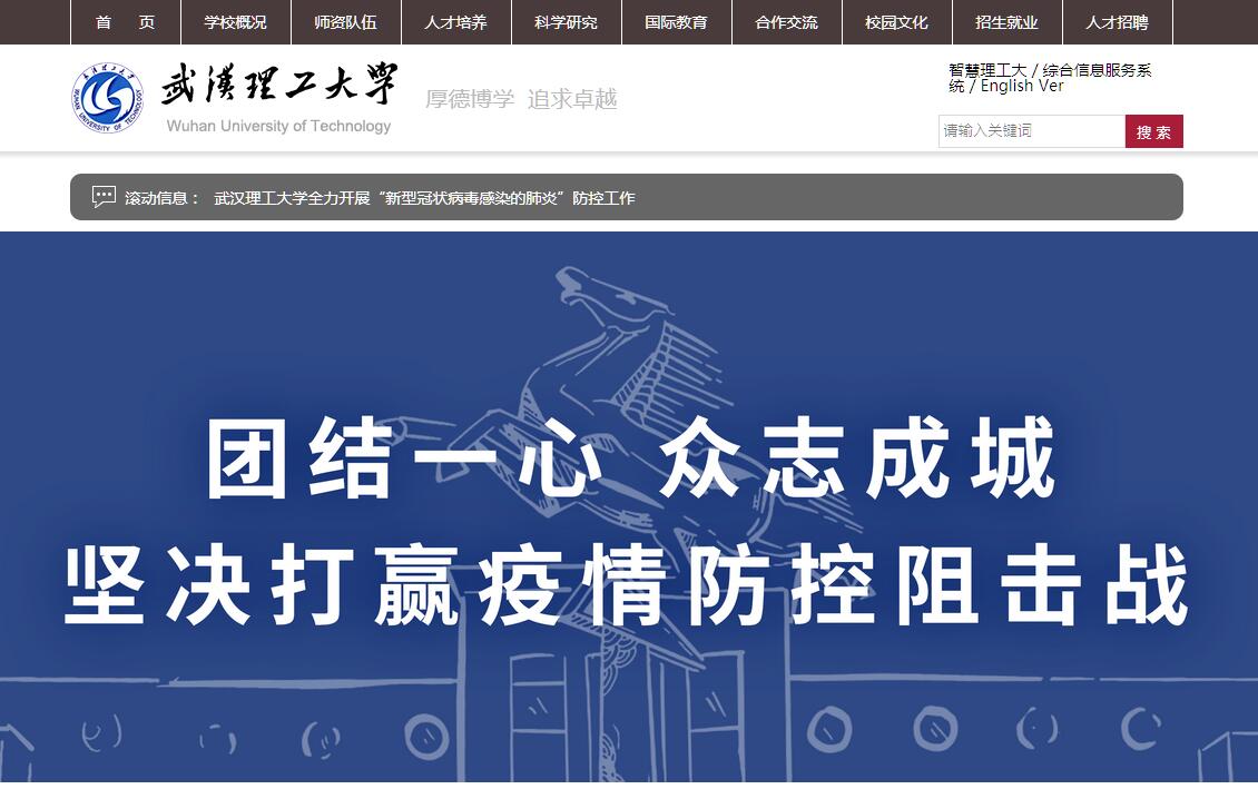 武漢理工大學是首批列入國家“211工程”重點建設的教育部直屬全國重點大學,首批列入國家“雙一流計劃”建設高校,教育部和交通運輸部、國家國防科技工業(yè)局共建高校。70年來,學校共培養(yǎng)了50余萬名高級專門人才,是教育部直屬高校中為建材建工、交通、汽車三大行業(yè)培養(yǎng)人才規(guī)模最大的學校,已成為我國“三大行業(yè)”高層次人才培養(yǎng)和科技創(chuàng)新的重要基地。目前在校普通本科生36452人,博士、碩士生17224人,留學生1310人。學校長期的育人實踐,形成了特色鮮明的辦學思想體系:確立了“建設讓人民滿意、讓世人仰慕的優(yōu)秀大學”的大學理想,“厚德博學、追求卓越”的大學精神,“育人為本、學術至上”的辦學理念,“實施卓越教育、培養(yǎng)卓越人才、創(chuàng)造卓越人生”的卓越教育理念。學校致力于為社會培養(yǎng)一代又一代以智慧引領人生、具有卓越追求和卓越能力的卓越人才。學校現(xiàn)有馬房山校區(qū)、余家頭校區(qū)和南湖校區(qū),占地4000余畝,校舍總建筑面積175萬平方米,4座現(xiàn)代化圖書館藏書382萬冊。設有25個學院(部),4個國家重點實驗室(工程中心)。現(xiàn)有教職工5508人,其中專任教師3282人,中國科學院院士1人,中國工程院院士3人,歐洲科學院院士1人,澳大利亞工程院院士1人,世界陶瓷科學院院士1人,面向全球聘任的戰(zhàn)略科學家30人,國家“千人計劃”28人、“萬人計劃”6人,長江學者特聘(講座、青年)教授14人,國家杰出青年基金獲得者7人,國家教學名師獎獲得者3人,“百千萬人才工程”國家級人選11人。學校已形成以工學為主,理、工、經(jīng)、管、藝術、文、法等多學科相互滲透、協(xié)調發(fā)展的學科專業(yè)體系?,F(xiàn)有一級學科博士學位授權點19個,一級學科碩士學位授權點46個,博士后科研流動站17個;有16個碩士專業(yè)學位授權類別,40個碩士專業(yè)學位授權領域。材料學科、工程學科和化學學科進入了世界ESI學科排名的前5‰?,F(xiàn)有本科專業(yè)90個,其中國家特色專業(yè)15個、卓越工程師教育培養(yǎng)計劃試點專業(yè)28個、國家綜合改革試點專業(yè)4個、國家戰(zhàn)略性新興產(chǎn)業(yè)專業(yè)2個。現(xiàn)有國家級精品在線開放課程5門、國家級精品資源共享課17門、國家級精品視頻公開課8門。擁有國家級教學團隊5個、教育部人才培養(yǎng)模式實驗區(qū)4個、國家級實驗教學示范中心5個、國家工科基礎課程教學基地1個、國家級工程實踐教育中心13個、國家國際化示范學院1個、全國創(chuàng)業(yè)孵化示范基地1個、全國高校實踐育人創(chuàng)新創(chuàng)業(yè)基地1個。近年來,學校培養(yǎng)了一批全國優(yōu)秀大學生代表,2人獲“中國青年五四獎章”,5人獲“中國青少年科技創(chuàng)新獎”,2人獲“中國大學生年度人物”稱號,3人獲“中國大學生自強之星標兵”稱號,7人獲“中國大學生自強之星”稱號。近年來,學校在多項全國高水平大學生科技競賽中成績名列前茅。2017年,大學生學科競賽獲省部級以上獎項473項(其中國家級獎337項)。學校畢業(yè)生一次就業(yè)率近幾年保持在95%以上。學校建有材料復合新技術國家重點實驗室、硅酸鹽建筑材料國家重點實驗室、光纖傳感技術國家工程實驗室、國家水運安全工程技術研究中心等34個國家級和省部級科研基地,建有內河智能航運交通運輸部協(xié)同創(chuàng)新中心、汽車零部件技術湖北省協(xié)同創(chuàng)新中心、安全預警與應急聯(lián)動技術湖北省協(xié)同創(chuàng)新中心等3個省部級協(xié)同創(chuàng)新中心,與地方政府和行業(yè)企業(yè)共建科技合作與成果轉化機構230余個。2010年以來,學校以第一完成單位獲國家科技獎勵14項,位居全國高校前列。學校與美國、英國、日本、法國、澳大利亞、俄羅斯、荷蘭等國家的190多所大學和科研機構建立了人才培養(yǎng)和科技合作關系,聘請了300余名國外知名學者擔任學校戰(zhàn)略科學家、客座和名譽教授。2007年以來,學校先后獲批建立了材料復合新技術與先進功能材料、高性能船舶關鍵技術、功能薄膜新材料先進制備技術及工程應用、新能源汽車科學與關鍵技術、環(huán)境友好建筑材料等5個學科創(chuàng)新引智基地和材料復合新技術國際聯(lián)合實驗室、環(huán)境友好建筑材料國際科技合作基地、智能航運與海事安全國際科技合作基地、材料復合新技術與新材料國際聯(lián)合實驗室等4個國際科技合作基地。2009年以來,學校先后與美國、英國、意大利、荷蘭、日本的著名高校建立了14個高水平國際合作研究平臺,包括武漢理工大學—密歇根大學新能源材料技術聯(lián)合實驗室、武漢理工大學—南安普頓大學高性能船舶技術聯(lián)合中心等。2016年,學校與英國威爾士三一圣大衛(wèi)大學合作建立的首個海外校區(qū)正式運行。2017年,學校同時進入THE世界大學排行榜、QS亞洲大學排行榜、US News世界大學排行榜、ARWU世界大學學術排行榜。