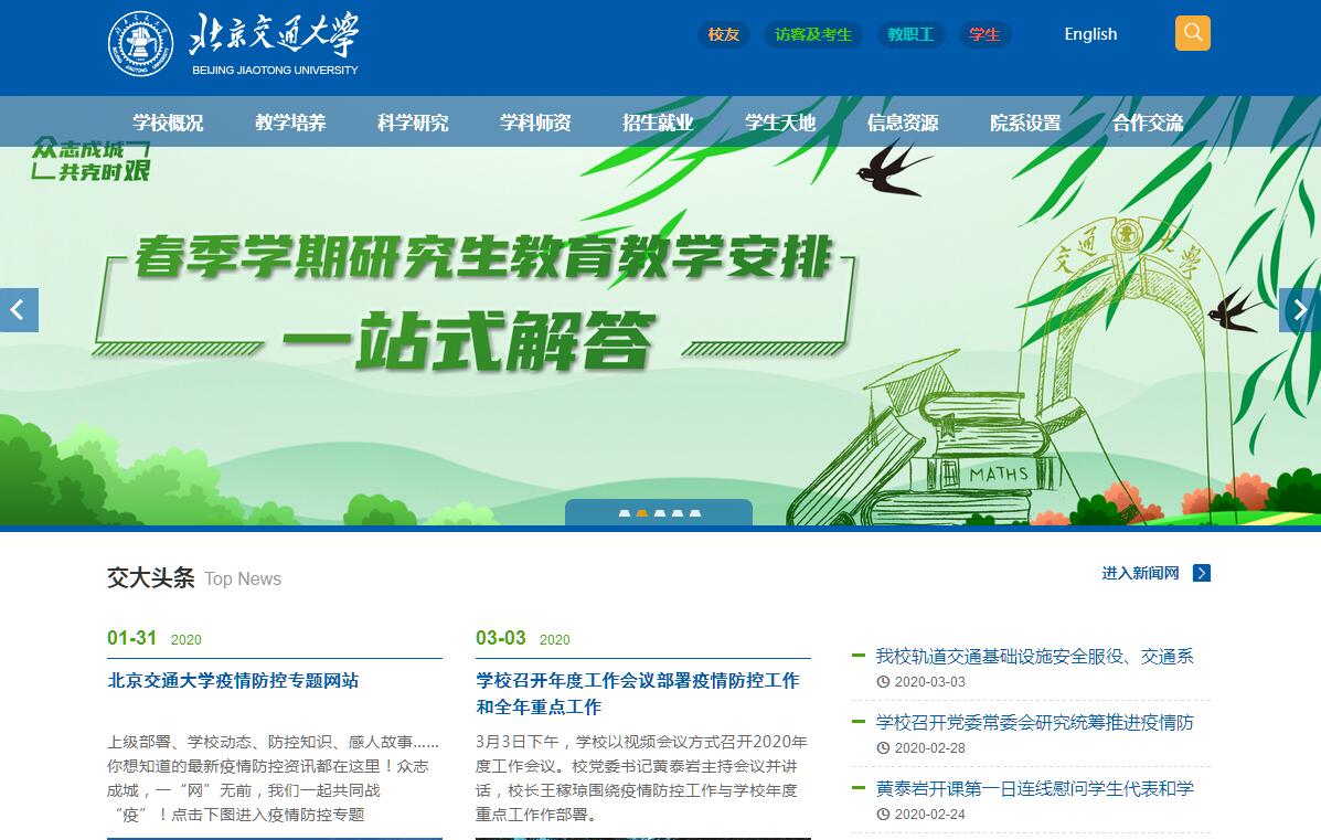 北京交通大學(xué)是教育部直屬,教育部、北京市人民政府、中國鐵路總公司共建的全國重點大學(xué),“211工程”“985工程優(yōu)勢學(xué)科創(chuàng)新平臺”項目建設(shè)高校和具有研究生院的全國首批博士、碩士學(xué)位授予高校。學(xué)校牽頭的“2011計劃”“軌道交通安全協(xié)同創(chuàng)新中心”是國家首批14個認(rèn)定的協(xié)同創(chuàng)新中心之一。2017年,學(xué)校正式進(jìn)入國家“雙一流”建設(shè)行列,將圍繞優(yōu)勢特色學(xué)科,重點建設(shè)“智慧交通”世界一流學(xué)科領(lǐng)域。北京交通大學(xué)作為交通大學(xué)的三個源頭之一,歷史淵源可追溯到1896年,前身是清政府創(chuàng)辦的北京鐵路管理傳習(xí)所,是中國第一所專門培養(yǎng)管理人才的高等學(xué)校,是中國近代鐵路管理、電信教育的發(fā)祥地。1917年改組為北京鐵路管理學(xué)校和北京郵電學(xué)校,1921年與上海工業(yè)專門學(xué)校、唐山工業(yè)專門學(xué)校合并組建交通大學(xué)。1923年交通大學(xué)改組后,北京分校更名為北京交通大學(xué)。1950年學(xué)校定名北方交通大學(xué),毛澤東主席題寫校名,著名橋梁專家茅以升任校長。1952年,北方交通大學(xué)撤銷,京唐兩院獨立,學(xué)校改稱北京鐵道學(xué)院。1970年恢復(fù)“北方交通大學(xué)”校名。2000年與北京電力高等??茖W(xué)校合并,由鐵道部劃轉(zhuǎn)教育部直屬管理。2003年恢復(fù)使用“北京交通大學(xué)”校名。學(xué)校曾培養(yǎng)出中國第一個無線電臺創(chuàng)建人劉瀚、中國第一臺大馬力蒸汽機設(shè)計者應(yīng)尚才、中國第一本鐵路運輸專著作者金士宣、中國鐵路運輸經(jīng)濟學(xué)科的開創(chuàng)者許靖、中國最早的四大會計師之一楊汝梅,以及中國現(xiàn)代作家、文學(xué)評論家、文學(xué)史家鄭振鐸等一大批蜚聲中外的杰出人才。“東京審判”擔(dān)任首席檢察官的向哲浚,中國著名的經(jīng)濟學(xué)家、人口學(xué)家馬寅初等都曾在學(xué)校任教。2017年,中國共產(chǎn)黨北京交通大學(xué)第十一次黨員代表大會勝利召開,明確了學(xué)校未來五年的奮斗目標(biāo),選舉產(chǎn)生新一屆中共北京交通大學(xué)委員會和紀(jì)律檢查委員會。寧濱教授當(dāng)選中國工程院院士。3項主持成果獲國家科學(xué)技術(shù)獎,其中1項獲國家科技進(jìn)步一等獎。學(xué)校優(yōu)勢特色學(xué)科在全國第四輪學(xué)科評估中取得可喜成績,系統(tǒng)科學(xué)連續(xù)第四次蟬聯(lián)全國第一,系統(tǒng)科學(xué)、交通運輸工程、信息與通信工程、計算機科學(xué)與技術(shù)、工商管理等5個學(xué)科被評為A類,另有7個學(xué)科進(jìn)入前20%。學(xué)校在最具影響力的四大世界大學(xué)排行榜均實現(xiàn)榜上有名,首次進(jìn)入THE世界大學(xué)排行榜和上海軟科世界大學(xué)學(xué)術(shù)排行。學(xué)科國際排名穩(wěn)步提升。3個學(xué)科進(jìn)入ESI前1%,其中工程學(xué)排名前1.5‰。10個學(xué)科入圍上海軟科世界一流學(xué)科排行500強,其中交通運輸工程學(xué)科中國排名第1、世界排名第2,通信工程學(xué)科中國排名第10、世界排名第38。計算機科學(xué)、物理學(xué)、材料科學(xué)等3個學(xué)科以及工學(xué)領(lǐng)域入圍U.S. News世界大學(xué)學(xué)科排名,其中工學(xué)領(lǐng)域排名97、大陸排名17。電氣與電子工程,計算機科學(xué)與信息系統(tǒng),機械、航空與制造工程,數(shù)學(xué),物理學(xué)與天文學(xué),統(tǒng)計學(xué)與運籌學(xué)等6個學(xué)科入圍2018年QS世界大學(xué)學(xué)科排名。學(xué)校始終瞄準(zhǔn)科技發(fā)展前沿和國家重大戰(zhàn)略需求,依托信息、管理和交通科學(xué)與技術(shù)等優(yōu)勢特色學(xué)科,通過智力支持、人才保障和專業(yè)服務(wù),全面參與了鐵路大提速、青藏鐵路建設(shè)、大秦鐵路重載運輸、高速鐵路建設(shè)和城市軌道交通核心技術(shù)自主研發(fā)等中國軌道交通發(fā)展的重大歷史事件,取得了一系列具有完全自主知識產(chǎn)權(quán)、處于國際先進(jìn)水平的一系列原創(chuàng)性重大成果,為服務(wù)國家交通、物流、信息、新能源等行業(yè)以及北京經(jīng)濟社會發(fā)展作出了積極貢獻(xiàn),成為支撐和引領(lǐng)國家、行業(yè)和區(qū)域科技創(chuàng)新發(fā)展的重要力量。目前,學(xué)校正在全面推進(jìn)實施學(xué)?!笆濉币?guī)劃和《綜合改革方案》各項任務(wù),堅持“三步走”戰(zhàn)略,到本世紀(jì)中葉基本建設(shè)成為特色鮮明世界一流大學(xué)。學(xué)校在被稱為“學(xué)府勝地”的北京市海淀區(qū)建有東西兩個校區(qū),總面積近1000畝,建筑面積100余萬平方米。2015年9月,位于山東省威海市的威海校區(qū)正式投入使用。學(xué)校各校區(qū)均具有完善的教學(xué)、科研設(shè)施,校園環(huán)境優(yōu)美。歷經(jīng)雙甲子發(fā)展,學(xué)校形成了以信息、管理等學(xué)科為優(yōu)勢,以交通科學(xué)與技術(shù)為特色,工、管、經(jīng)、理、文、法、哲等多學(xué)科協(xié)調(diào)發(fā)展的完備的學(xué)科培養(yǎng)體系。學(xué)校設(shè)有電子信息工程學(xué)院、計算機與信息技術(shù)學(xué)院、經(jīng)濟管理學(xué)院、交通運輸學(xué)院、土木建筑