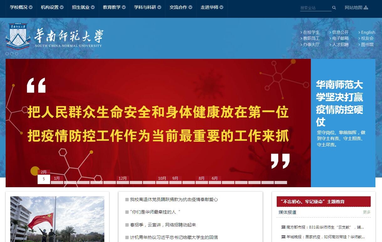 華南師范大學(xué)始建于1933年,前身是廣東省立勷勤大學(xué)師范學(xué)院。1996年進(jìn)入國(guó)家“211 工程”重點(diǎn)建設(shè)大學(xué)行列,2015年成為廣東省人民政府和教育部共建高校,同年進(jìn)入廣東省高水平大學(xué)整體建設(shè)高校行列,2017年學(xué)校進(jìn)入國(guó)家“世界一流學(xué)科”建設(shè)行列。學(xué)?,F(xiàn)有廣州石牌、廣州大學(xué)城和佛山南海3個(gè)校區(qū),占地面積 3025畝,校舍面積134萬平方米,圖書374萬冊(cè)。學(xué)校物理學(xué)列入國(guó)家“世界一流學(xué)科”建設(shè)目標(biāo),有教育技術(shù)學(xué)、發(fā)展與教育心理學(xué)、光學(xué)、體育人文社會(huì)學(xué)(重點(diǎn)培育)4個(gè)國(guó)家重點(diǎn)學(xué)科,9個(gè)國(guó)家“211工程”重點(diǎn)建設(shè)學(xué)科,23個(gè)廣東省重點(diǎn)學(xué)科(含6個(gè)攀峰重點(diǎn)學(xué)科,14個(gè)優(yōu)勢(shì)重點(diǎn)學(xué)科和3個(gè)特色重點(diǎn)學(xué)科,共19個(gè)一級(jí)重點(diǎn)學(xué)科和4個(gè)二級(jí)重點(diǎn)學(xué)科)。在教育部第四輪學(xué)科評(píng)估中,心理學(xué)、體育學(xué)、教育學(xué)、馬克思主義理論4個(gè)學(xué)科進(jìn)入A類學(xué)科,其中心理學(xué)獲評(píng)A+學(xué)科;化學(xué)、植物與動(dòng)物學(xué)、工程學(xué)、數(shù)學(xué)和材料科學(xué)5個(gè)學(xué)科進(jìn)入ESI 全球前 1%。學(xué)校擁有87個(gè)本科專業(yè),33個(gè)碩士學(xué)位授權(quán)一級(jí)學(xué)科、200多個(gè)碩士學(xué)位授權(quán)點(diǎn)、18個(gè)碩士專業(yè)學(xué)位授權(quán)點(diǎn),19個(gè)博士學(xué)位授權(quán)一級(jí)學(xué)科、100多個(gè)博士學(xué)位授權(quán)點(diǎn)、1個(gè)博士專業(yè)學(xué)位授權(quán)點(diǎn),17個(gè)博士后流動(dòng)站。學(xué)科布局覆蓋哲學(xué)、經(jīng)濟(jì)學(xué)、法學(xué)、教育學(xué)、文學(xué)、歷史學(xué)、理學(xué)、工學(xué)、農(nóng)學(xué)、醫(yī)學(xué)、管理學(xué)、藝術(shù)學(xué)12個(gè)門類。學(xué)校教師隊(duì)伍結(jié)構(gòu)良好、水平較高,擁有一批在國(guó)內(nèi)外具有一定影響的專家學(xué)者。現(xiàn)有專任教師2030人,其中副高級(jí)以上1152人,博士、碩士研究生導(dǎo)師1227人,具有博士、碩士學(xué)位的1812人?,F(xiàn)有院士(含雙聘和外籍)12人,“千人計(jì)劃”入選者13人,“青年千人計(jì)劃”入選者6人,“長(zhǎng)江學(xué)者”14人,“國(guó)家杰出青年科學(xué)基金”獲得者17人,“長(zhǎng)江學(xué)者與創(chuàng)新團(tuán)隊(duì)發(fā)展計(jì)劃”創(chuàng)新團(tuán)隊(duì)3個(gè),國(guó)家級(jí)教學(xué)名師2人,百千萬人才工程國(guó)家級(jí)人選12人,教育部新世紀(jì)優(yōu)秀人才支持計(jì)劃人選25人,“萬人計(jì)劃”入選者5人,中宣部“四個(gè)一批”人才5人,國(guó)家優(yōu)秀青年基金獲得者2人,廣東省領(lǐng)軍人才5人,廣東省創(chuàng)新科研團(tuán)隊(duì)2個(gè),珠江學(xué)者26人,廣東省高等學(xué)校“千百十工程”國(guó)家級(jí)培養(yǎng)對(duì)象7名,并有國(guó)務(wù)院學(xué)位委員會(huì)學(xué)科評(píng)議組成員3名,教育部高等學(xué)校教學(xué)指導(dǎo)委員會(huì)成員13名。學(xué)校自建國(guó)之初就開始面向全國(guó)招生,現(xiàn)招生范圍覆蓋全國(guó)34個(gè)省、自治區(qū)、直轄市、特別行政區(qū)。學(xué)校現(xiàn)有在校全日制本科生24835人,碩士研究生8212人,博士研究生909人,博士后在站131人,留學(xué)生1181人,形成了學(xué)士——碩士——博士——博士后完整的人才培養(yǎng)體系。學(xué)校擁有一批實(shí)力較強(qiáng)的實(shí)驗(yàn)室和科研基地。有國(guó)家級(jí)綠色光電子國(guó)際聯(lián)合研究中心、激光生命科學(xué)教育部重點(diǎn)實(shí)驗(yàn)室、環(huán)境理論化學(xué)教育部重點(diǎn)實(shí)驗(yàn)室、電化學(xué)儲(chǔ)能材料與技術(shù)教育部工程研究中心、教育部光信息國(guó)際合作聯(lián)合實(shí)驗(yàn)室、教育部互聯(lián)網(wǎng)應(yīng)用創(chuàng)新開發(fā)平臺(tái)示范基地、教育部部省共建人文社科重點(diǎn)研究基地(心理應(yīng)用研究中心)、國(guó)家體育總局重點(diǎn)研究基地(體育社會(huì)科學(xué)研究基地),有7個(gè)廣東省重點(diǎn)實(shí)驗(yàn)室、1個(gè)廣東省工程實(shí)驗(yàn)室、29個(gè)廣東省工程技術(shù)研究中心、1個(gè)廣東省突發(fā)公共事件應(yīng)急技術(shù)研究中心、1個(gè)廣東省國(guó)際合作基地、6個(gè)廣東省高??蒲行椭攸c(diǎn)實(shí)驗(yàn)室、3個(gè)廣東省高校工程技術(shù)研究中心、7個(gè)廣東省普通高校人文社會(huì)科學(xué)重點(diǎn)研究基地、2個(gè)廣東省普通高校哲學(xué)社會(huì)科學(xué)重點(diǎn)實(shí)驗(yàn)室等。學(xué)校還擁有1個(gè)國(guó)家理科基礎(chǔ)科學(xué)研究和教學(xué)人才培養(yǎng)基地、4個(gè)國(guó)家級(jí)實(shí)驗(yàn)教學(xué)示范中心,19個(gè)廣東省實(shí)驗(yàn)教學(xué)示范中心,3個(gè)國(guó)家級(jí)大學(xué)生校外實(shí)踐教育基地,37個(gè)廣東省大學(xué)生校外實(shí)踐教學(xué)基地。此外,廣東省網(wǎng)絡(luò)圖書館、廣東高校建筑規(guī)劃設(shè)計(jì)院等機(jī)構(gòu)均設(shè)