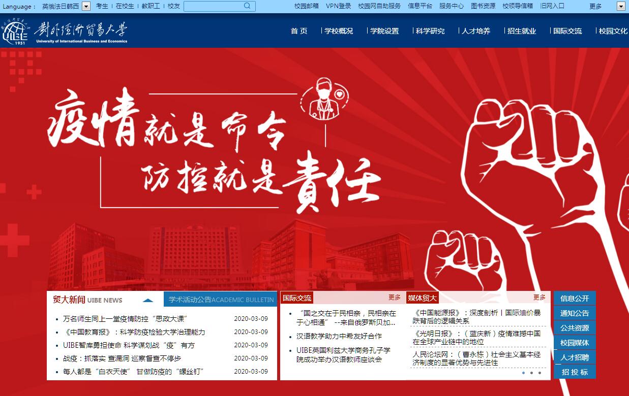 對外經(jīng)濟貿(mào)易大學是教育部直屬的全國重點大學,首批“211工程”和首批“雙一流”建設高校,坐落在首都北京朝陽區(qū)。學校校園規(guī)劃精致,環(huán)境優(yōu)雅,是中國社會主義經(jīng)濟建設事業(yè)人才培養(yǎng)和科學研究的重要基地之一。學校前身為高級商業(yè)干部學校,創(chuàng)建于1951年,受中央貿(mào)易部和教育部雙重領導。1952年,中央貿(mào)易部撤銷,學校劃歸對外貿(mào)易部,受對外貿(mào)易部和教育部雙重領導。1953年,學校更名為北京對外貿(mào)易??茖W校,由教育部委托對外貿(mào)易部領導。1954年,中國人民大學貿(mào)易系對外貿(mào)易專業(yè)并入北京對外貿(mào)易??茖W校,以北京對外貿(mào)易專科學校為基礎成立北京對外貿(mào)易學院。1984年,學校更名為對外經(jīng)濟貿(mào)易大學。2000年6月,原中國金融學院與原對外經(jīng)濟貿(mào)易大學合并成立新的對外經(jīng)濟貿(mào)易大學,劃歸教育部直屬。2010年12月,教育部與商務部正式簽署協(xié)議,共建對外經(jīng)濟貿(mào)易大學。學?,F(xiàn)任黨委書記蔣慶哲,校長王稼瓊。歷經(jīng)幾代師生員工的艱苦創(chuàng)業(yè)和努力奮斗,對外經(jīng)濟貿(mào)易大學已經(jīng)發(fā)展成為一所擁有經(jīng)、管、法、文、理、工等門類,以國際經(jīng)濟與貿(mào)易、法學(國際經(jīng)濟法)、金融學、工商管理、外語(商務外語)等優(yōu)勢專業(yè)為學科特色的多科性財經(jīng)外語類大學。目前,學校下設研究生院及17個學院,并設有體育部和文化藝術教學部;擁有國家級重點學科2個,國家級人文社會科學重點研究基地1個,教育部戰(zhàn)略研究(培育)基地1個、教育戰(zhàn)略與規(guī)劃研究中心1個,北京市重點學科7個,北京市哲學社會科學研究基地1個,博士后流動站4個,一級學科博士點7個,一級學科碩士點10個,專業(yè)碩士學位授權(quán)點12個,本科專業(yè)46個。學?,F(xiàn)有教職工1600余人,其中專任教師1000余人,學校還聘請一定數(shù)量的兼職教師及外國專家。這是一處群英薈萃之地,老教授中名家耀眼,中青年教師里新秀輩出。大批獲得政府特殊津貼、受聘擔任政府學術機構(gòu)成員的專家學者工作在教學科研第一線;大部分中青年教師在國外留學或進修過,教學科研水平高,許多人被評為省部級學科帶頭人和骨干教師,入選國家優(yōu)秀人才培養(yǎng)工程。學?,F(xiàn)有在校學生1.6萬余人,其中本科生8300余人,研究生5200余人,來華留學學歷生2500余人。學校培養(yǎng)的學生一直以專業(yè)知識和技能扎實、外語嫻熟、思維活躍、實踐能力強而受到社會的普遍歡迎,畢業(yè)生遍布全國各地的外貿(mào)、金融、會計、教育科研等行業(yè)領域及國家機關、中國駐外商務機構(gòu),為我國經(jīng)濟與社會發(fā)展,尤其是經(jīng)貿(mào)事業(yè)的發(fā)展發(fā)揮著重要的作用。學校的學術研究在我國對外經(jīng)貿(mào)科研領域占有重要地位,設有110余個研究單位,其中中國WTO研究院是全國唯一的研究世界貿(mào)易組織的國家級人文社科重點研究基地。學校圖書館文獻總量180余萬冊(件)。學校主辦并公開發(fā)行多種學術刊物,其中《國際貿(mào)易問題》、《國際商務——對外經(jīng)濟貿(mào)易大學學報》、《日語學習與研究》、《Journal of WTO and China》(WTO與中國)等享有較高的學術地位。學校出版社每年出書百余種,在高校中享有較高聲譽。學校也是國家培訓高級經(jīng)濟管理干部的基地之一,設有政府委托或與外國合辦的多個高級在職培訓機構(gòu)。學校于1989年11月在國內(nèi)率先成立了校董會。李嵐清為首任校董會主席,榮毅仁、霍英東等任名譽主席,吳儀為第二任校董會主席。2011年9月,校董會第三屆會議選舉施建軍為第三任校董會主席,石廣生、劉鴻儒、陳元為榮譽主席。校董會的建立,對于學校的建設發(fā)展發(fā)揮了重要作用。學校在發(fā)展過程中受到海內(nèi)外廣泛關注和支持:政府機構(gòu)、企業(yè)家、財團、大公司等紛紛向?qū)W校捐資設立基金或獎學金,許多國際著名的跨國企業(yè)成為學校的贊助團體。目前,社會力量在學校設立的獎學金、獎教金等20余項,院系級基金則更多。學校與美、英、法、德、日、俄、意、澳等48個國家和地區(qū)的250余所著名大學和研究機構(gòu)建立合作交流關系,不斷開展的對外交流與合作,使對外經(jīng)濟貿(mào)易大學面向世界辦學的特色更加鮮明。面對新時期我國全面實現(xiàn)小康社會建設目標,加快社會主義現(xiàn)代化建設的新形勢,學校倡導追求卓越、創(chuàng)造精品的理念,堅持辦精品大學、控制辦學規(guī)模,辦特色大學,走內(nèi)涵發(fā)展、特色發(fā)展和現(xiàn)代化發(fā)展之路,加強國際化建設,著力培養(yǎng)復合型人才,將建設特色鮮明世界一流大學作為長期愿景和歷史使命。