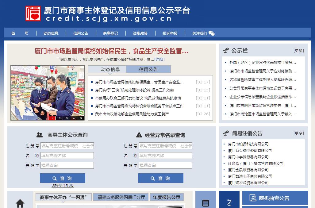 | 網站名稱: | 廈門市商事主體登記及信用信息公示平臺 | ||