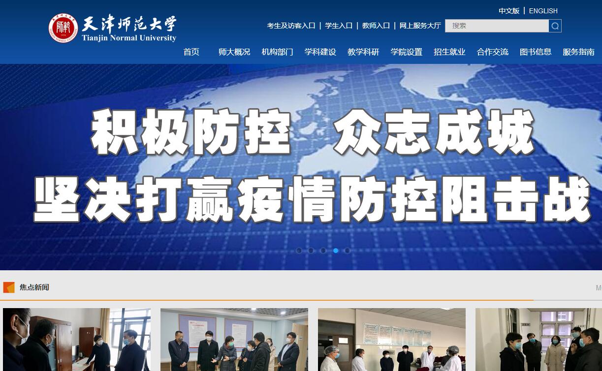 天津師范大學(xué)是天津市屬重點院校,始建于1958年,原名天津師范學(xué)院,1982年更名為天津師范大學(xué)。1999年,原天津師范大學(xué)、天津師范高等??茖W(xué)校、天津教育學(xué)院合并組建新天津師范大學(xué)。學(xué)校占地面積3500畝、建筑面積84萬平方米。學(xué)校現(xiàn)有23個學(xué)院,70個本科專業(yè),8個博士學(xué)位授權(quán)一級學(xué)科,35個碩士學(xué)位授權(quán)一級學(xué)科,15個碩士專業(yè)學(xué)位類別,涉及哲學(xué)、經(jīng)濟學(xué)、法學(xué)、教育學(xué)、文學(xué)、歷史學(xué)、理學(xué)、工學(xué)、管理學(xué)、藝術(shù)學(xué)等10個學(xué)科門類。學(xué)?,F(xiàn)有國務(wù)院學(xué)位委員會第七屆學(xué)科評議組成員3人,教育部高等學(xué)校教學(xué)指導(dǎo)委員會委員11人。擁有2個國家重點學(xué)科,7個天津市一流學(xué)科,18個天津市重點學(xué)科,4個天津市“重中之重”學(xué)科,15個天津市特色學(xué)科(群),化學(xué)學(xué)科進入“ESI”排名全球前1%。根據(jù)教育部學(xué)位與研究生教育發(fā)展中心發(fā)布的第四輪學(xué)科評估結(jié)果,我校政治學(xué)、馬克思主義理論、心理學(xué)、世界史4個學(xué)科獲評B+學(xué)科,教育學(xué)、中國語言文學(xué)2個學(xué)科獲評B類學(xué)科。6個教育部特色專業(yè)建設(shè)點,16個天津市品牌專業(yè)建設(shè)點,5個天津市戰(zhàn)略性新興產(chǎn)業(yè)相關(guān)專業(yè)建設(shè)點,8個天津市優(yōu)勢特色專業(yè)建設(shè)點,12個天津市應(yīng)用型專業(yè)建設(shè)點。2個國家級實驗教學(xué)示范中心,10個涵蓋人文社科基地、工程中心、國際聯(lián)合研究中心的省部級重點實驗室,7個博士后科研流動站。學(xué)校已建成9門國家級精品資源共享課、25門市級精品課程,1支國家級教學(xué)團隊、11支市級教學(xué)團隊、2支天津市“十二五”綜投教學(xué)創(chuàng)新團隊。獲得國家首屆基礎(chǔ)教育教學(xué)成果一等獎1項,國家級教學(xué)成果獎一等獎1項、二等獎2項,全國首屆高校青年教師教學(xué)競賽文科組一等獎1項。學(xué)?,F(xiàn)有全國大學(xué)生文化素質(zhì)教育基地、國家教育部中小學(xué)骨干教師培訓(xùn)基地、天津市思想政治教育隊伍專職人員培養(yǎng)基地、天津市高校輔導(dǎo)員培訓(xùn)基地、天津市首批新媒體建設(shè)示范校。學(xué)校定期出版《天津師范大學(xué)學(xué)報》、《心理與行為研究》、《青少年科技博覽》、《數(shù)學(xué)教育學(xué)報》、《中等數(shù)學(xué)》、《政治思想史》和《經(jīng)濟社會史評論》等9種期刊。全日制本科生21859人,全日制碩士研究生3562人,博士研究生326人,各級各類留學(xué)生2482人。教職工2324人,其中專任教師1363人,擁有高級職稱633人,具有博士學(xué)位751人。學(xué)校人文社會科學(xué)歷史積淀深厚,注重新型智庫建設(shè),主動為黨和政府科學(xué)決策服務(wù)。努力發(fā)展自然科學(xué)學(xué)科,建設(shè)綜合性大學(xué)。彰顯教師教育辦學(xué)特色,形成了學(xué)科專業(yè)教育與教師職業(yè)養(yǎng)成教育相結(jié)合的教師教育模式。積極探索全員全過程全方位育人,形成了以“課上課下、工作隊伍、項目育人、線上線下、校內(nèi)校外”五個一體化為基礎(chǔ)的育人體系。學(xué)校始終堅持開放辦學(xué),與29個國家和地區(qū)的159所大學(xué)、機構(gòu)或地方政府建立友好合作關(guān)系。是首批國家教育部“來華留學(xué)示范基地”。承辦四所孔子學(xué)院,多次獲得“先進孔子學(xué)院”和“示范孔子學(xué)院”稱號,并被評為“孔子學(xué)院先進承辦校”。學(xué)校先后榮獲全國精神文明建設(shè)先進單位、全國文明單位、全國五一勞動獎狀、全國“三八”紅旗集體、全國模范教師、全國優(yōu)秀教育工作者、全國道德模范提名獎等集體和個人榮譽近百項。學(xué)校踐行“勤奮嚴謹、自樹樹人”的校訓(xùn),培育“學(xué)思并重、知行合一”的學(xué)風(fēng)和“誠實守信、勇于擔(dān)當(dāng)”的校風(fēng)。緊緊圍繞“立德樹人”中心,堅持“特色立校、質(zhì)量興校、人才強校和改革創(chuàng)新”發(fā)展戰(zhàn)略,爭創(chuàng)“教學(xué)質(zhì)量、科研能力、人才水平、學(xué)科實力和管理效能”國內(nèi)一流,努力把學(xué)校建設(shè)成為國內(nèi)一流的教師教育特色綜合性大學(xué)。