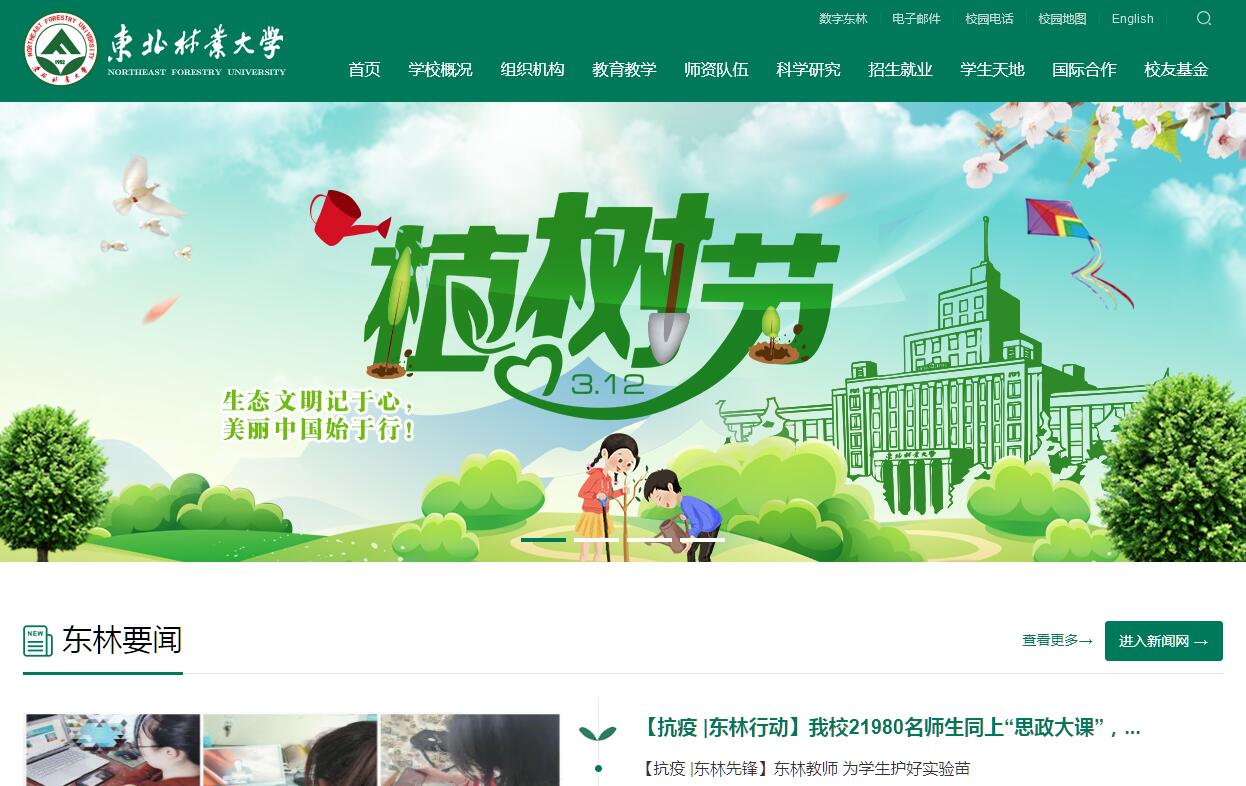 東北林業(yè)大學創(chuàng)建于1952年7月,原名東北林學院,是在浙江大學農(nóng)學院森林系和東北農(nóng)學院森林系基礎上建立的,由原國家林業(yè)部直屬管理。1985年8月更名為“東北林業(yè)大學”。2000年3月由國家林業(yè)局劃歸教育部直屬管理。2005年10月經(jīng)國家發(fā)改委、財政部和教育部批準,成為 “211工程”重點建設學校。2011年6月成為國家“優(yōu)勢學科創(chuàng)新平臺”項目重點建設高校,2017年9月經(jīng)國務院批準被列入國家一流學科建設高校行列。2010年11月教育部和國家林業(yè)局簽署協(xié)議、2012年3月教育部與黑龍江省人民政府簽署協(xié)議,合作共建東北林業(yè)大學。學校地處我國最大國有林區(qū)的中心——哈爾濱市,校園占地136公頃,并擁有帽兒山實驗林場(帽兒山國家森林公園)和涼水實驗林場(涼水國家級自然保護區(qū))等教學、科研、實習基地,總面積達3.3萬公頃。學校是一所以林科為優(yōu)勢,以林業(yè)工程為特色,農(nóng)、理、工、經(jīng)、管、文、法、醫(yī)、藝相結(jié)合的多科性大學?,F(xiàn)設有研究生院、17個學院和1個教學部,有63個本科專業(yè),9個博士后科研流動站,1個博士后科研工作站,8個一級學科博士點、38個二級學科博士點,19個一級學科碩士點、96個二級學科碩士點、11個種類32個領域的專業(yè)學位碩士點。擁有林學、林業(yè)工程兩個一流學科,3個一級學科國家重點學科,11個二級學科國家重點學科、6個國家林業(yè)局重點學科、2個國家林業(yè)局重點(培育)學科、1個黑龍江省重點學科群、7個黑龍江省重點一級學科、4個黑龍江省領軍人才梯隊。有國家發(fā)改委和教育部聯(lián)合批準的國家生命科學與技術(shù)人才培養(yǎng)基地、教育部批準的國家理科基礎科學研究和教學人才培養(yǎng)基地(生物學),是國家教育體制改革試點學校,國家級卓越工程師和卓越農(nóng)林人才教育培養(yǎng)計劃項目試點學校。學?,F(xiàn)有研究生、全日制本科生2.3萬余人。自建校以來,已向國家輸送各類畢業(yè)生13萬余人?,F(xiàn)有教職員工2500余人,其中專任教師1200余人。有中國工程院院士2人,“長江學者”特聘教授3人,青年長江學者1人,國家杰出青年基金獲得者1人,國家自然科學基金優(yōu)秀青年科學基金獲得者2人,全國“百千萬人才工程”人選4人,“新世紀百千萬工程”人選5人,“千人計劃”青年項目入選者1人,“萬人計劃”青年拔尖人才入選者1人,“青年人才托舉工程”入選者1人,新世紀優(yōu)秀人才支持計劃入選者35人;享受國務院政府特殊津貼專家33人,國家有突出貢獻中青年專家3人,省部級有突出貢獻中青年專家15人;龍江學者特聘教授11人,全國優(yōu)秀博士學位論文獲得者4人,有教育部“長江學者和創(chuàng)新團隊發(fā)展計劃”創(chuàng)新團隊2個。近年來,有國家教學名師獎獲得者2人,全國優(yōu)秀教師5人,全國模范教師1人,省級教學名師獎獲得者12人,省級優(yōu)秀教師8人次,全國“五一”勞動獎章獲得者2人,全國“五一”巾幗標兵1人。2007年學校本科教學工作水平評估獲得優(yōu)秀。學校擁有優(yōu)良的教學科研基地和實踐教學基地。有林木遺傳育種國家重點實驗室(東北林業(yè)大學)、黑龍江帽兒山森林生態(tài)系統(tǒng)國家野外科學觀測研究站、生物資源生態(tài)利用國家地方聯(lián)合工程實驗室(黑龍江);有森林植物生態(tài)學、生物質(zhì)材料科學與技術(shù)、東北鹽堿植被恢復與重建3個教育部重點實驗室,4個國家林業(yè)局重點實驗室,5個黑龍江省重點實驗室;有1個教育部工程研究中心,3個國家林業(yè)局工程技術(shù)研究中心,1個高等學校學科創(chuàng)新引智基地,有林學、森林工程、野生動物3個國家級實驗教學示范中心,森林工程、野生動物2個國家級虛擬仿真實驗教學中心,6個省級實驗教學示范中心;有3個國家林業(yè)局生態(tài)系統(tǒng)定位研究站,1個省生物質(zhì)能技術(shù)中試基地,1個省哲學社會科學研究基地,3個省級普通高校人文社會科學重點研究基地,2個省中小企業(yè)共性技術(shù)研發(fā)推廣中心,1個省級智庫;另有國家林業(yè)局野生動植物檢測中心、國家林業(yè)局木工機械檢測站等60個研究檢測機構(gòu);有帽兒山實驗林場、涼水實驗林場等7個校內(nèi)實習基地和296個校外實習基地。學校高度重視人才培養(yǎng),為社會輸送了大批高級專門人才,涌現(xiàn)出以國家和省部級領導、中國工程院院士、商界和企業(yè)界精英等為代表的一大批杰出的專業(yè)人才、管理人才和創(chuàng)業(yè)創(chuàng)新人才,為我國的林業(yè)建設事業(yè)、生態(tài)文明建設和經(jīng)濟社會發(fā)展做出了重要貢獻。學校積極開展國際交流與合作,先后與近30個國家和地區(qū)的100余所高等院校和研究機構(gòu)建立了校際合作關系。近年來,學校每年有近200位來自歐美和亞洲發(fā)達國家與我國港澳臺地區(qū)的專家學者來校講學、合作研究和訪問考察;每年派出120多位教師赴國外攻讀學位、進修訪問和科研合作;學校與美國、法國、芬蘭、俄羅斯、韓國、日本等國家和臺灣地區(qū)的友好學校開展了形式多樣的學生交流項目,并積極選派學生通過國家公派渠道赴國(境)外攻讀學位。學校大力加強留學生教育培養(yǎng),作為中國政府獎學金來華留學生接收院校