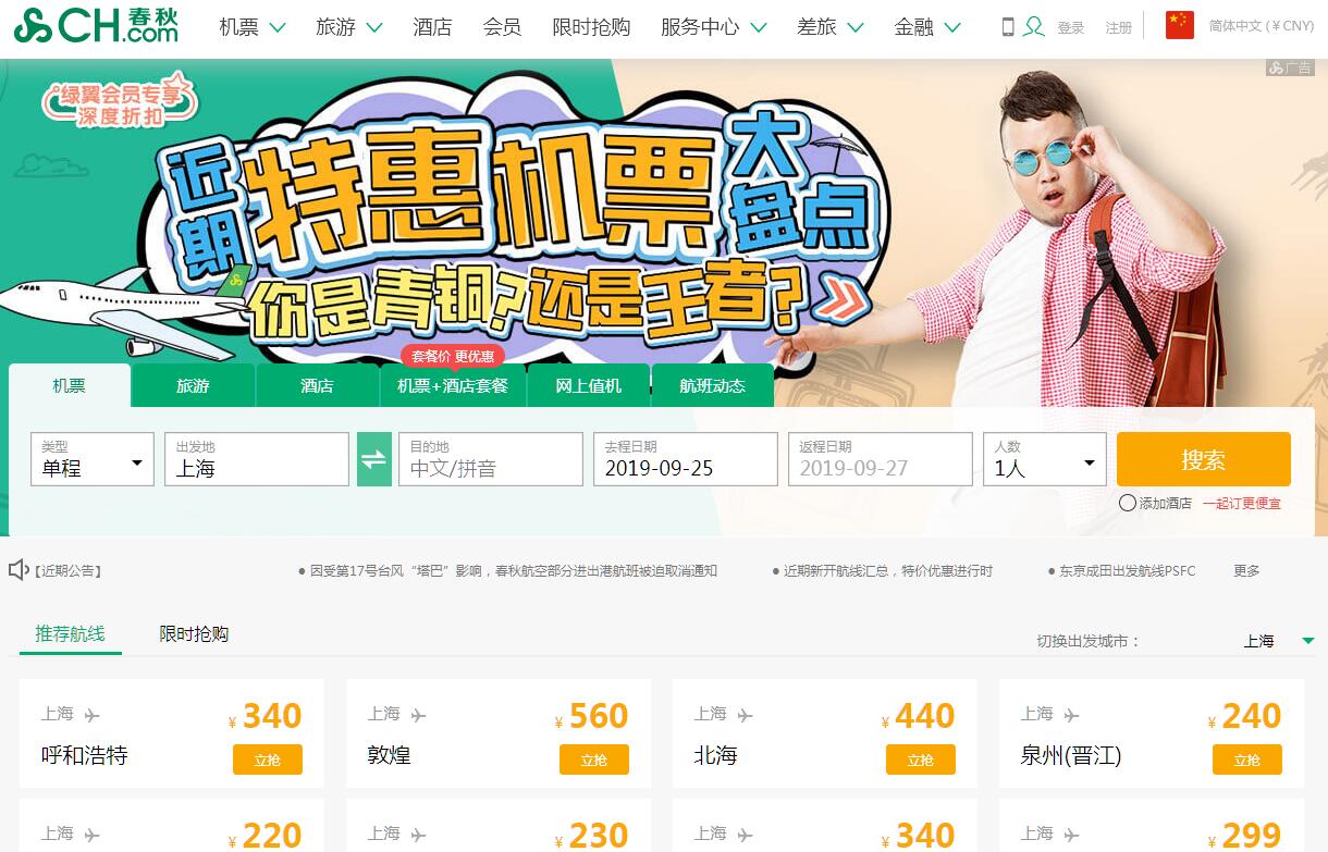 | 網(wǎng)站名稱: | 春秋航空 | ||