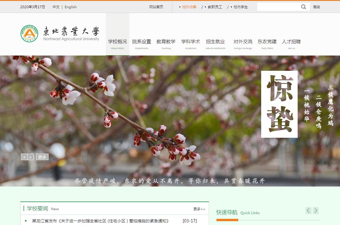 東北農(nóng)業(yè)大學(xué)是一所“以農(nóng)科為優(yōu)勢(shì),以生命科學(xué)和食品科學(xué)為特色,農(nóng)、工、理、經(jīng)、管等多學(xué)科協(xié)調(diào)發(fā)展”的國家“211工程”重點(diǎn)建設(shè)大學(xué)和“世界一流學(xué)科”建設(shè)高校,是黑龍江省人民政府與農(nóng)業(yè)部省部共建大學(xué)、國家“中西部高?;A(chǔ)能力建設(shè)工程”項(xiàng)目入選高校、教育部本科教學(xué)工作水平評(píng)估優(yōu)秀院校。學(xué)校1948年創(chuàng)建于哈爾濱,始稱東北農(nóng)學(xué)院,是中國共產(chǎn)黨在解放區(qū)創(chuàng)辦的第一所普通高等農(nóng)業(yè)院校,知名教育家、哈爾濱市第一任市長劉達(dá)為學(xué)校第一任院長。建校以來,先后隸屬于東北行政委員會(huì)農(nóng)業(yè)部、國家高等教育部、國家農(nóng)業(yè)部、黑龍江省農(nóng)業(yè)委員會(huì)、黑龍江省教育廳,1981年被確定為黑龍江省省屬重點(diǎn)院校,1994年與黑龍江省農(nóng)業(yè)管理干部學(xué)院合并組建東北農(nóng)業(yè)大學(xué)。學(xué)校設(shè)有17個(gè)學(xué)院和1個(gè)教學(xué)部?,F(xiàn)有3個(gè)國家重點(diǎn)學(xué)科,3個(gè)國家重點(diǎn)(培育)學(xué)科,2個(gè)農(nóng)業(yè)部重點(diǎn)學(xué)科,2個(gè)省級(jí)重點(diǎn)學(xué)科群,10個(gè)省級(jí)一級(jí)重點(diǎn)學(xué)科,農(nóng)業(yè)科學(xué)、植物學(xué)與動(dòng)物學(xué)2個(gè)學(xué)科進(jìn)入ESI國際學(xué)科排名前1%。學(xué)校是全國首批具有博士、碩士學(xué)位授予權(quán)的高等學(xué)校之一,現(xiàn)有10個(gè)博士學(xué)位授權(quán)一級(jí)學(xué)科點(diǎn),22個(gè)碩士學(xué)位授權(quán)一級(jí)學(xué)科點(diǎn);1個(gè)博士專業(yè)學(xué)位授權(quán)類別,10個(gè)碩士專業(yè)學(xué)位授權(quán)類別;10個(gè)博士后科研流動(dòng)站、2個(gè)博士后科研工作站;71個(gè)本科專業(yè)。學(xué)?,F(xiàn)有專任教師1294人,其中教授303人、副教授480人;具有博士學(xué)位者772人,具有碩士學(xué)位者442人?,F(xiàn)有中國工程院院士1人,“千人計(jì)劃”入選者2人,“萬人計(jì)劃”入選者14人(含青年拔尖人才1人),“長江學(xué)者”特聘教授1人,國務(wù)院學(xué)位委員會(huì)學(xué)科評(píng)議組成員6人,國家杰出青年科學(xué)基金獲得者2人,“百千萬人才工程”國家級(jí)人選3人,科技部中青年科技創(chuàng)新領(lǐng)軍人才9人,教育部創(chuàng)新團(tuán)隊(duì)2個(gè),教育部“跨世紀(jì)、新世紀(jì)優(yōu)秀人才支持計(jì)劃”入選者10人,國家級(jí)教學(xué)團(tuán)隊(duì)2個(gè),國家級(jí)教學(xué)名師2人,教育部高等學(xué)校教學(xué)指導(dǎo)委員會(huì)分委員會(huì)副主任委員2人、委員12人,國家現(xiàn)代農(nóng)業(yè)產(chǎn)業(yè)技術(shù)體系崗位科學(xué)家17人,“龍江學(xué)者”特聘教授18人、講座教授3人,青年“龍江學(xué)者”2人,博士生導(dǎo)師203人。學(xué)?,F(xiàn)有全日制在校生27 134人,其中研究生3 962人、本科生23 017人、外國留學(xué)生155人,是首批“卓越農(nóng)林人才教育培養(yǎng)計(jì)劃”項(xiàng)目試點(diǎn)高校。擁有國家級(jí)特色專業(yè)10個(gè),國家級(jí)人才培養(yǎng)模式創(chuàng)新實(shí)驗(yàn)區(qū)2個(gè),國家級(jí)精品課程4門、國家級(jí)精品視頻公開課4門、國家級(jí)精品資源共享課2門,國家級(jí)精品在線開放課程1門,國家級(jí)實(shí)驗(yàn)教學(xué)示范中心4個(gè),國家級(jí)虛擬仿真實(shí)驗(yàn)教學(xué)中心 1 個(gè),國家級(jí)大學(xué)生校外實(shí)踐教育基地4個(gè),教育部、農(nóng)業(yè)部農(nóng)科教合作人才培養(yǎng)基地4個(gè),科技部創(chuàng)新人才培養(yǎng)基地1個(gè),全國高校學(xué)生科技創(chuàng)業(yè)實(shí)習(xí)基地1個(gè);獲得全國“百篇”優(yōu)秀博士學(xué)位論文1篇、提名4篇。學(xué)校是國家現(xiàn)代遠(yuǎn)程教育試點(diǎn)院校,設(shè)有全國重點(diǎn)建設(shè)職業(yè)教育師資培養(yǎng)培訓(xùn)基地。學(xué)校是全國畢業(yè)生就業(yè)典型經(jīng)驗(yàn)高校。建校至今已累計(jì)培養(yǎng)各級(jí)各類學(xué)生24萬人,其中既有一批站在世界科技前沿的“創(chuàng)新型”人才,也有一批遍布全國的“復(fù)合型”人才,更有一大批活躍在黑龍江省和全國農(nóng)業(yè)生產(chǎn)第一線的“應(yīng)用型”人才。學(xué)校現(xiàn)有3個(gè)國家級(jí)工程技術(shù)研究中心,2個(gè)教育部重點(diǎn)實(shí)驗(yàn)室,5個(gè)農(nóng)業(yè)部重點(diǎn)實(shí)驗(yàn)室、1個(gè)農(nóng)業(yè)部區(qū)域試驗(yàn)站、3個(gè)農(nóng)業(yè)部農(nóng)業(yè)科學(xué)觀測(cè)實(shí)驗(yàn)站,2個(gè)農(nóng)業(yè)部科研基地,設(shè)有國家級(jí)大學(xué)科技園1個(gè),是高等學(xué)校新農(nóng)村發(fā)展研究院首批建設(shè)院校之一。建校至今,獲得省部級(jí)以上科技獎(jiǎng)勵(lì)500余項(xiàng),其中國家自然科學(xué)獎(jiǎng)、發(fā)明獎(jiǎng)和科技進(jìn)步獎(jiǎng)32項(xiàng);先后9次獲得黑龍江省省長特別獎(jiǎng)和重大科技效益獎(jiǎng),18次被中宣部、教育部、團(tuán)中央授予“社會(huì)實(shí)踐先進(jìn)集體”榮譽(yù)稱號(hào),3次獲得黑龍江省“振興經(jīng)濟(jì)獎(jiǎng)”,2