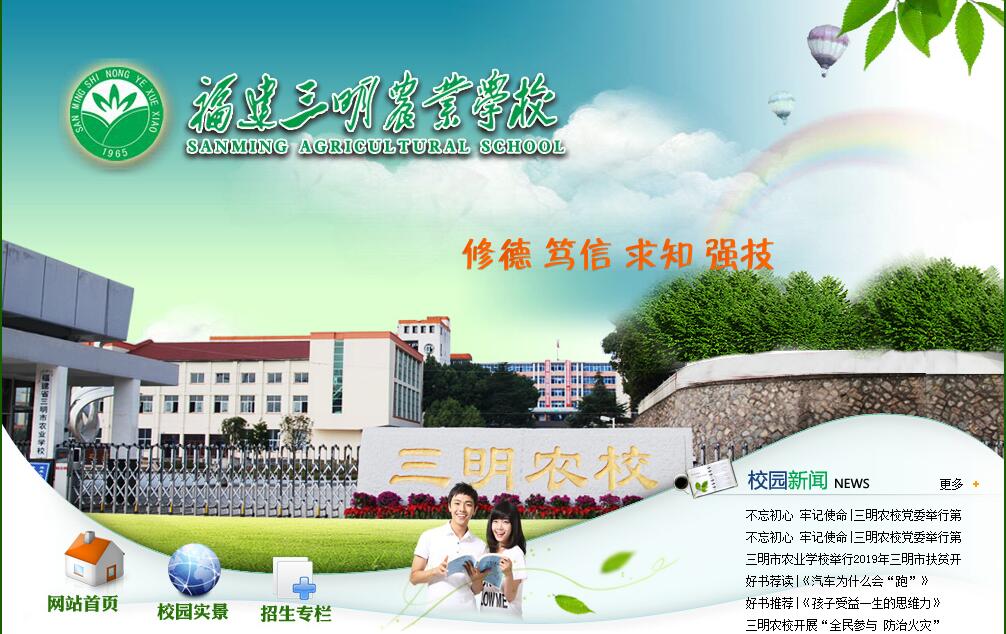 三明農校創(chuàng)辦于1965年,隸屬福建省農業(yè)廳和三明市人民政府。是一所國家級重點中等職業(yè)學校,首批國家示范學校,全國教育系統(tǒng)先進集體。學校地處沙縣城關金沙園區(qū)內,占地面積413畝,建筑面積7萬多平方米。學校設有電腦室、組培室、電子實驗室、電工實驗室、電器實驗室、計算機組裝實驗室、美術室、語音室、形體訓練室、天平室、顯微鏡室、牧醫(yī)、植保等教學實驗室32個,圖書館藏書20萬余冊,實驗設備總值達1860多萬元。在職教職工234人,其中,專任教師190多人,中、高級職稱120多人。全日制在校生3053人,非全日制學生數3999人,是三明市最大規(guī)模的中等職業(yè)學校。學校教學樓、實驗樓、實訓樓、各專業(yè)實訓中心、實訓基地、學生公寓宿舍樓、學生食堂、體育運動場地及相應的教學、生活、健身設施設備完善。學校開設園林花卉、園藝、農業(yè)機械、畜牧獸醫(yī)、茶葉、汽車運用與維修、數控技術等19個專業(yè),其中畜牧獸醫(yī)是國家改革創(chuàng)新重點專業(yè),園林花卉、畜牧獸醫(yī)、汽車運用與維修3個專業(yè)是省級重點(示范)專業(yè),數控技術應用等7個專業(yè)是市級重點(示范)專業(yè)。學校建成園林花卉、生物技術中心、畜牧獸醫(yī)、數控、汽車運用與維修等校內實訓基地,其中園林花卉實訓基地是國家級示范性實訓基地,汽車運用與維修等3個實訓基地是市級示范性實訓基地;數控實訓基地是省級技能型緊缺人才培養(yǎng)基地,園林花卉、汽車運用與維修實訓基地是為市級緊缺型人才培養(yǎng)基地。學校著力構建“校企合作、工學結合、頂崗實習、校企共同培養(yǎng)技能型人才”的人才培養(yǎng)模式,先后與省內多家知名企業(yè)、單位簽訂聯(lián)合辦學協(xié)議,開辦各具特色的冠名班、特色班。近年來,學生參加全市中職學校技能大賽,所獲獎項總數和一等獎項總數均占全市獎項總數和一等獎項總數1/3以上;學生代表我市參加全省中職學校技能大賽也取得比較好的成績;畢業(yè)生雙證書獲取率為100%;就業(yè)率為99%,對口率為達80% 。學校先后與廈門大學、福州大學、福建師范大學、集美大學、福建農林大學等高校聯(lián)合辦學,是福建農林大學大專函授站,是四川大學、東北農業(yè)大學網絡教育學院遠程教育大專、本科班教學中心。三明農校建校以來,已為社會輸送了近三萬多名中等專業(yè)人才,其中擔任縣處級和科局級領導干部1500多人,另有許多畢業(yè)生已成為農業(yè)戰(zhàn)線上的技術骨干和學科帶頭人,不少人還創(chuàng)辦、領辦了公司、農莊等,取得很好的經濟效益和社會效益。學校先后榮獲“全國教育系統(tǒng)先進單位”,全國特色教育先進學校、連續(xù)獲得第七、八、九、十、十一、十二屆福建省“文明學?!?、福建省教育系統(tǒng)先進集體、福建省職業(yè)教育先進單位、福建省花園式單位、福建省綠化紅旗單位、福建省會計基礎規(guī)范化單位、福建省誠信進校園工作先進單位、福建省食品衛(wèi)生等級A級單位、三明市村會協(xié)作先進單位、三明市首批德育特色學校、三明市德育工作先進學校、三明市雙擁共建先進單位、三明市職業(yè)技能鑒定工作先進單位、三明市專業(yè)技術人員繼續(xù)教育先進單位、三明市先進黨組織、三明市綜治和平安建設先進集體、三明市社會治安綜合治理先進單位、三明市“平安校園”創(chuàng)建先進單位、三明市綠色學校、三明市推行辦事公開制度市級示范單位、三明市依法治市工作先進集體等,連續(xù)多年被當地政府授予“服務地方經濟建設先進單位”、社會治安綜合治理先進單位及“文明安全小區(qū)”等多項榮譽稱號。由于辦學成績突出,張運椅同志2012年12月被評為首屆“清海杯——黃炎培職業(yè)教育校長獎”榮譽稱號,2014年5月又榮獲第四屆黃炎培杰出校長稱號(該獎項是目前中國職業(yè)教育領域最高、最權威的獎項)。高級講師涂景春老師于2007年9月獲得“全國優(yōu)秀教師”榮譽稱號。2009年9月,學校被國家人力資源保障部和國家教育部聯(lián)合表彰為全國教育系統(tǒng)先進單位。2013年7月被中共福建省委教育工委表彰為全省教育系統(tǒng)“創(chuàng)先爭優(yōu)先進基層黨組織”;2014年8月榮獲教育部“特色學校”榮譽;2016年6月,學校黨委被中共福建省委表彰為“全省先進基層黨組織”。三明農校經過五十年的努力,辦學有特色、管理很到位、成效十分顯著,呈現出業(yè)興人和,風正氣順的喜人局面。在辦學過程中體現以下特色:一、發(fā)揮優(yōu)勢,服務三農,促進地方經濟建設。學校按照“科教興農”、“科教興國”的戰(zhàn)略指導思想,發(fā)揮學校人才、技術、設備和信息優(yōu)勢,組織教師參與地方經濟建設,為建設社會主義新農村服務,為全面建設小康社會服務。開展校村協(xié)作。從1984年開始學校與沙縣鳳崗鎮(zhèn)西山村協(xié)作至今,為西山村提供技術服務,促進西山村經濟快速發(fā)展,2007年該村人均純收入達7511元,西山村先后獲得省級“文明村”、省級“先進基層黨組織”和“全國先進基層黨組織”等榮譽稱號?!度魅請蟆吩浴段魃酱遛r民的財神》為題報道了三明農校教師支農的先進事跡。開展校鄉(xiāng)協(xié)作。2001年開始,學校與沙縣鄭湖鄉(xiāng)、沙
